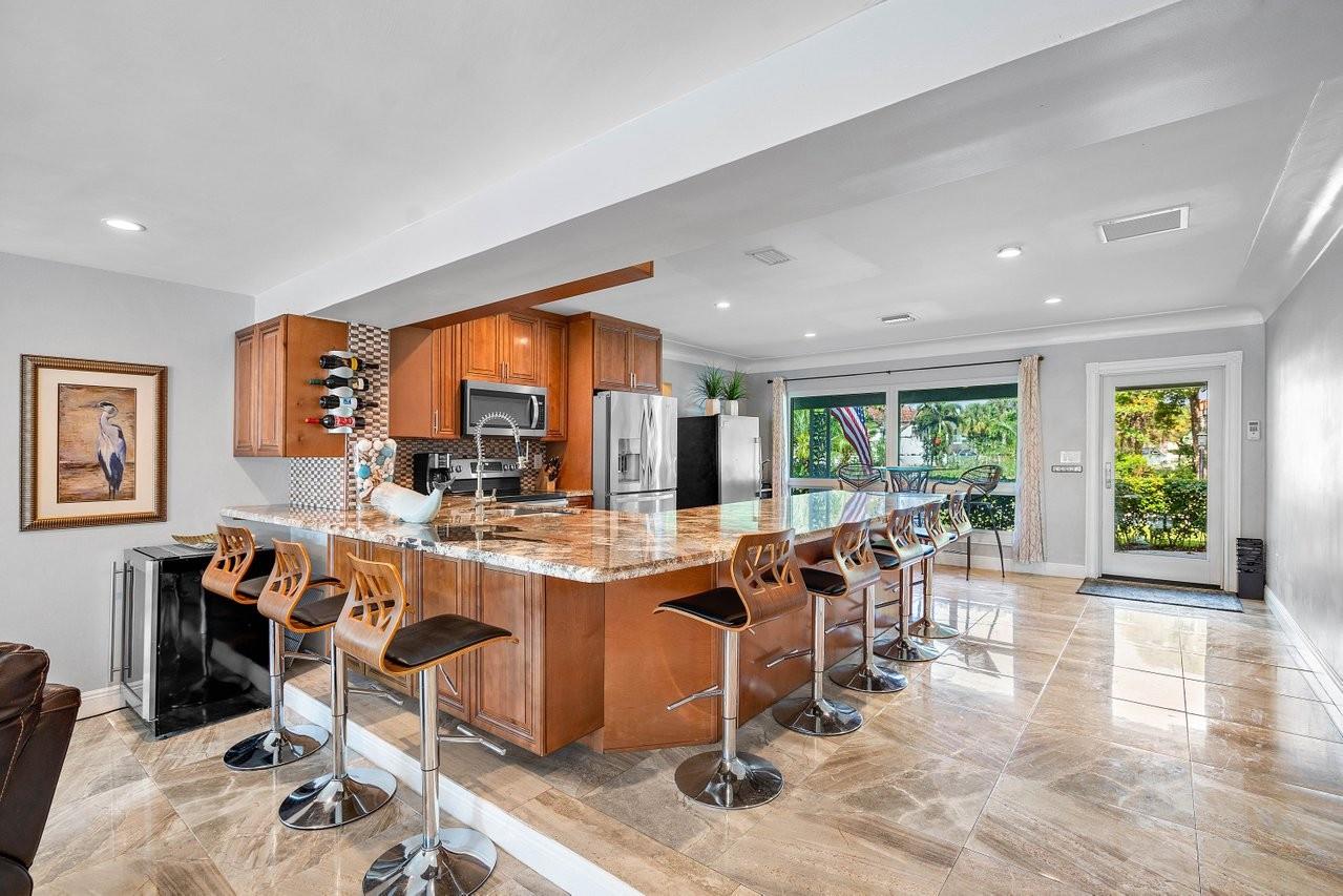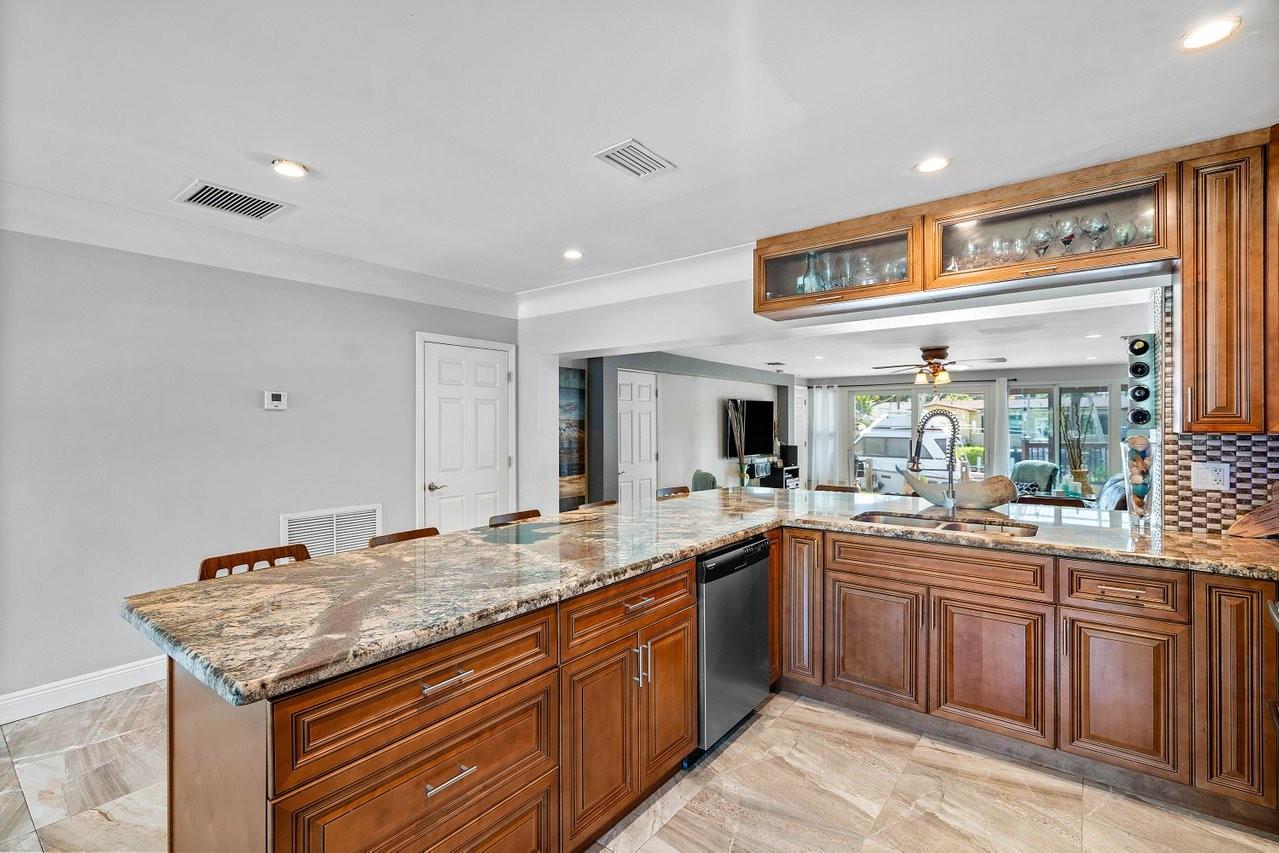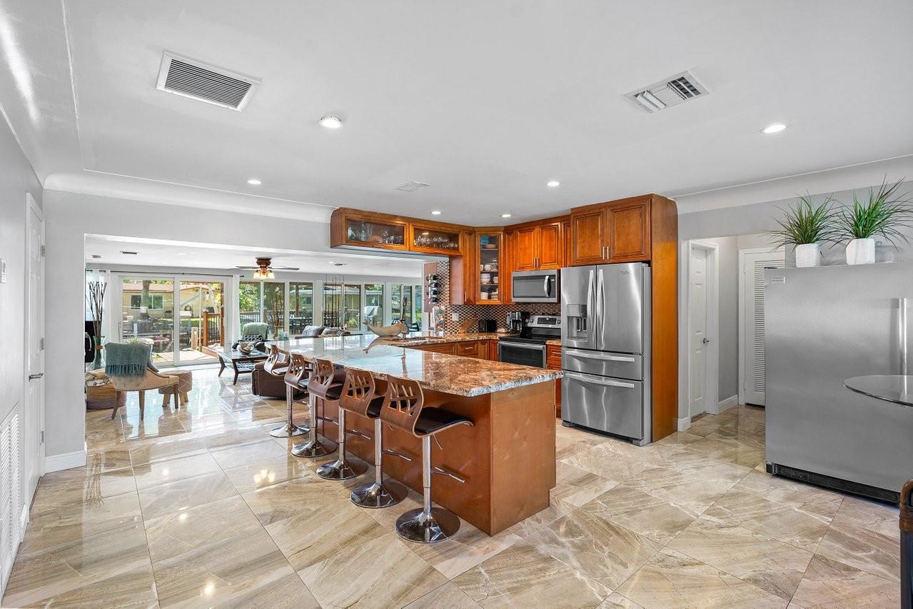 This charming single-family water front home with ocean access is located off the Dania cut off canal. Located in Fort Lauderdale/Dania Beach area. This home has a very wide open floor plan with ample entertaining spaces and features 2 master bedrooms with walk in closets. 3rd bedroom or Den. The kitchen is wide open with granite counter tops seating for 8 with fabulous views of the water and living room. This home also has a X large garage so bring your toys. Newer 70FT dock with composite decking and a raised seawall. Large covered deck. Close to beaches, and Hard Rock Casino.