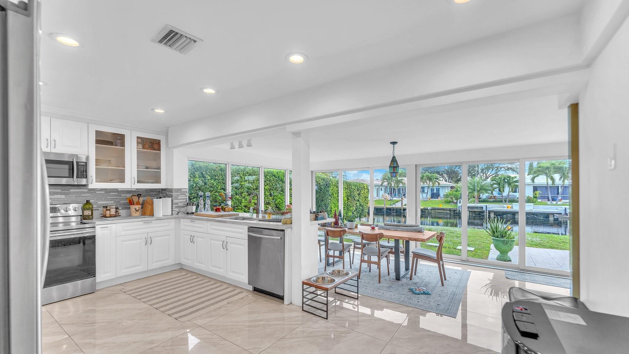 Waterfront property with direct ocean access.3 bedroom and 2-bathroom, home in beautiful imperial point, 8250 sq ft giant lot, with 75 ft waterfront,19 ft dock,2 fixed bridges seawall in excellent condition. 40 ft water view from Fl room, with hurricane impact solar filtered sliding doors. New hurricane impact windows and doors, all throughout the house, largest two car closed garage in the neighborhood. Marble tile and Parquet flooring, with updated bathrooms and kitchen, 2023 air conditioning and 2023 separate split ac by the Florida room. Beautiful luxurious property with a good-sized backyard with panoramic direct Waterview’s. Easy to show, immediate access.