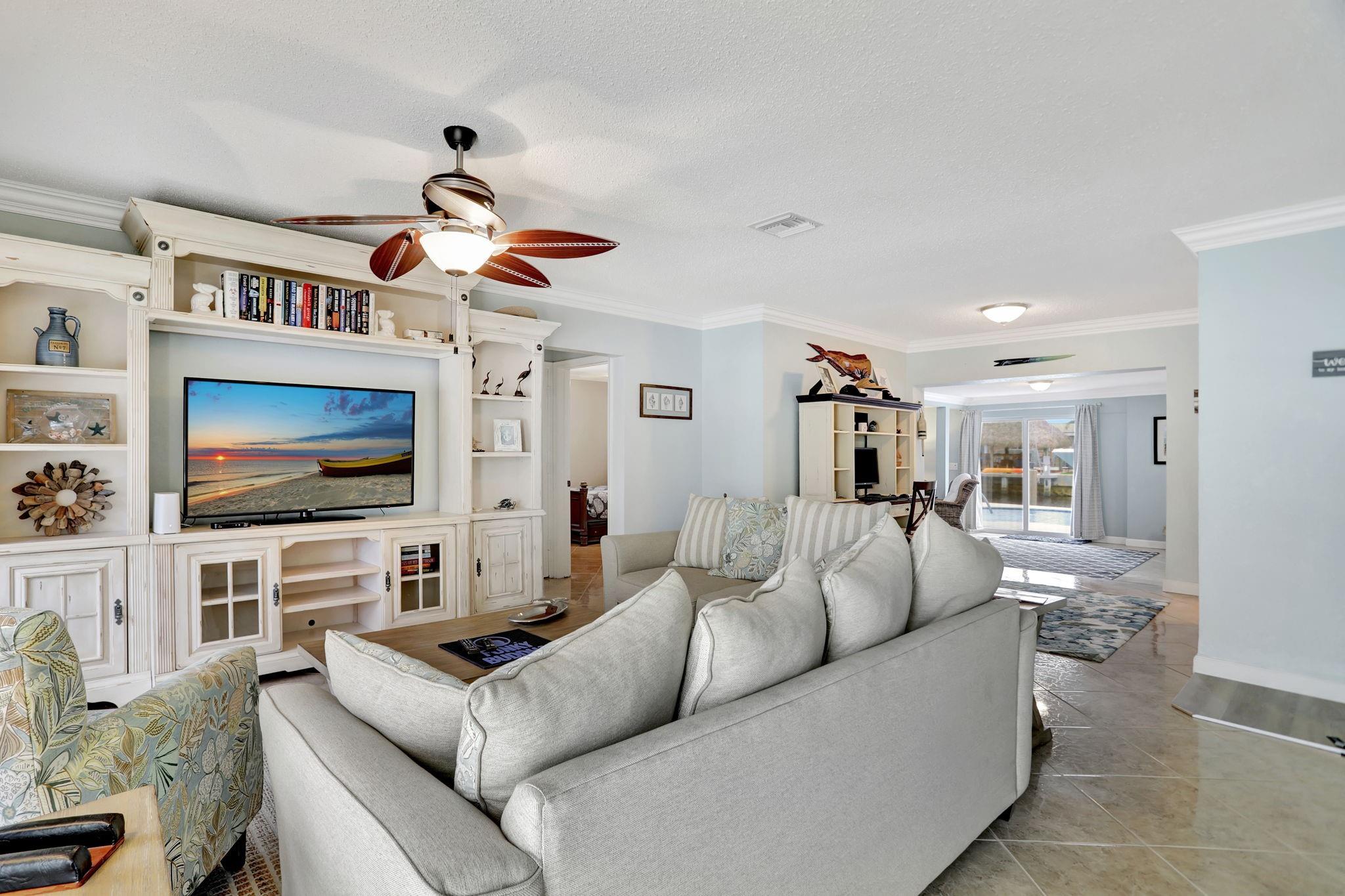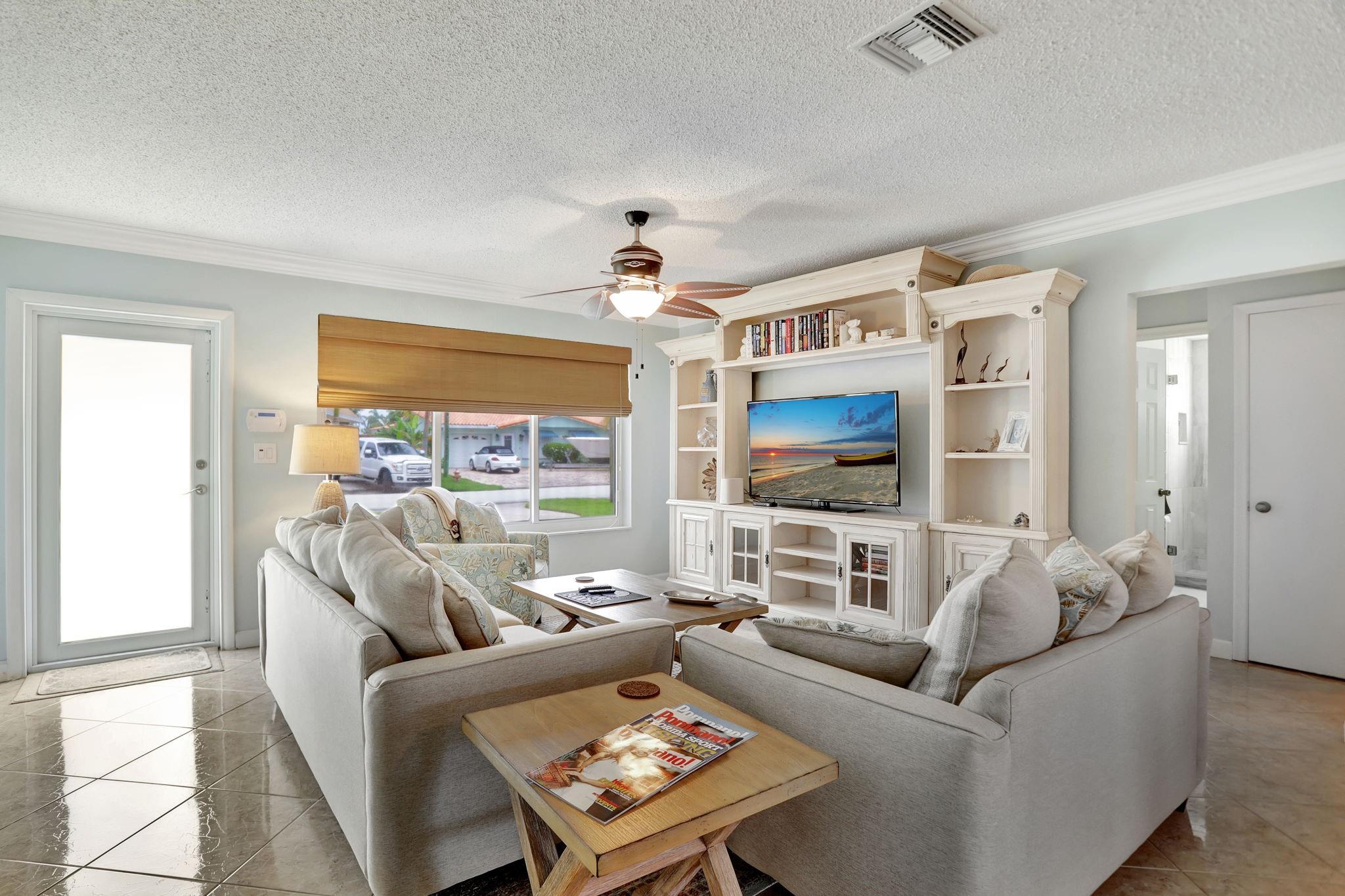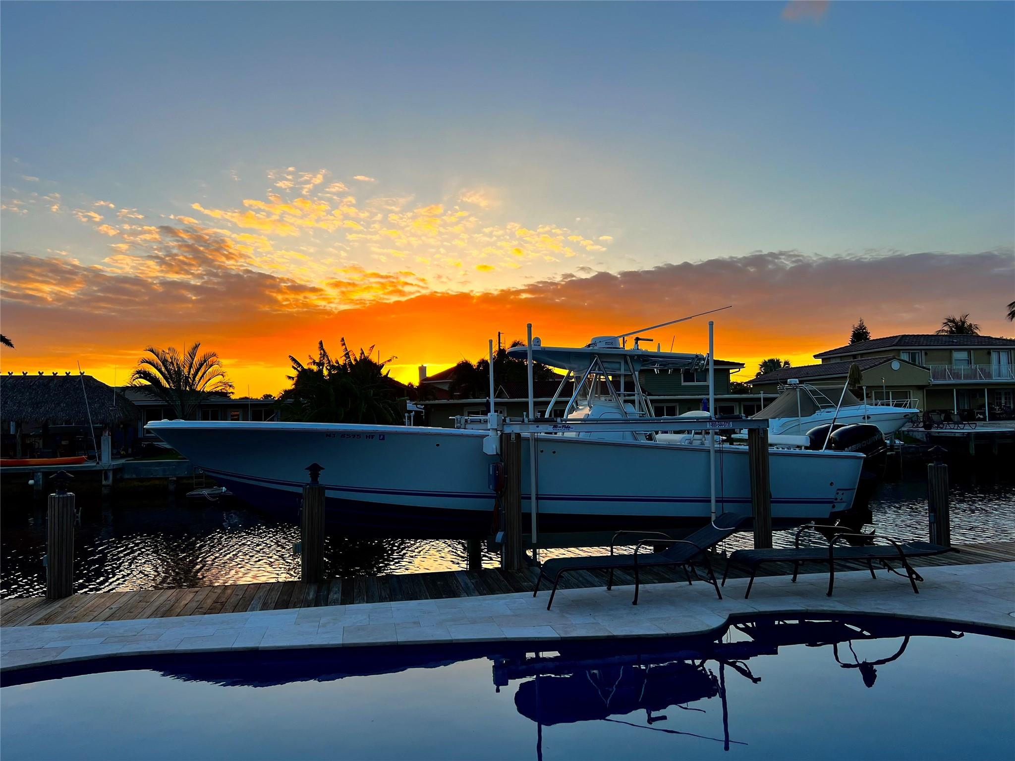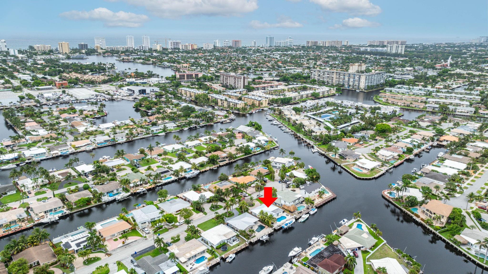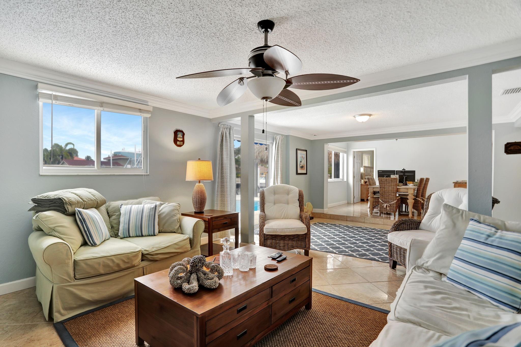 Spacious 3/2 SPLIT floor plan with 2 CAR GARAGE Living room AND den. One fixed bridge (Federal highway) Located at the end of the street near cul-de-sac. Master has walk in closet and updated bath. NEW METAL ROOF, STUCCO AND PAINT 2024. Flat roof 4 years old. Other recent updates include IMPACT WINDOWS and DOORS, Electric, A/C, POOL-piles-travertine pavers, washer-dryer, updated guest bath AND Pipelining 2016 with warranty. SALTWATER POOL has HEATER and CHILLER. Tankless water heater (2022). Enjoy the view or watch tv from under the Tiki Hut. Shower off before hopping in the pool with the outdoor shower. Newer dock and boat 12,000 lb. boat lift(2017)