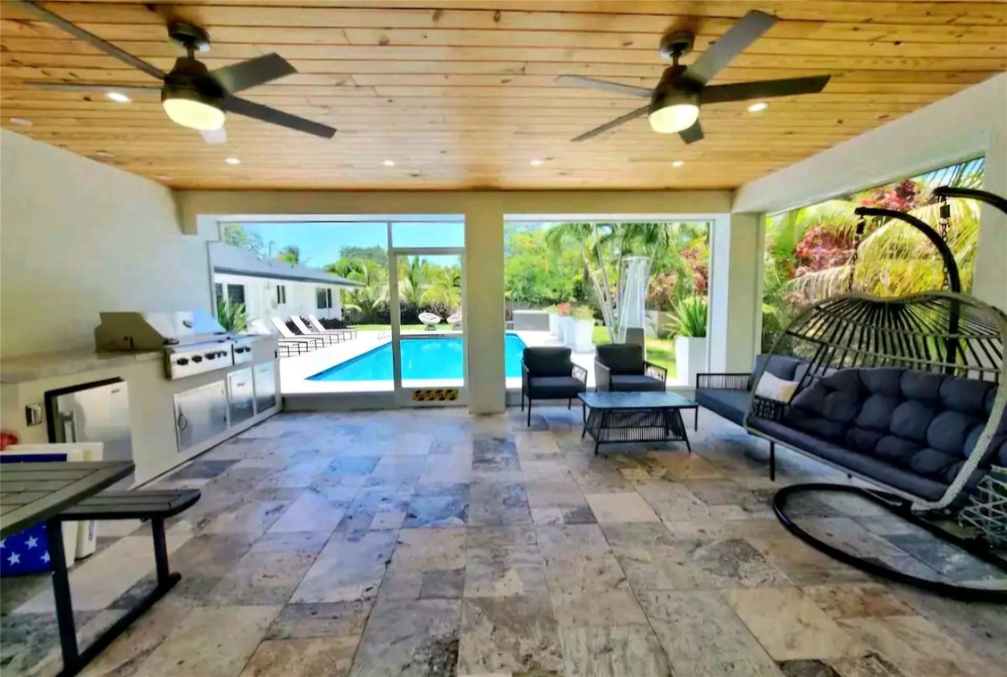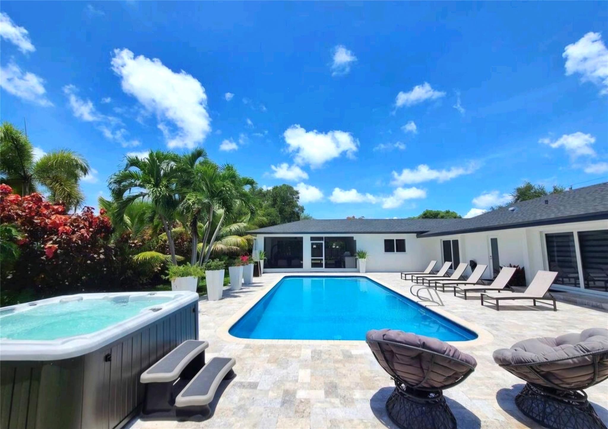 Stunning resort-style residence,rebuilt & redesigned from top to bottom,offering brand new house living experience. W/ stunning large pool, breathtaking landscaping views,large screened-in patio w/ outdoor kitchen & dining area, outdoor shower, jacuzzi, children’s playground, waterfall, fire pit, gameroom, stunning wrap around koi pond & more. Situated on an expansive doable size property lot spanning over half acre. Furnished with top-notch appliances & fixtures. Huge spacious dream kitchen, w/ high-quality cabinets, build in mirowave, wine cooler & much more. W/ 5 bed & 3 full baths, perfect for large family or guests. Additional 500sq screened patio room. Enormous driveway,accommodates 10+ vehicles. Open concept style home, just 5 min drive to the beach & next to the new Kester Park.