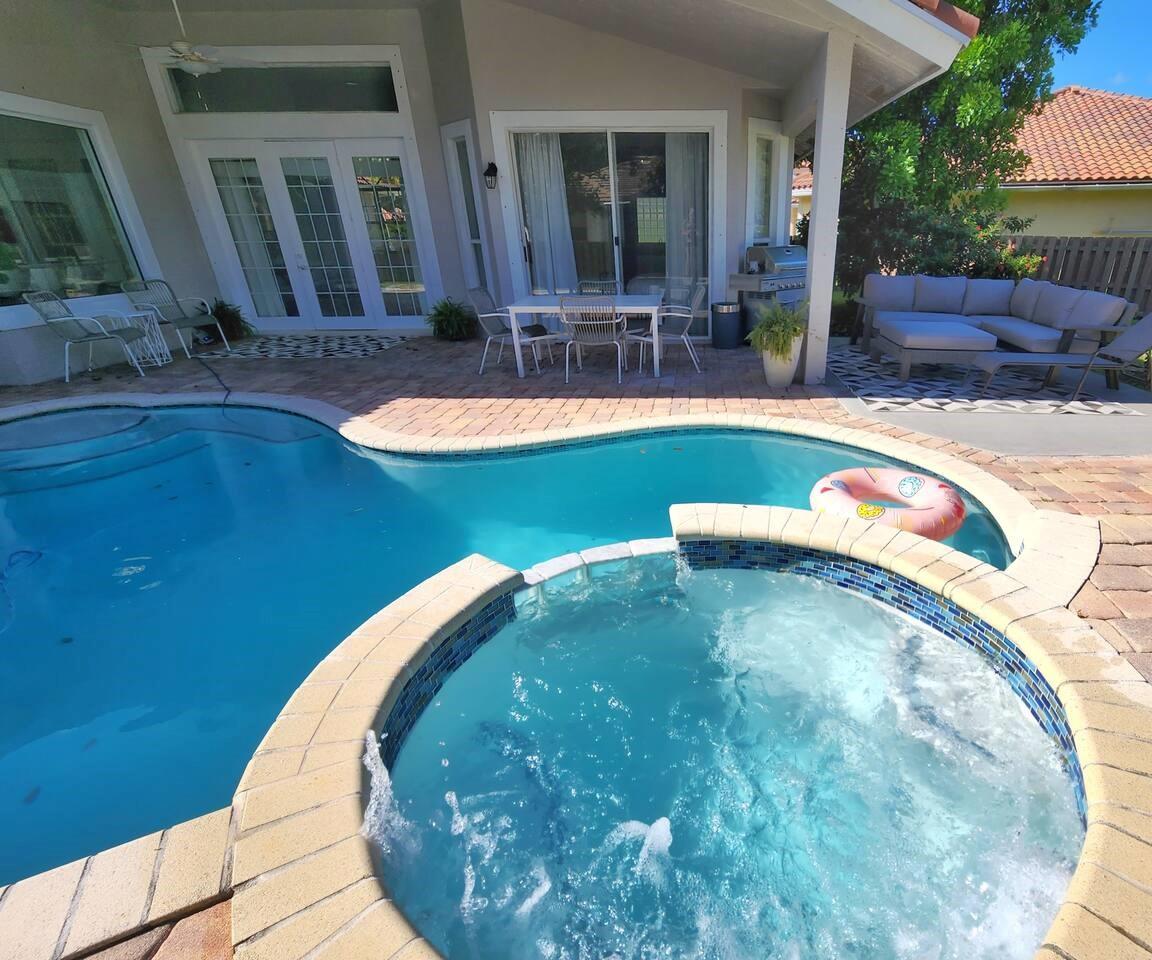 Renovated home sitting on Cul De Sac in highly sought after Turtle Run community. 4 bedrooms, 3 Bathrooms with Large 48inX48in Polished Porcelain tiles throughout, High ceilings, new appliances. 2 massive walk-in closets in the master bedroom. Large yard with pool and hot tub. 2 car garage with long driveway. Top-rated school district. Parks within walking distance. Text the listing agent with questions. No association. All furniture is negotiable.