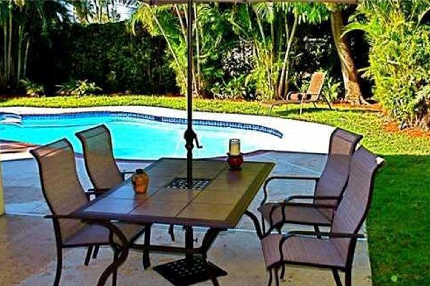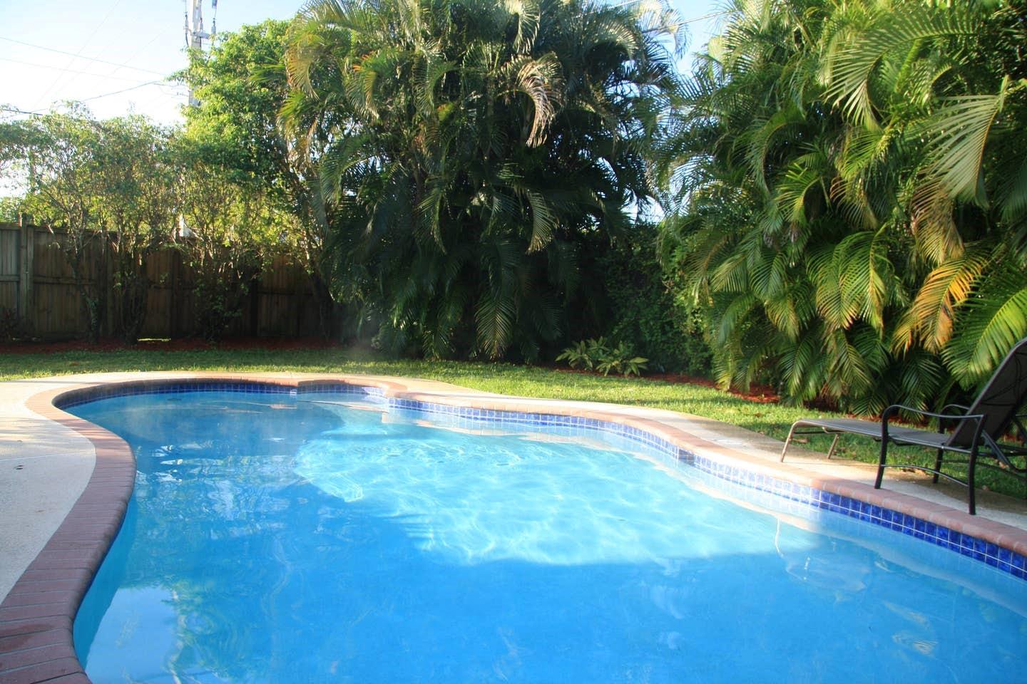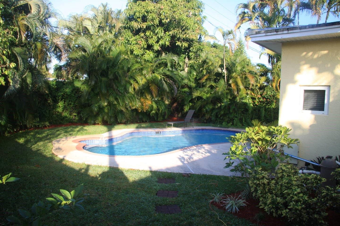 Villa Tropical oasis is a 3 bedroom -2 bathroom home with a large main bedroom with an in-suite bathroom with Jacuzzi). The large heated private pool and tropical fruit trees offers a secluded tropical vibe. Very conveniently located, close to Fort Lauderdale Beach, Galleria Mall, Hugh Taylor Birch State Park, easy access to US1 and I95.