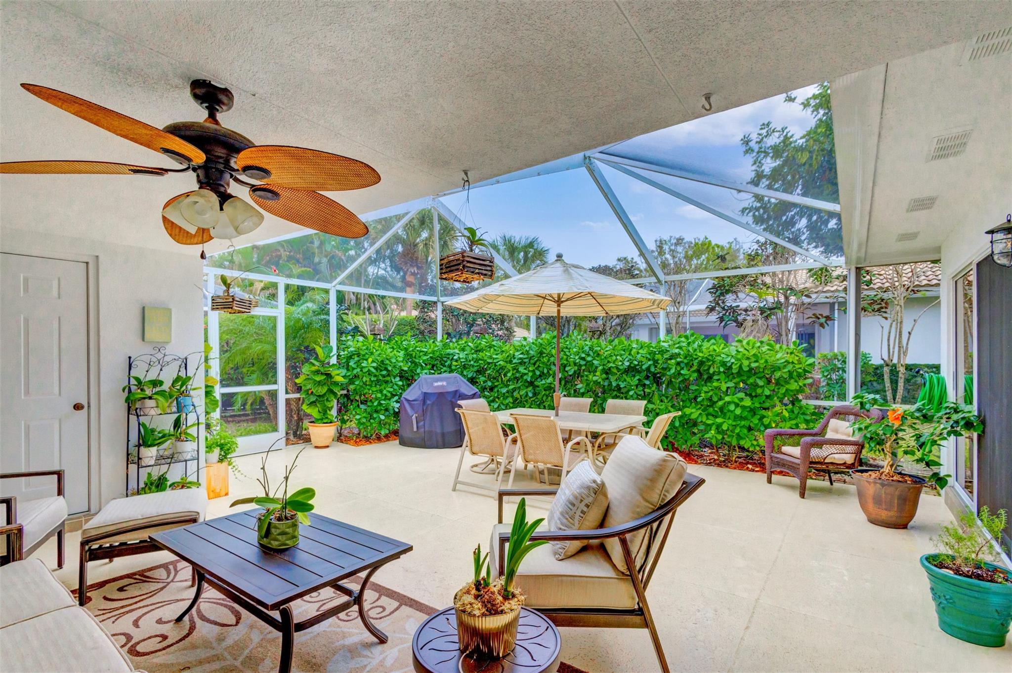 Don’t miss this one! Nicely updated villa in an ideal Palm Beach Gardens location. Large, screened, courtyard patio, split bedroom plan, open kitchen dining room and living room. Wood floors throughout the living areas, carpeting in the bedrooms. All the rooms open to the screened patio, granite countertops, wine chiller, storage closet on patio. Large master suite with skylight in bathroom and large wall length closet. Lots of storage and privacy. Very pet and walking friendly neighborhood. Nice community pool, two deeded parking spaces. New fridge and water heater in 2023. Association covers roof, landscaping, painting, pressure washing. Nothing to do but love your Florida lifestyle!