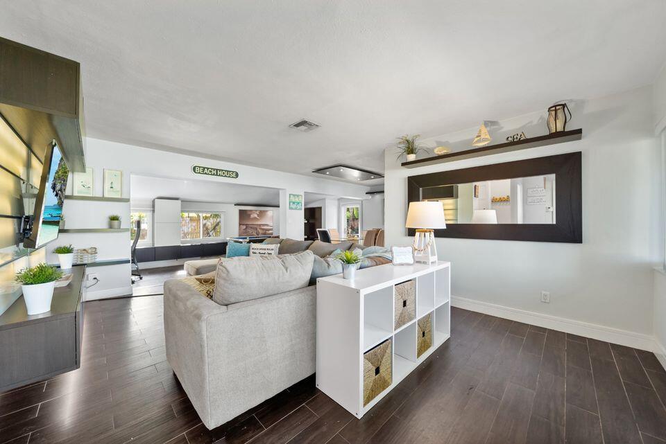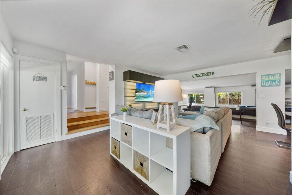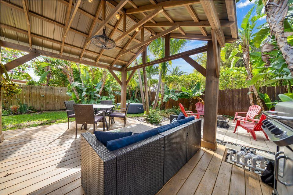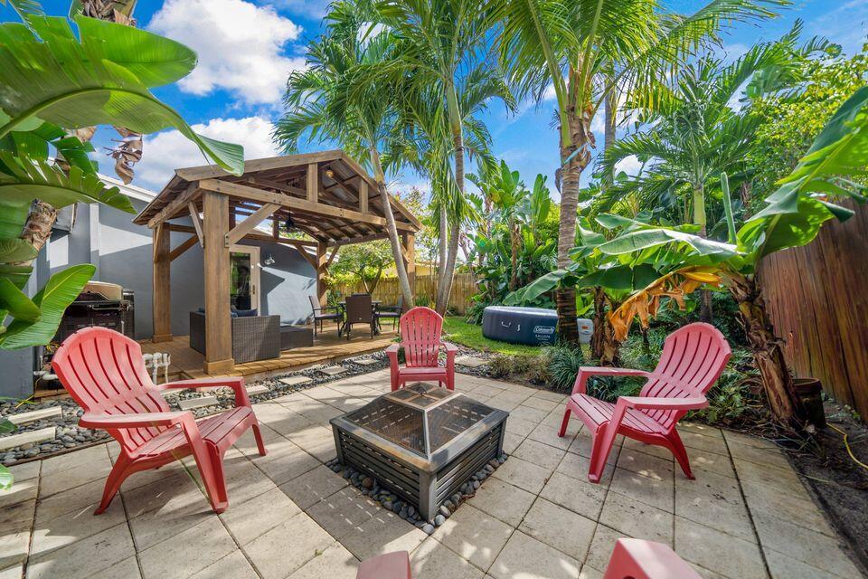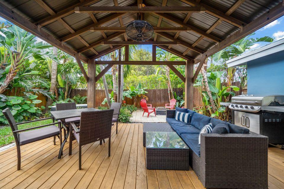 Professionally decorated 3-bedroom, 2-bathroom fully furnished beach house with full impact windows situated just 1.2 miles away from the renowned Deerfield Beach, nestled in the family-friendly neighborhood of ”The Cove.”Move right in or start your own Airbnb. Enjoy the Florida lifestyle with natural light in each and every room. Corner Lot. Spacious backyard & inviting layout on the inside. Original rustic hardwood flooring in the bedrooms & updated tile flooring throughout. Bright kitchen with quartz counter tops & stainless-steel appliances. Freshly painted inside with modern finishing. Recess lighting & updated electric. Next, step outside to a tropical oasis! Sundeck with Spa, covered gazebo, BBQ grill & fire pit.