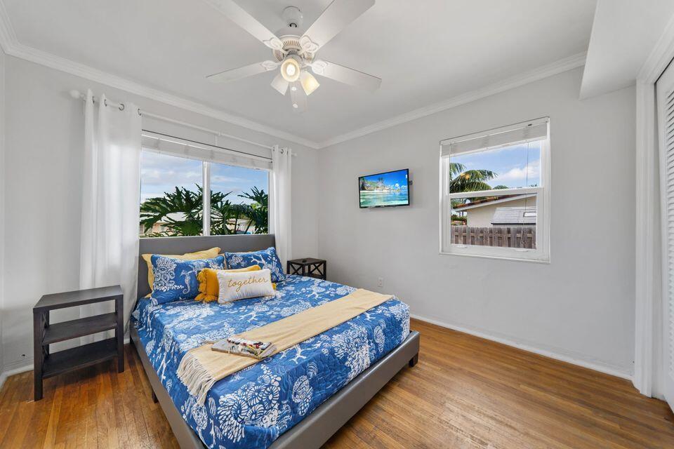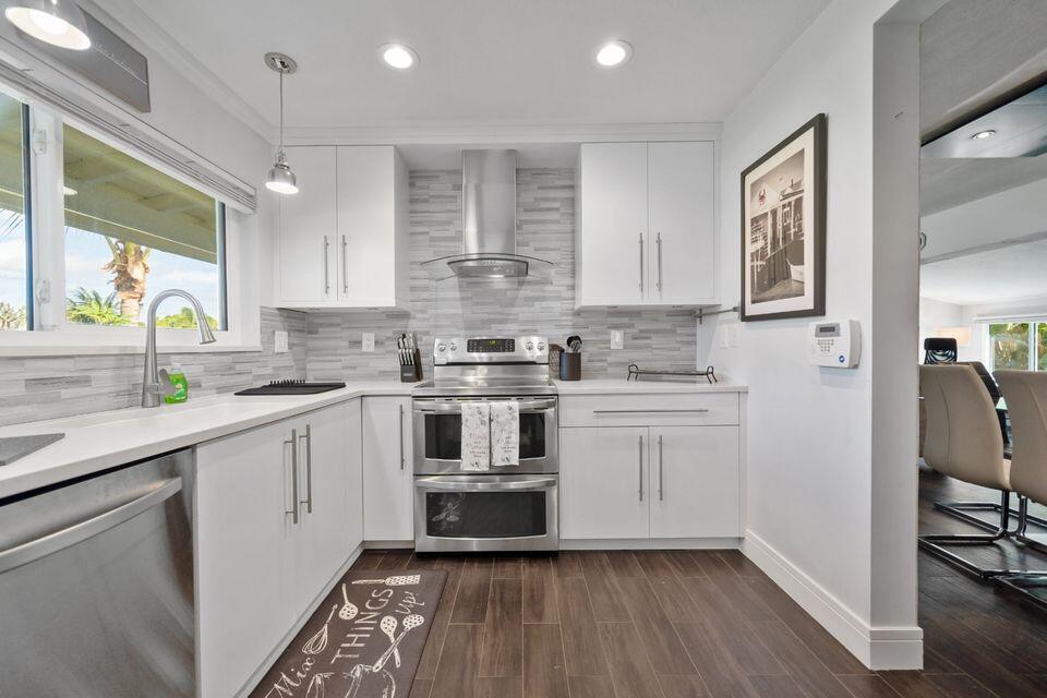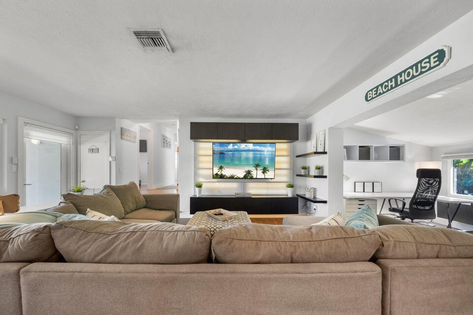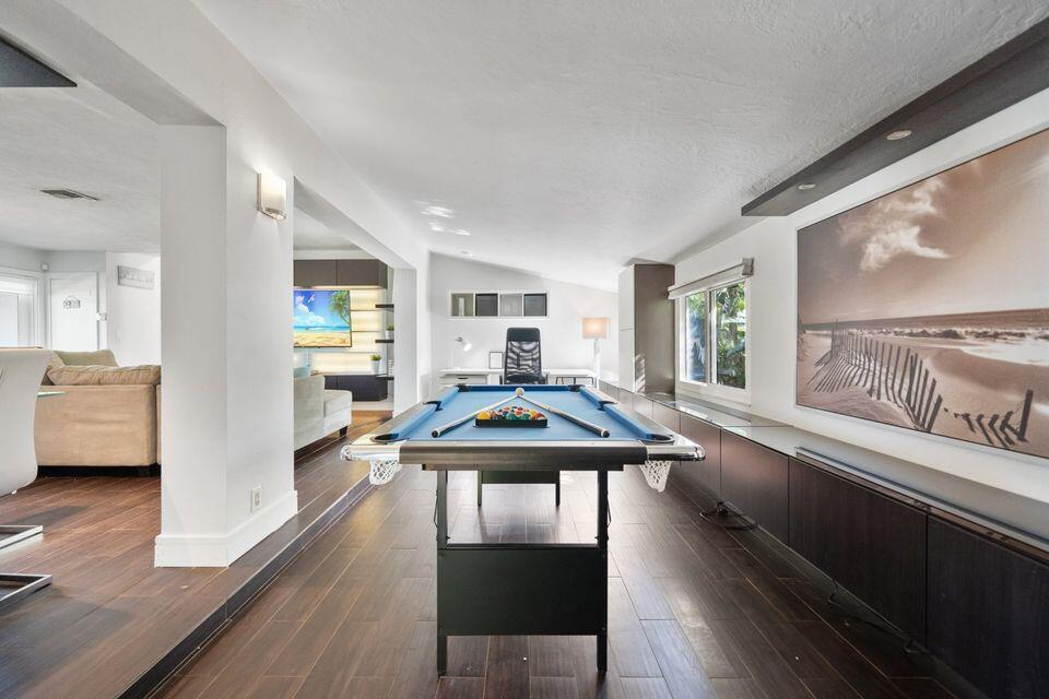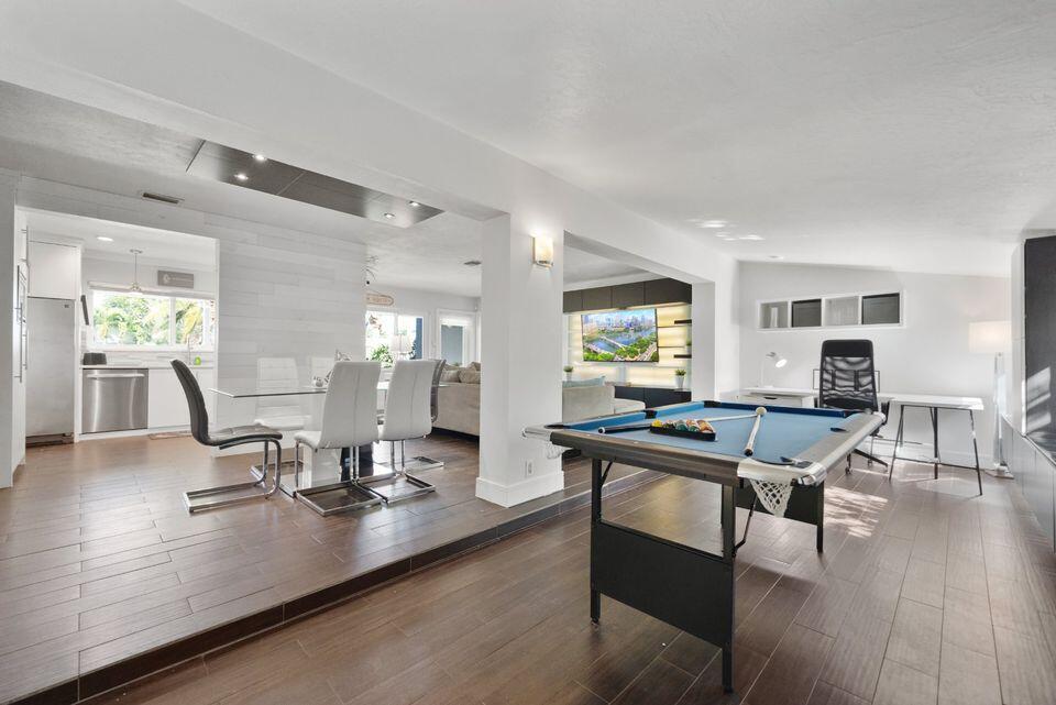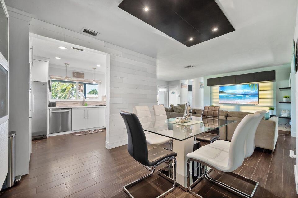 Professionally decorated 3-bedroom, 2-bathroom fully furnished beach house with full impact windows situated just 1.2 miles away from the renowned Deerfield Beach, nestled in the family-friendly neighborhood of ”The Cove.”Move right in or start your own Airbnb. Enjoy the Florida lifestyle with natural light in each and every room. Corner Lot. Spacious backyard & inviting layout on the inside. Original rustic hardwood flooring in the bedrooms & updated tile flooring throughout. Bright kitchen with quartz counter tops & stainless-steel appliances. Freshly painted inside with modern finishing. Recess lighting & updated electric. Next, step outside to a tropical oasis! Sundeck with Spa, covered gazebo, BBQ grill & fire pit.