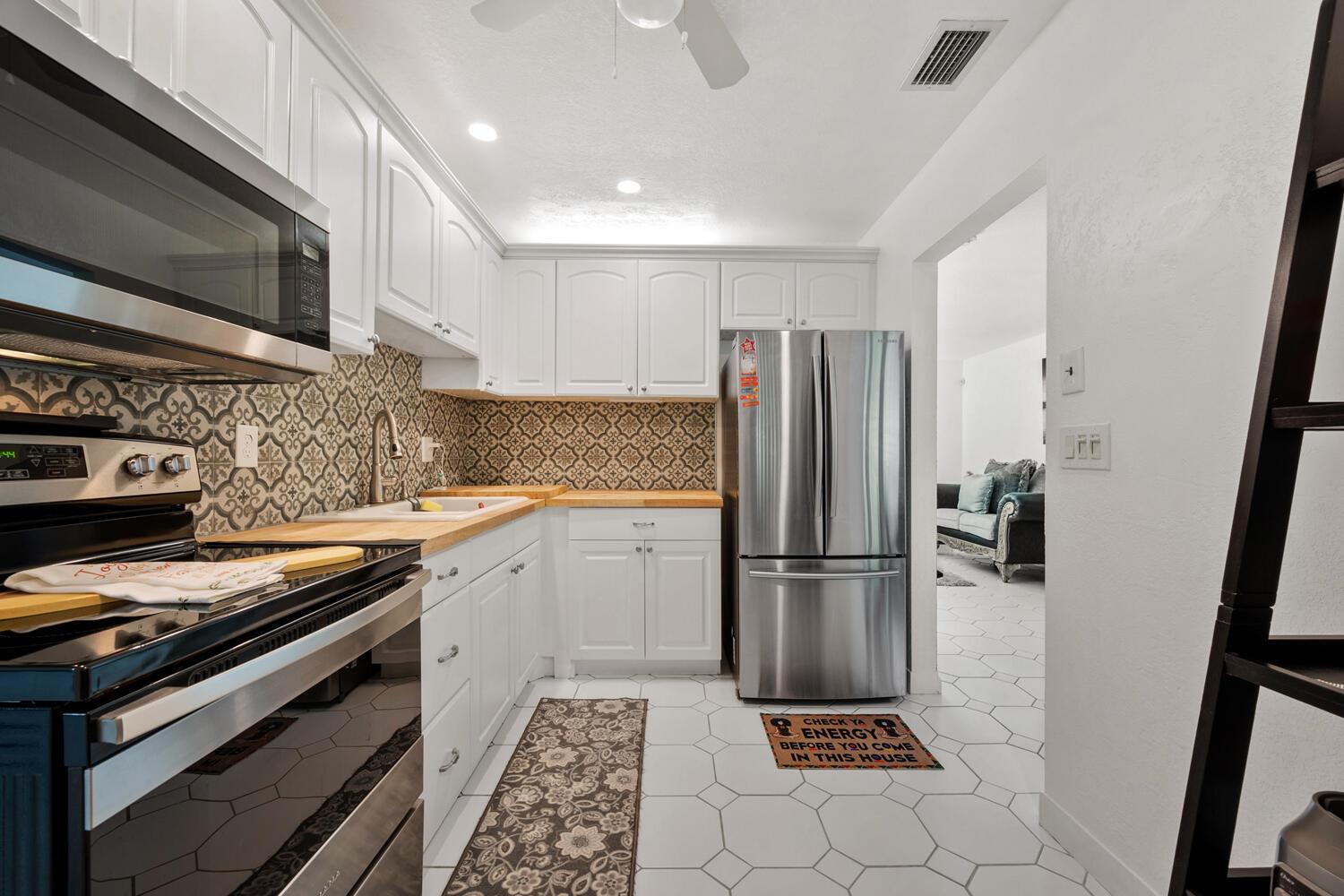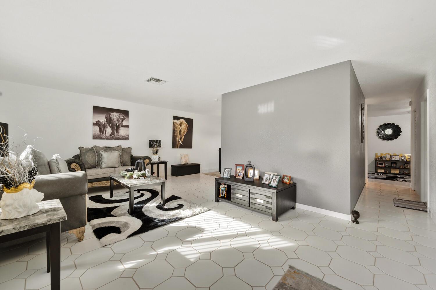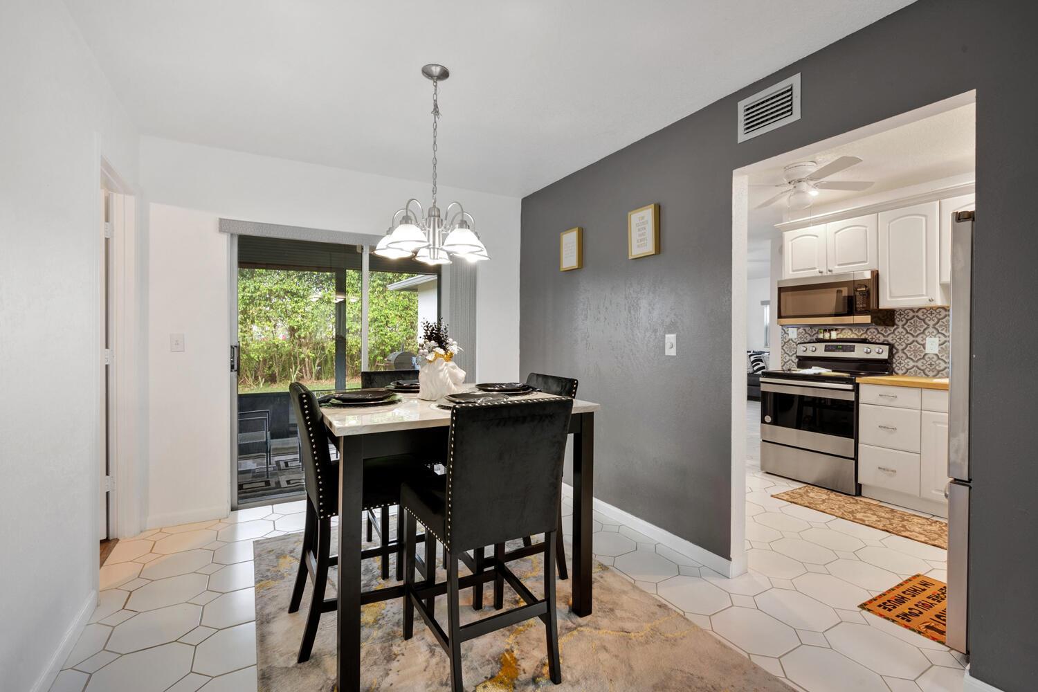 This home sits on a larger corner lot and its West exposure allows a nice cross breeze throughout. This contemporary fully renovated open floor plan home boasts valuable updates throughout and a new Solar Panel, Storm Awnings, Screened Patio, & Cement Driveway. This great 55+ community offers community pools, clubhouse, tennis courts, exercise room, a low HOA fee (that includes cable and internet), allows pets and more; and it’s conveniently located close to all shopping dining, banking etc…. Nearby Atlantic Avenue will take you directly to the I95 expressway, the Fl. Turnpike, the beach and to downtown Delray where the day & evening pedestrian shopping & dining experiences are ongoing.