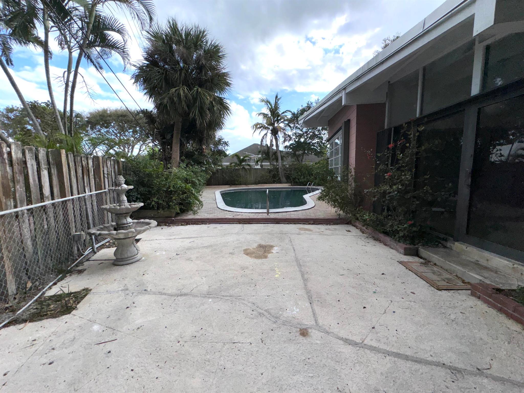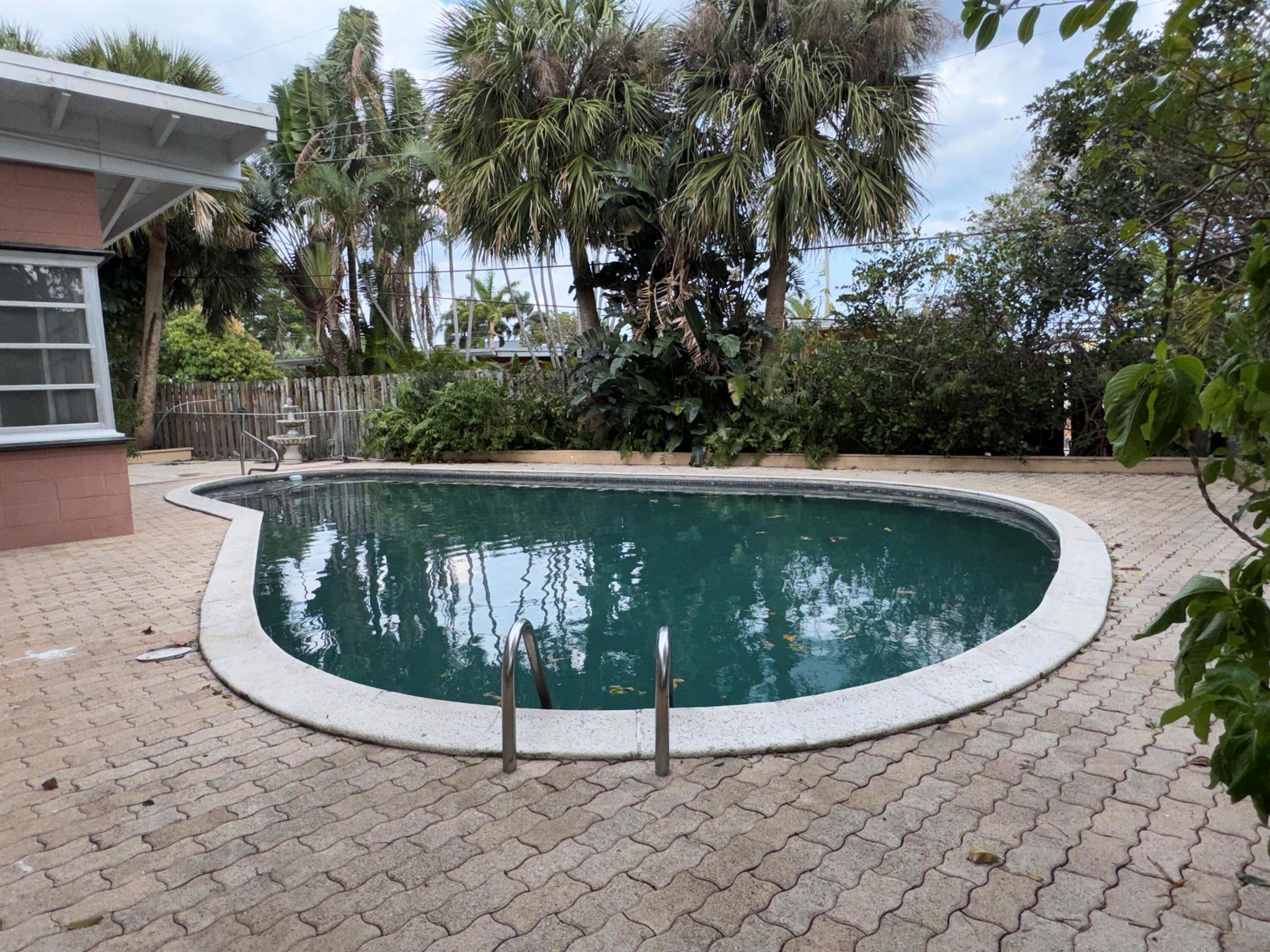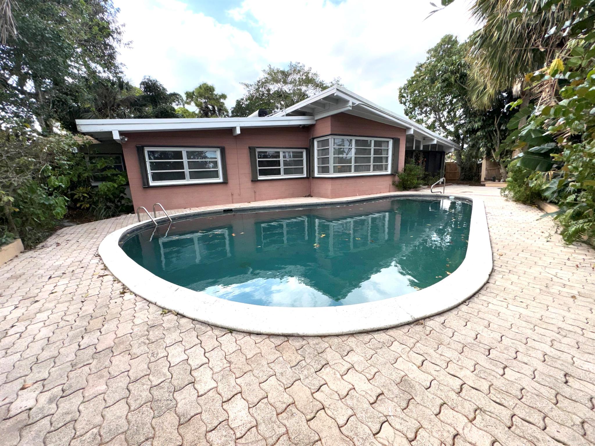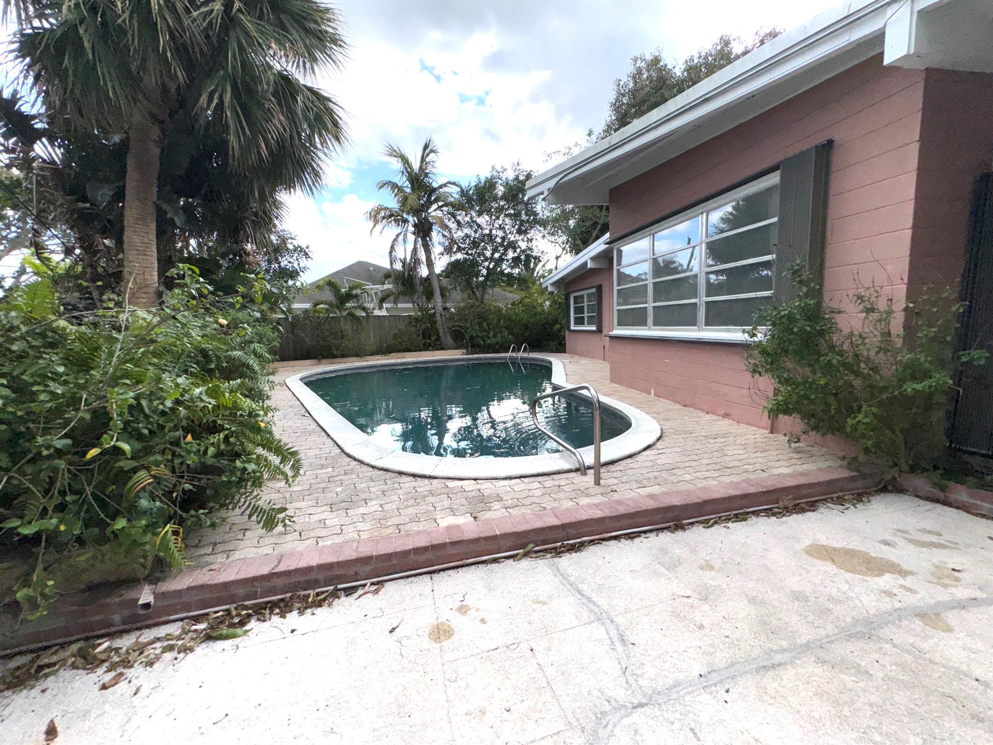 Unique Mid Century modern ranch style home built in 1957 and lived in by the architect Emily Obst who designed most of the mid century homes in the safe lake front community of Lake Clarke Shores .Large over sized pool ,fenced back yard, and two side gardens w mature tropical fruit trees (star fruit, mango, banana) makes this a perfect home for a gardener, a swimmer, and someone with pets and or children .This one won t last. Make your offer today. Plenty of potential, get creative , A MUST SEE…..