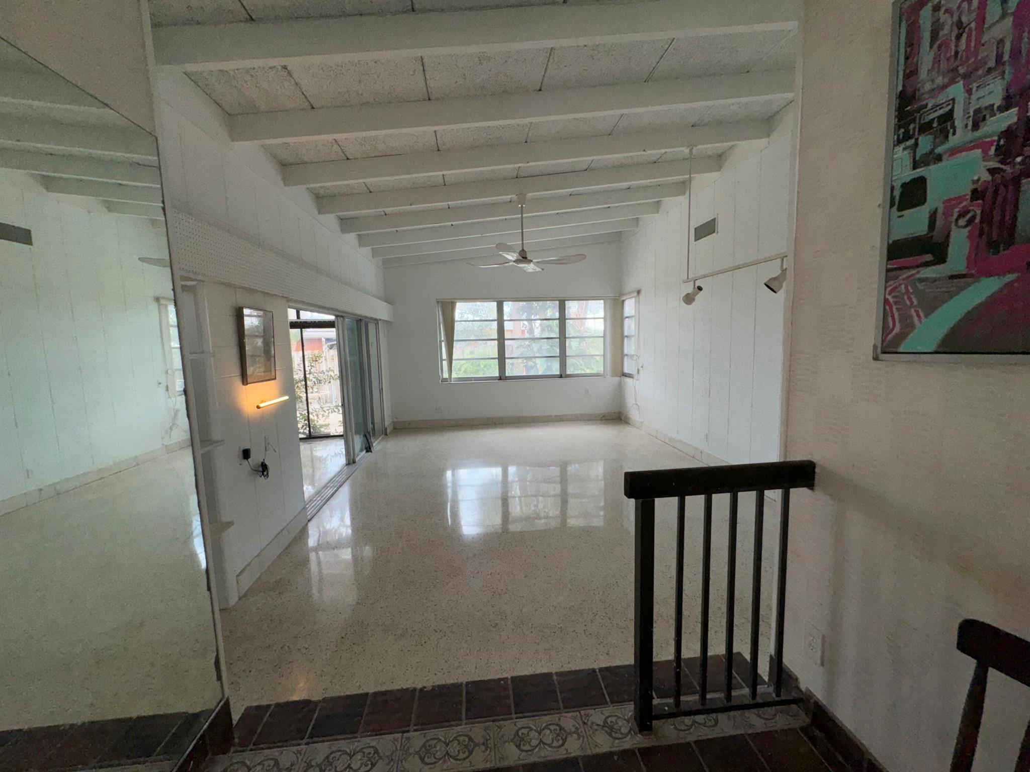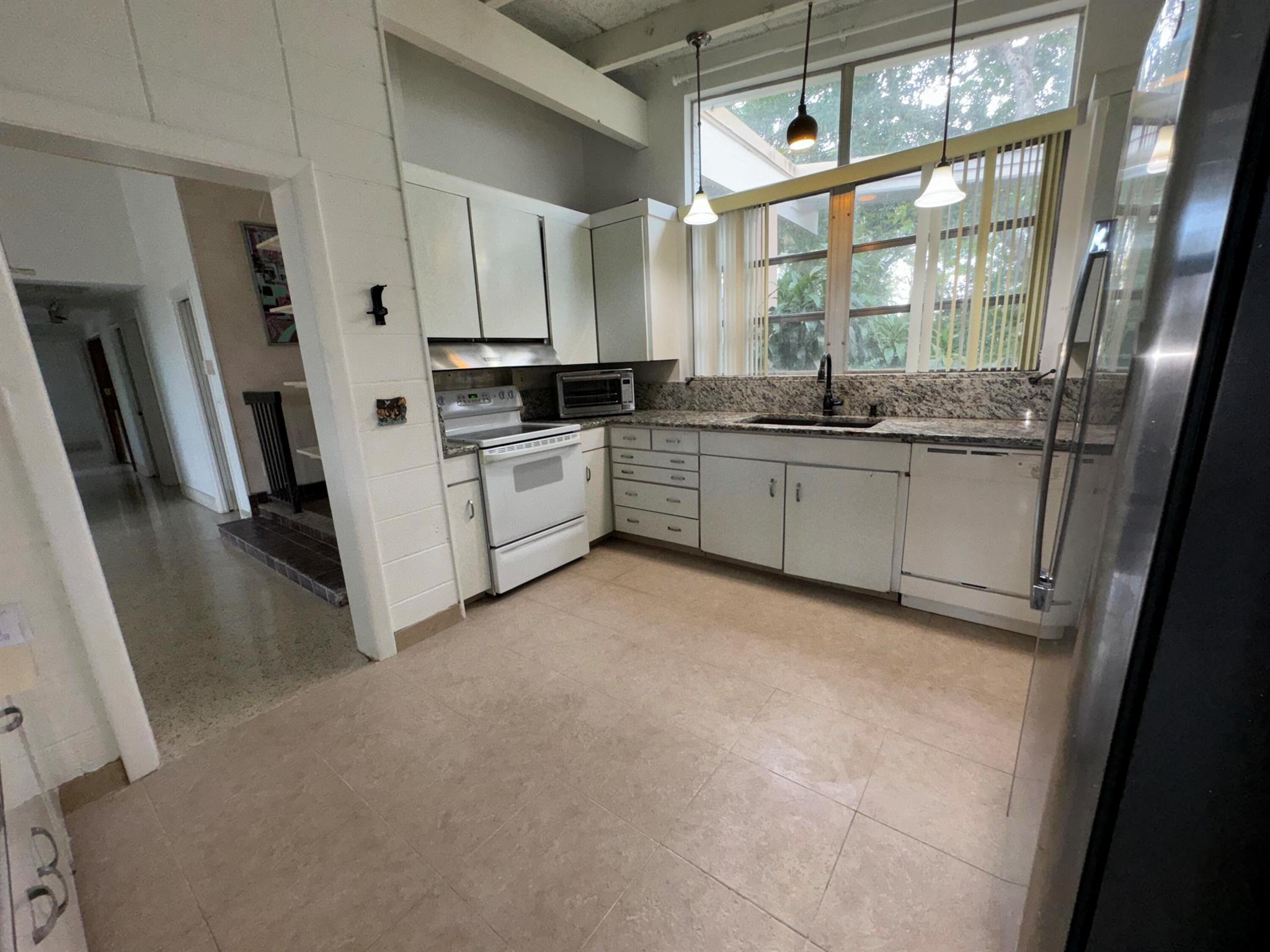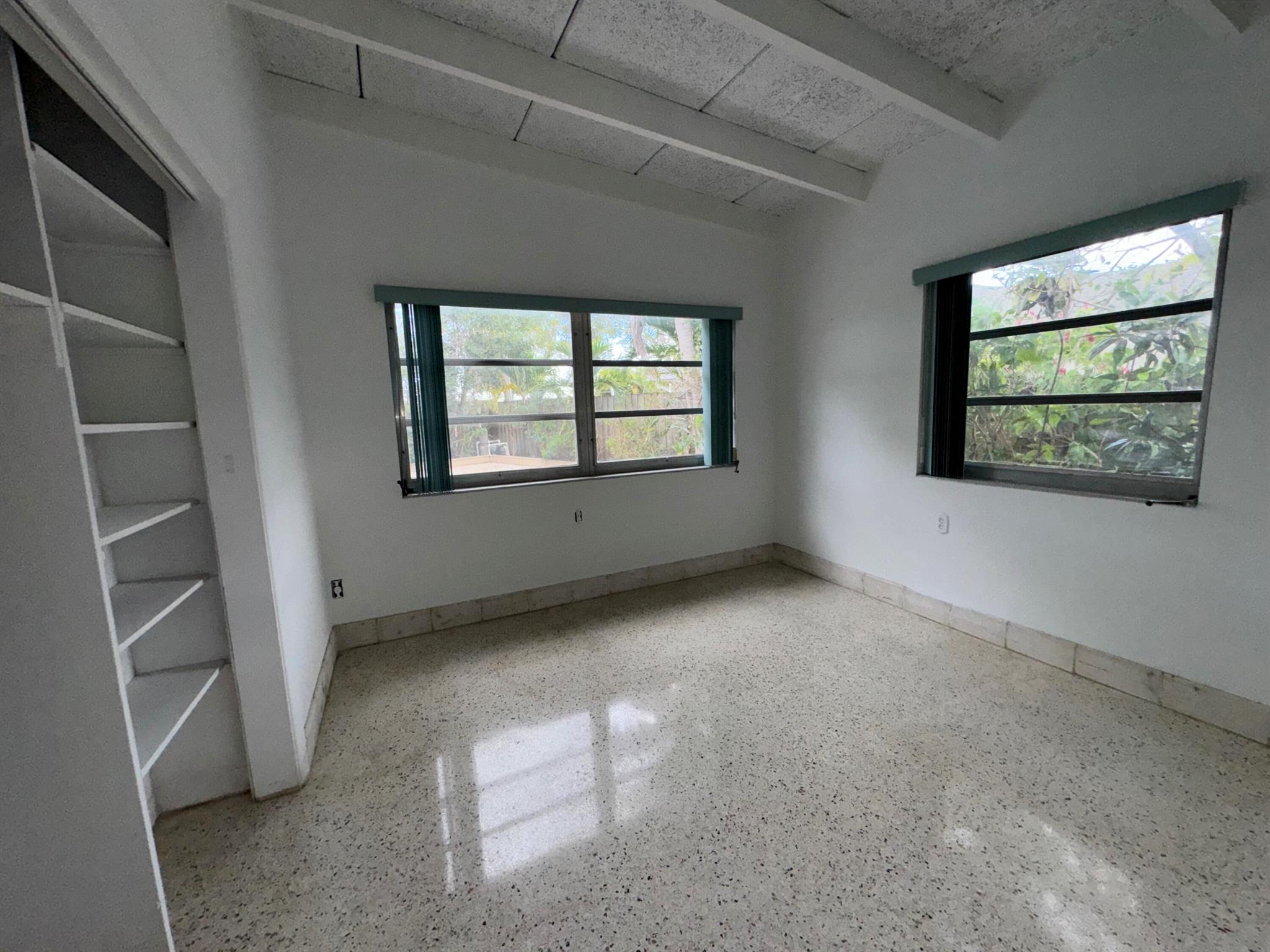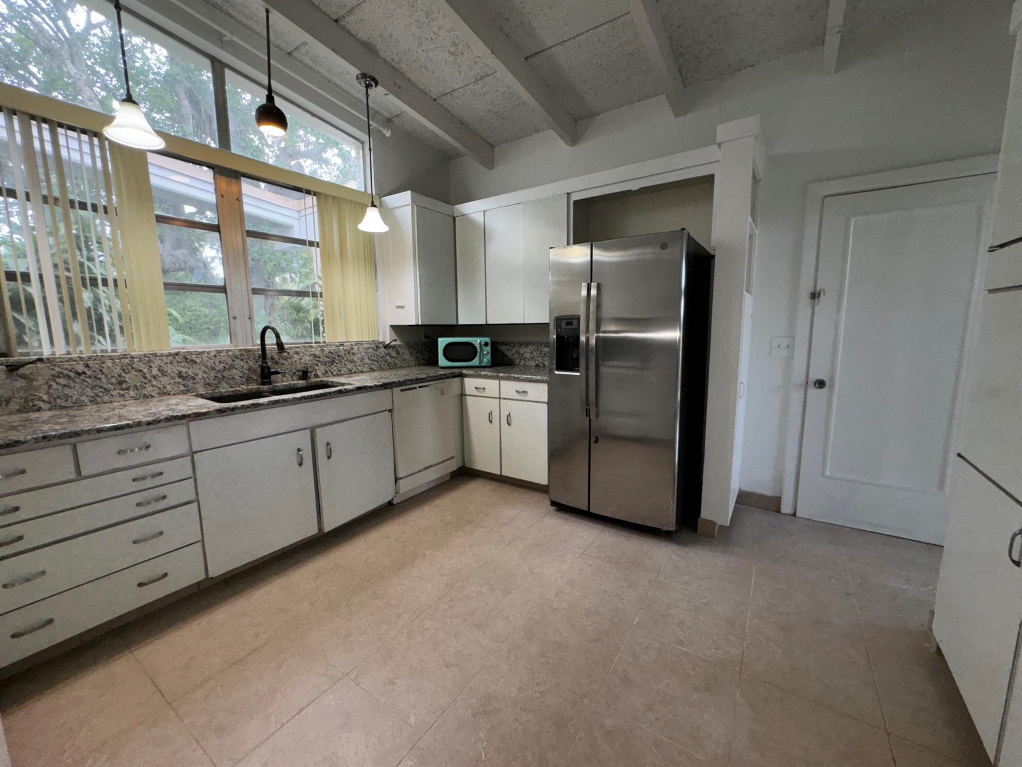 Unique Mid Century modern ranch style home built in 1957 and lived in by the architect Emily Obst who designed most of the mid century homes in the safe lake front community of Lake Clarke Shores .Large over sized pool ,fenced back yard, and two side gardens w mature tropical fruit trees (star fruit, mango, banana) makes this a perfect home for a gardener, a swimmer, and someone with pets and or children .This one won t last. Make your offer today. Plenty of potential, get creative , A MUST SEE…..