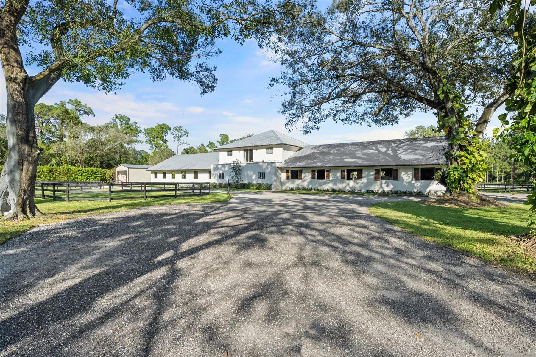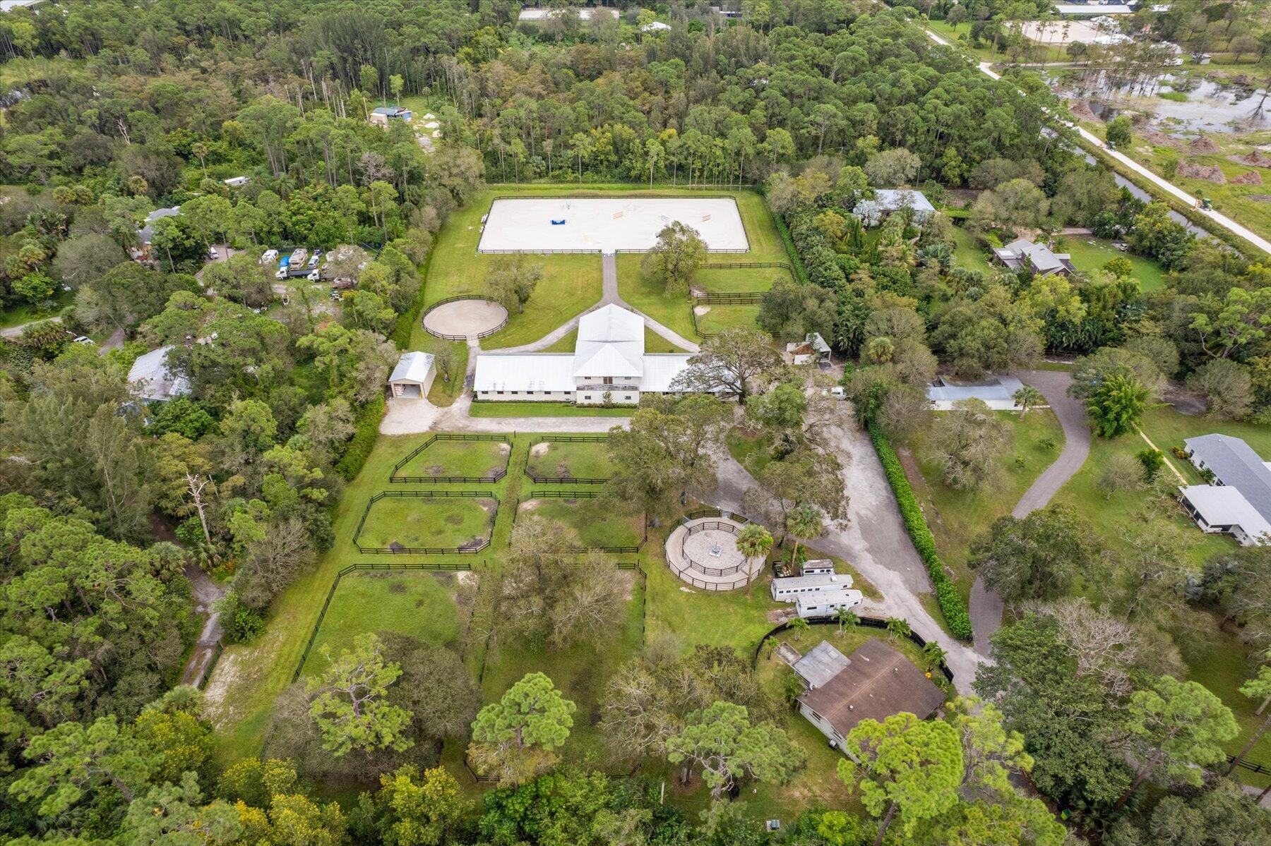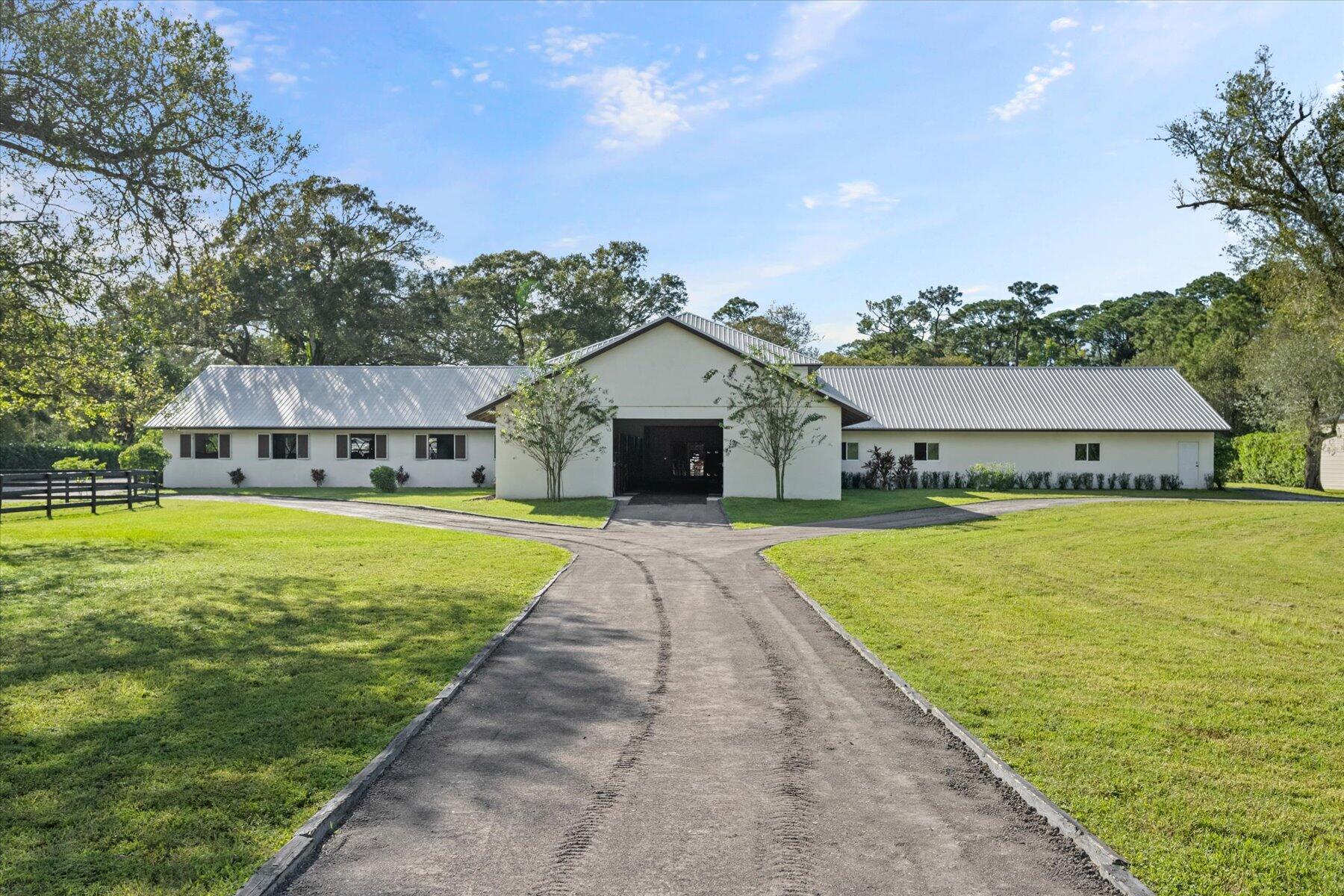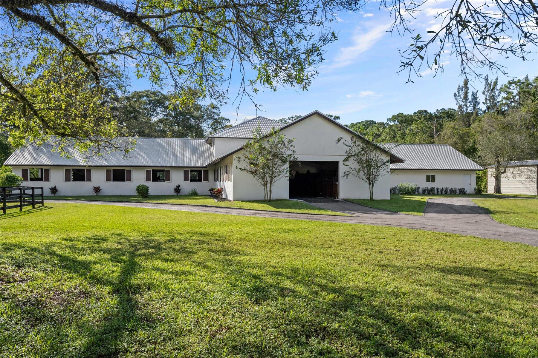 Incredible 5 acre farm SUPER close to Wellington and the horse show. Built in 2016, the CBS farm features 18 12 x 12 comfort mattress stalls and all the amenities you could wish for. 4 grooming and 2 wash stalls in the barn. Large 121 x 226 professionally installed sand ring with full irrigation, 60 ft round pen, 4 horse walker (2023) large hay storage building (2023) 8 grass paddocks with irrigation. Farm includes a 3/2 cottage with a sun room and covered porch. Property abounds with mature trees and hedges and is peaceful and quiet. Brand new 4/4 house on adjoining property is also for sale, MLS# 10938664