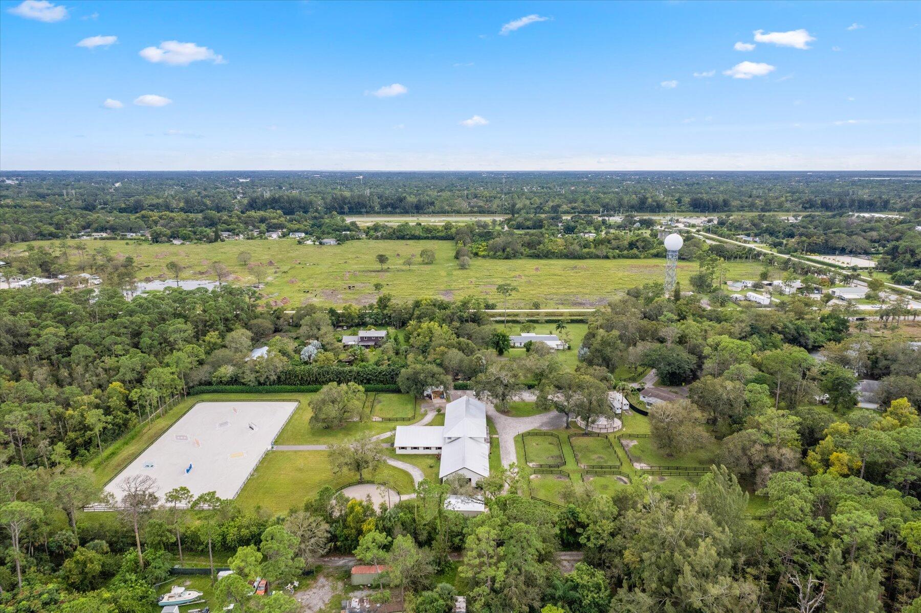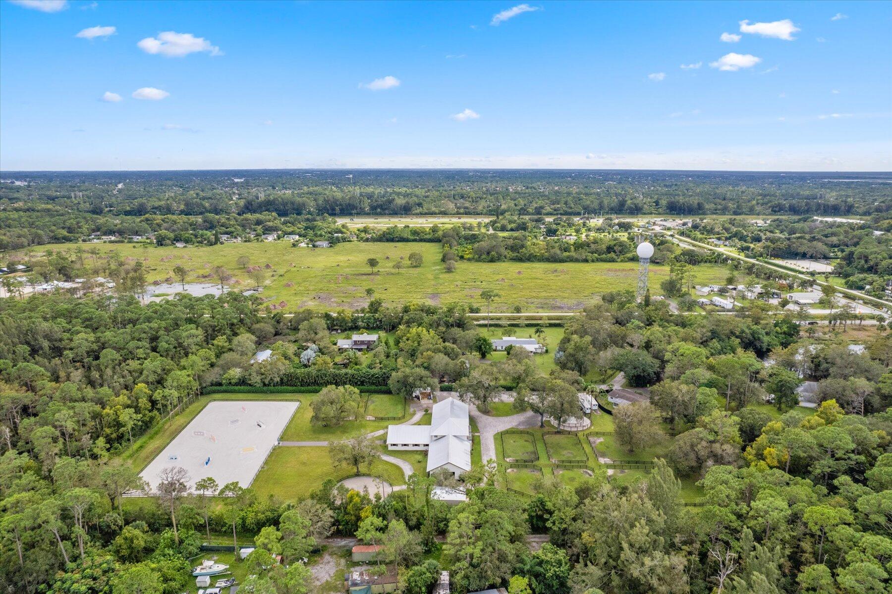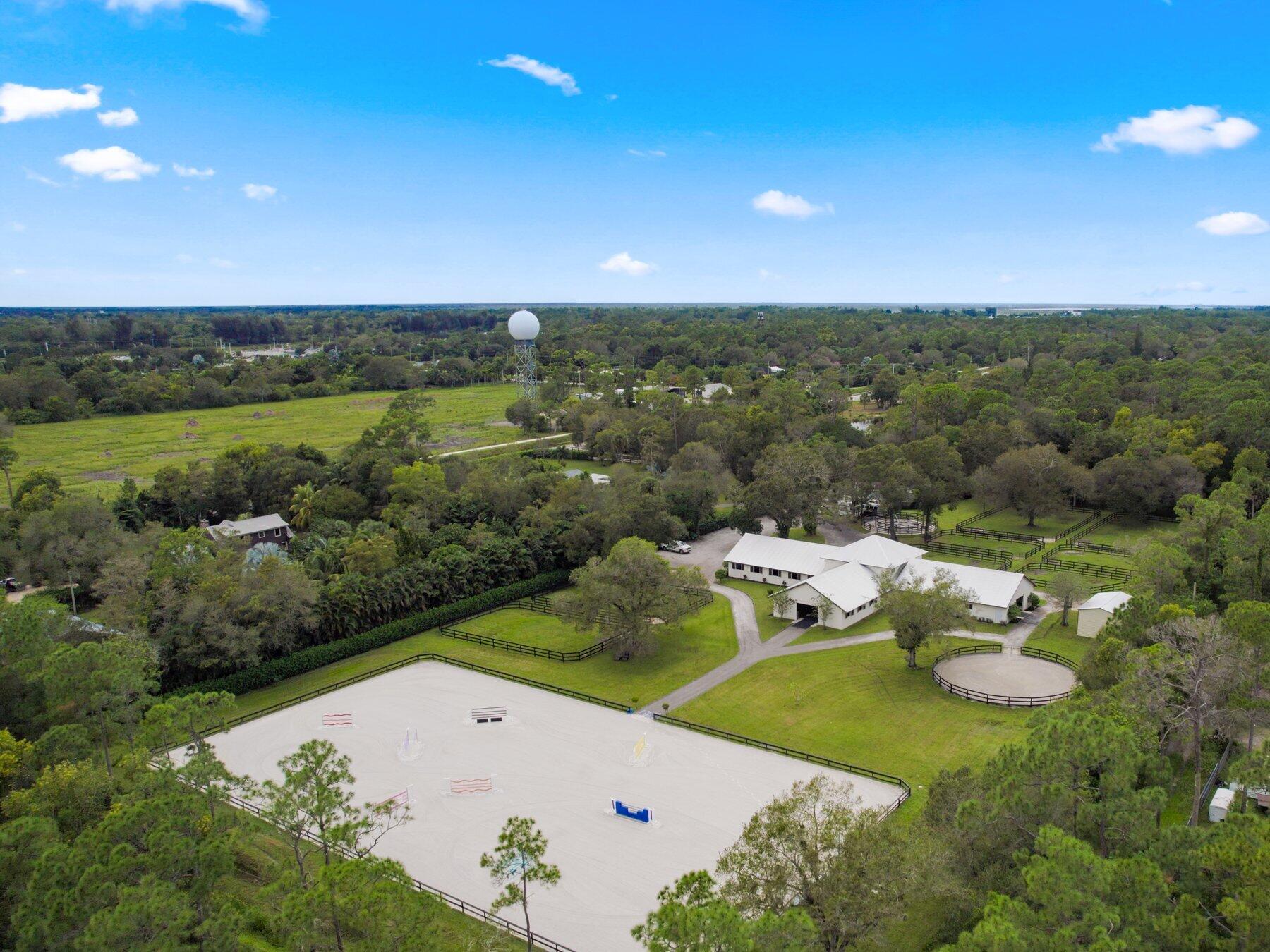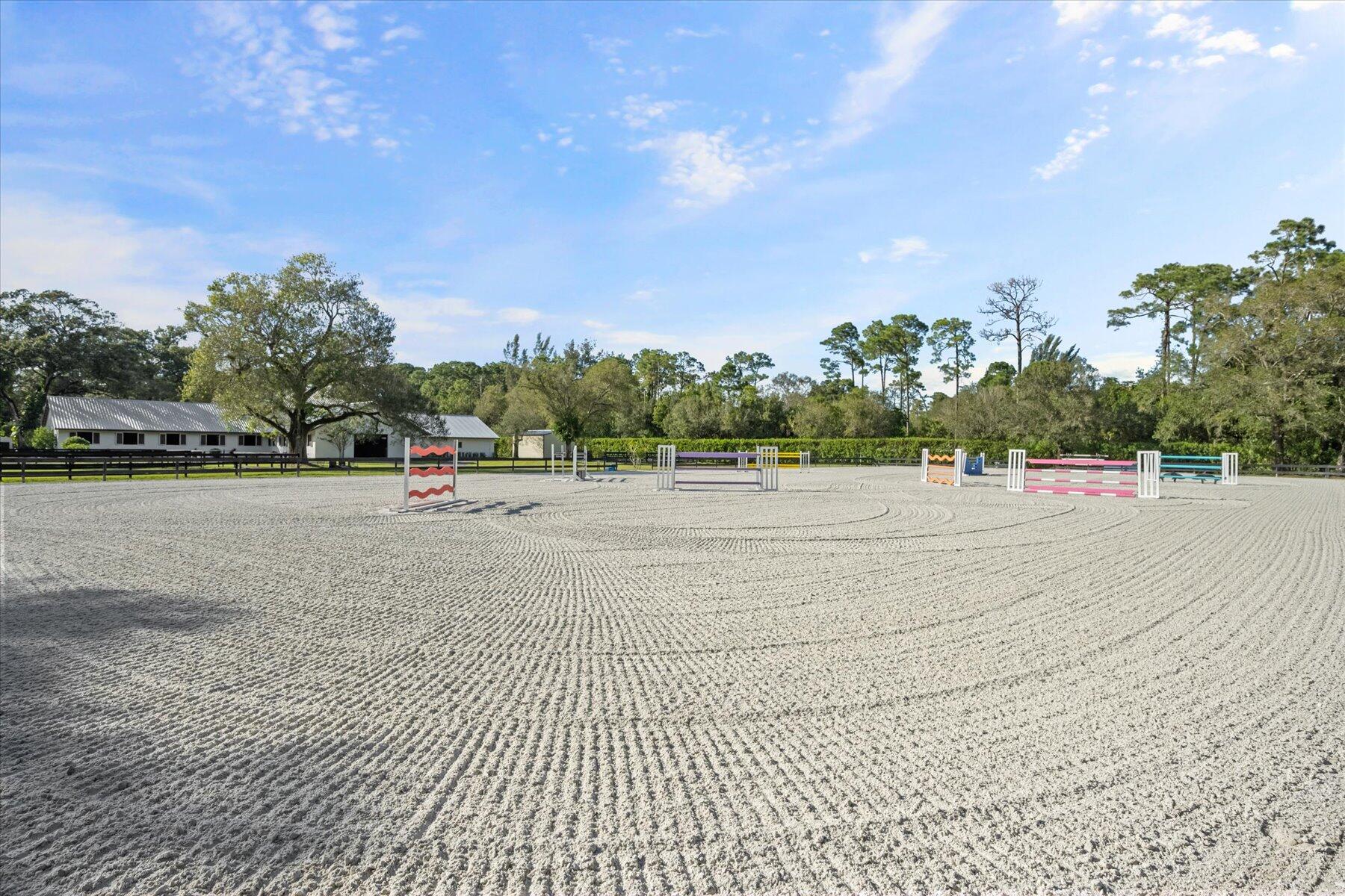 Incredible 5 acre farm SUPER close to Wellington and the horse show. Built in 2016, the CBS farm features 18 12 x 12 comfort mattress stalls and all the amenities you could wish for. 4 grooming and 2 wash stalls in the barn. Large 121 x 226 professionally installed sand ring with full irrigation, 60 ft round pen, 4 horse walker (2023) large hay storage building (2023) 8 grass paddocks with irrigation. Farm includes a 3/2 cottage with a sun room and covered porch. Property abounds with mature trees and hedges and is peaceful and quiet. Brand new 4/4 house on adjoining property is also for sale, MLS# 10938664