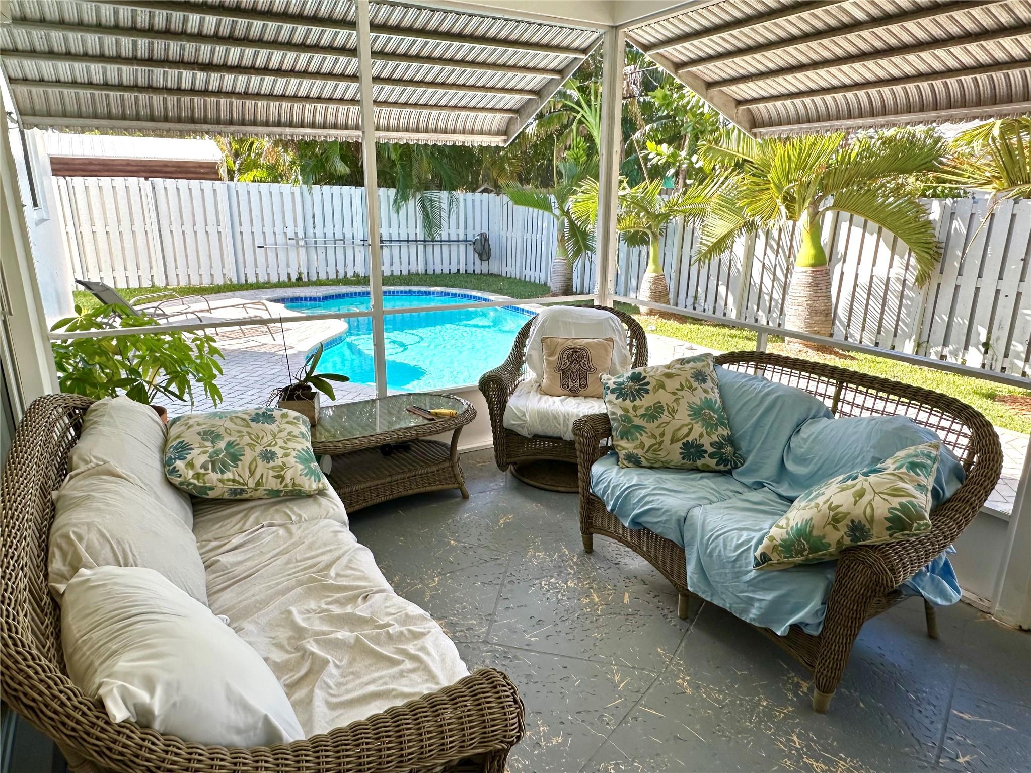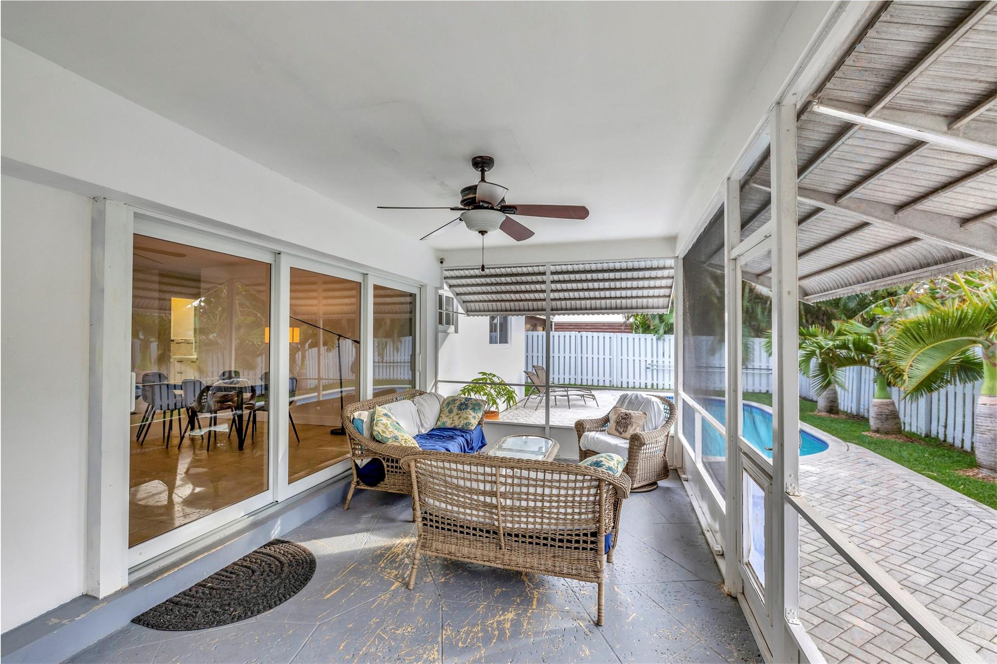 Remodeled 2/2 pool home East of Federal Highway. 2023 new metal roof, 2023 A/C with 2 UV light bars in the unit and duct to sanitize the air, impact windows, and doors. Over $100k invested in last year. The spacious interior features large 3-panel sliding glass doors opening to a screened-in patio. Additional upgrades include a tankless water heater and a new electric panel. Enjoy a short walk to the beach, as well as nearby restaurants and shopping, providing the perfect blend of comfort and convenience. Ask your agent for the inspection and wind mitigation report that owner ordered. If you see this listing online as active that means it is still available. Property one of the few east of Federal that are high and not in flood zone. No lender required flood insurance needed.
