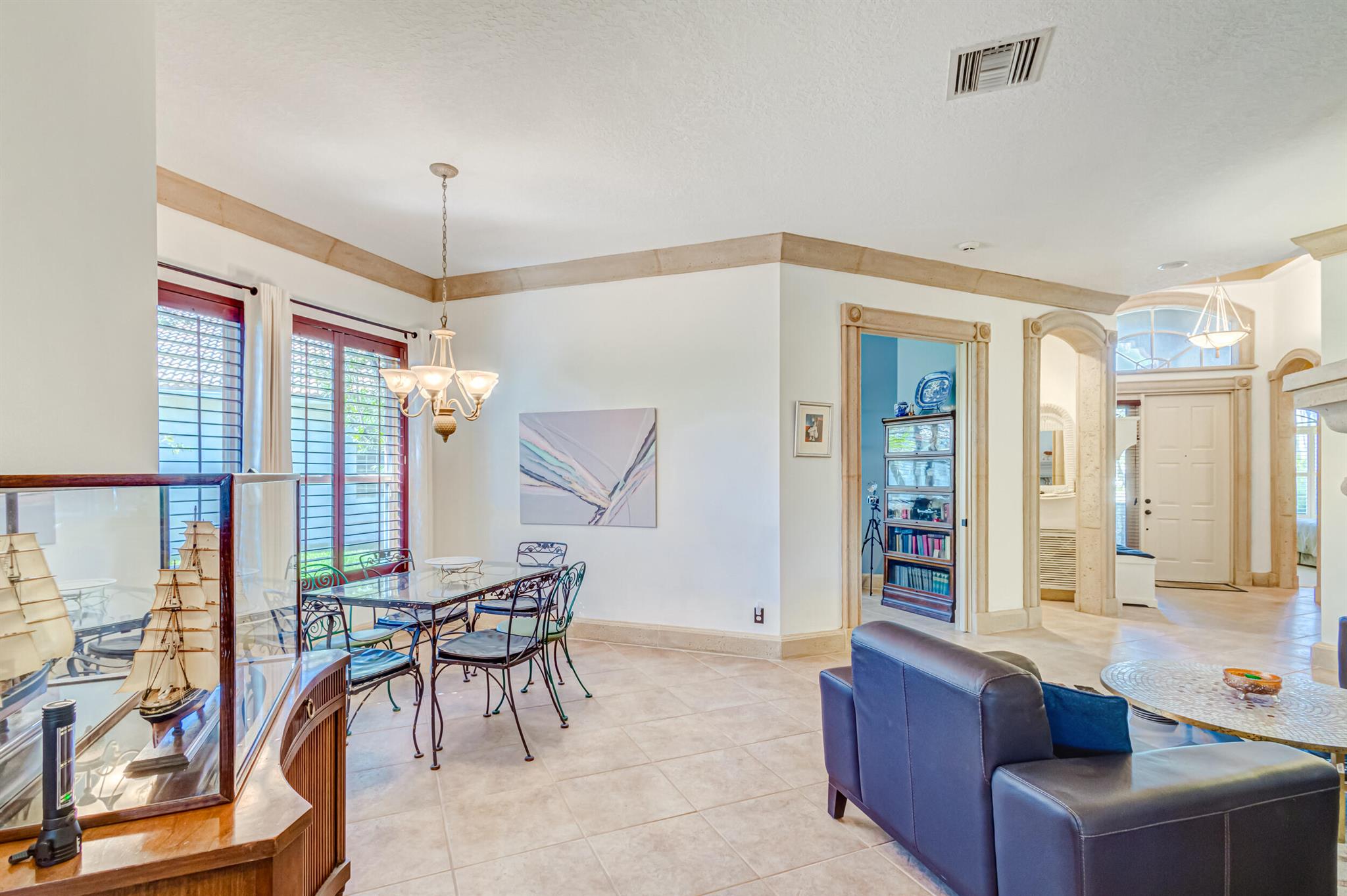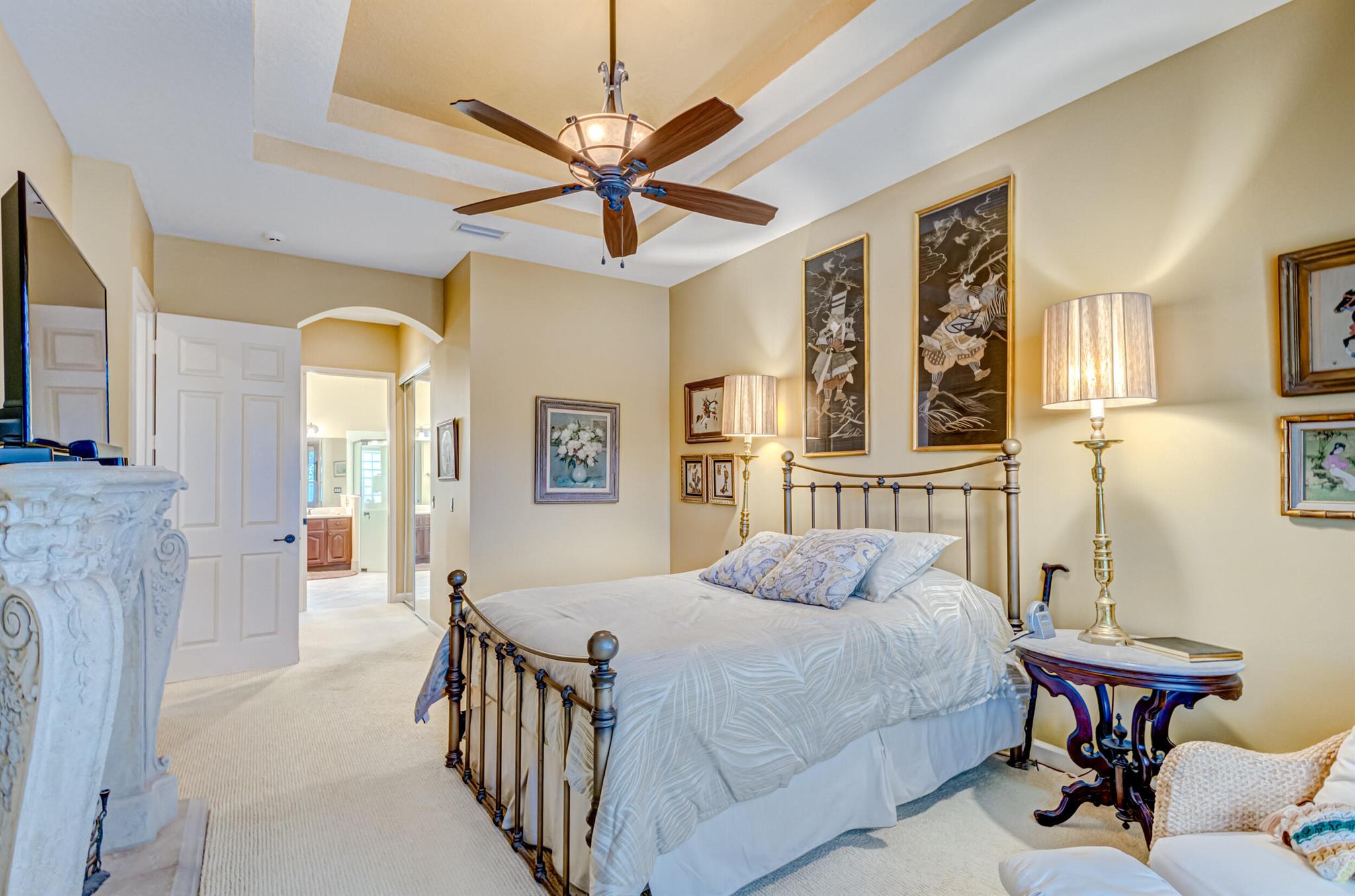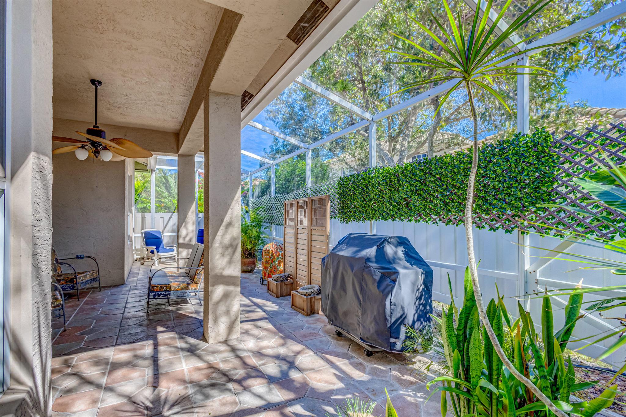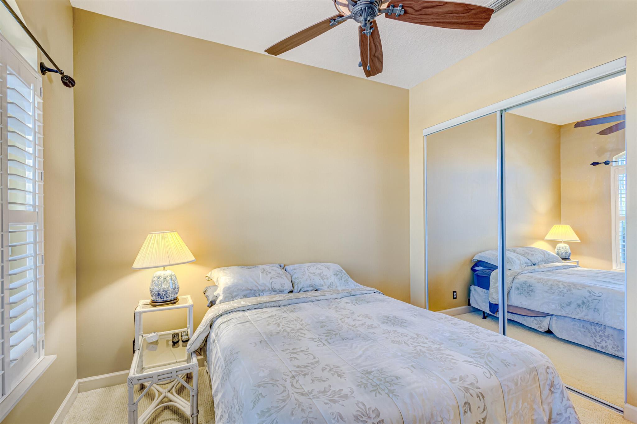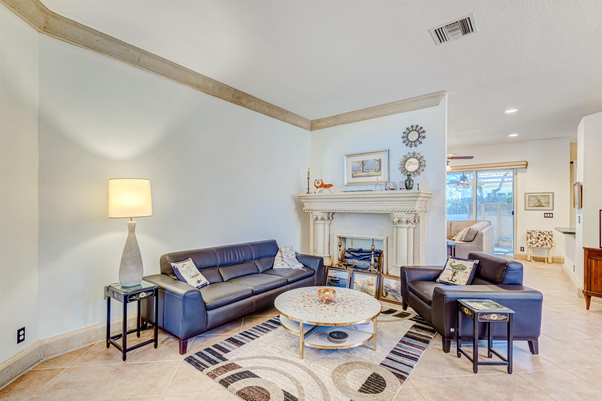 Immaculate single-family home nestled in a quiet cul-de-sac, featuring 2 bedrooms, 2 bathrooms, and a 2-car garage with a den adorned with exquisite cement molding. The well-designed layout includes split bedrooms and well maintained kitchen open up to the living room space. The master bedroom is spacious and boasts numerous upgrades such as plantation shutters, decorative fireplace, a double tray ceiling, and expansive double walk-in closets. The property sits on a larger lot with a generous side yard. Enjoy outdoor living on the huge lanai in the back for your morning tea and coffee. Not to mention this desirable guard gated Community includes lawn care, irrigation maintenance, 24/7 staffed gate, monitored home security, Basic CATV, WiFi and Broadband, award winning clubhouse with large