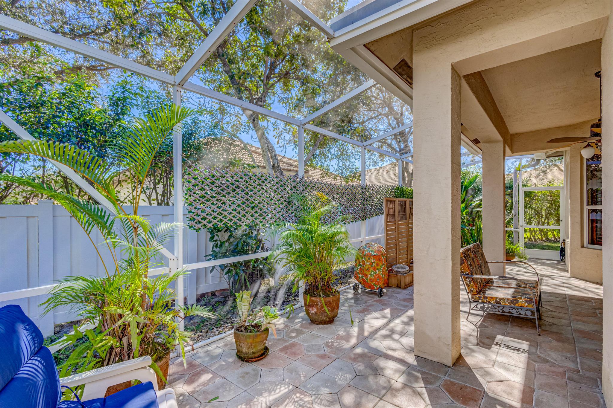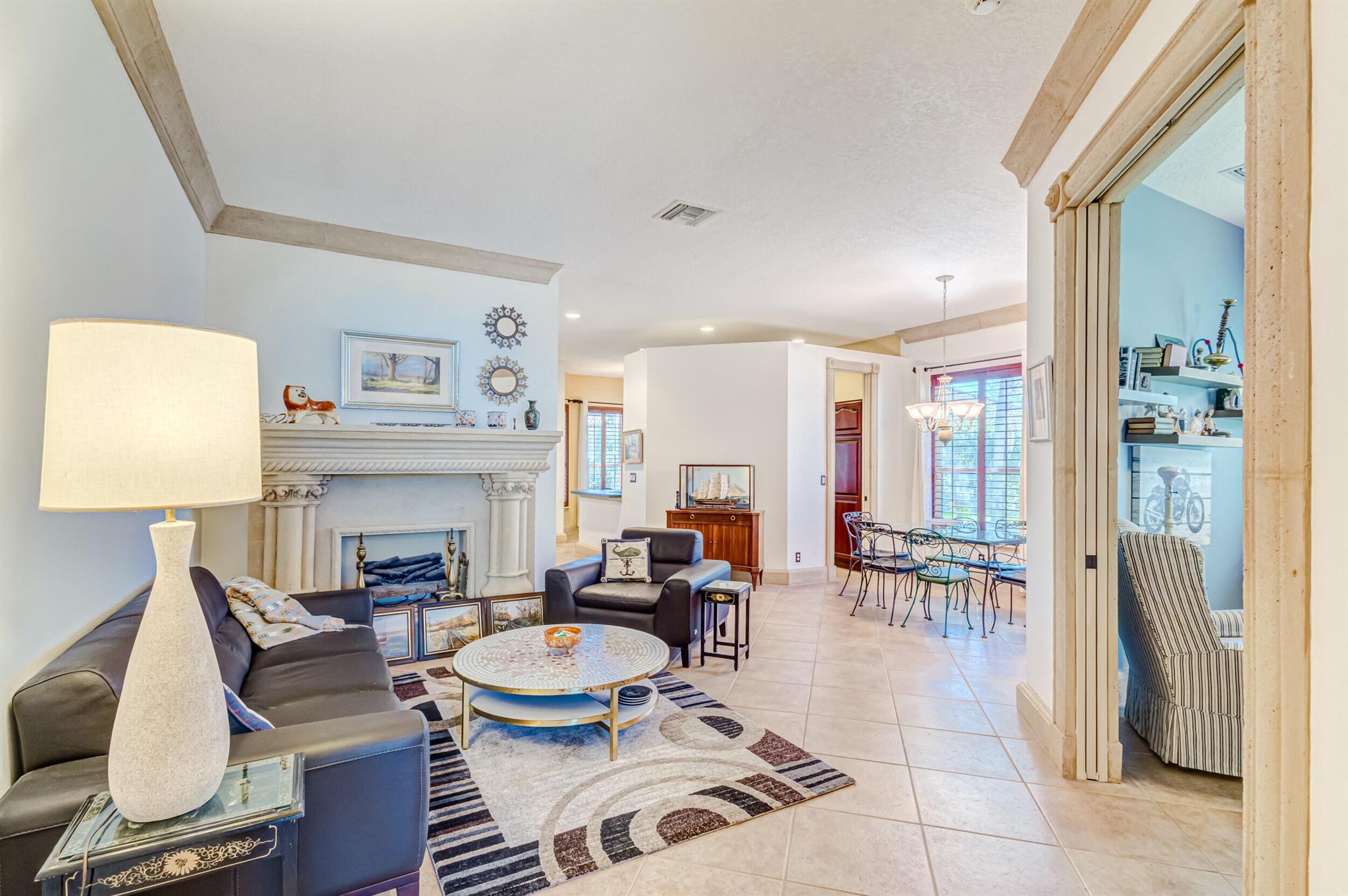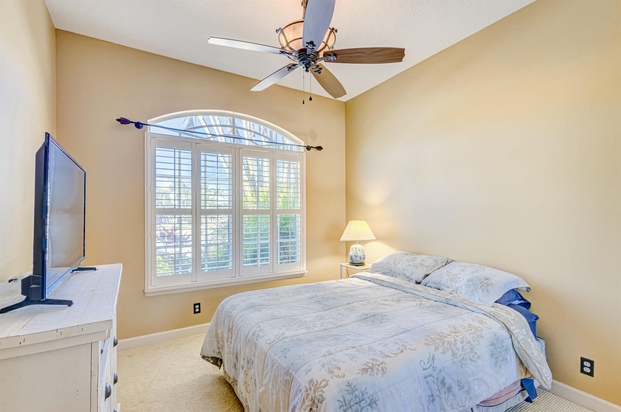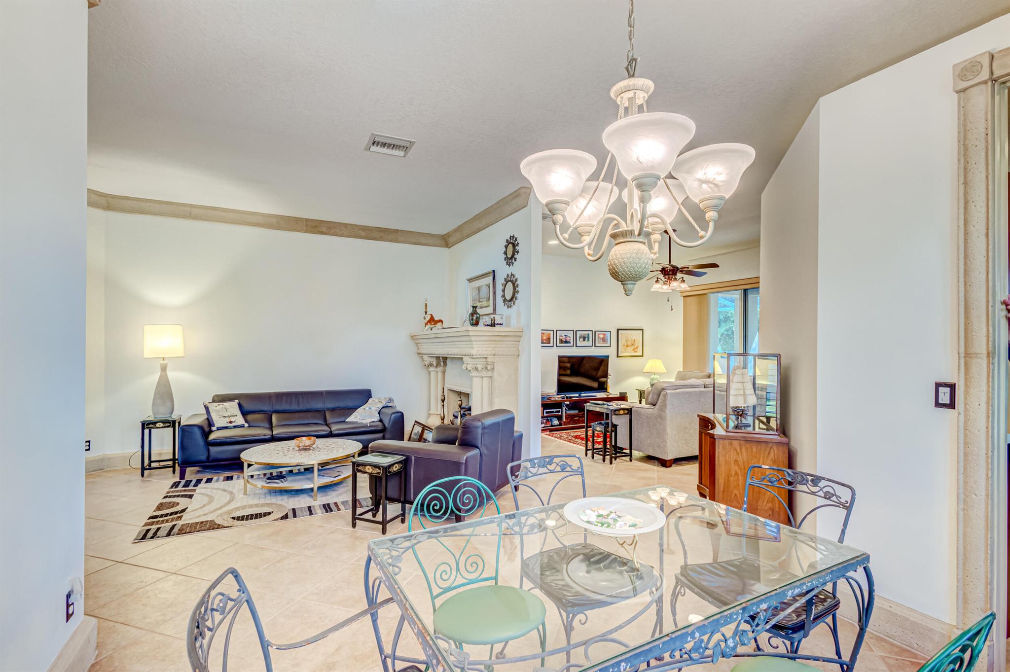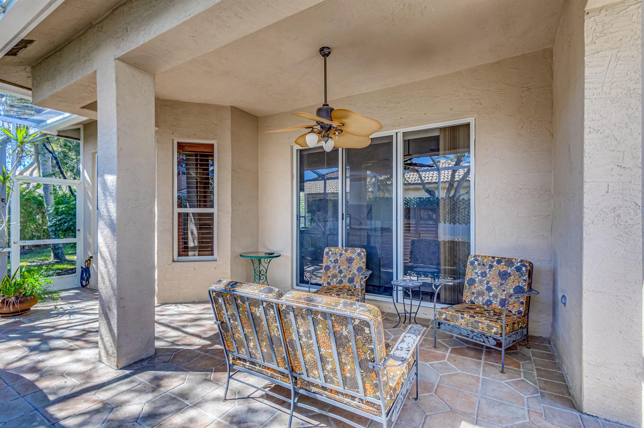 Immaculate single-family home nestled in a quiet cul-de-sac, featuring 2 bedrooms, 2 bathrooms, and a 2-car garage with a den adorned with exquisite cement molding. The well-designed layout includes split bedrooms and well maintained kitchen open up to the living room space. The master bedroom is spacious and boasts numerous upgrades such as plantation shutters, decorative fireplace, a double tray ceiling, and expansive double walk-in closets. The property sits on a larger lot with a generous side yard. Enjoy outdoor living on the huge lanai in the back for your morning tea and coffee. Not to mention this desirable guard gated Community includes lawn care, irrigation maintenance, 24/7 staffed gate, monitored home security, Basic CATV, WiFi and Broadband, award winning clubhouse with large