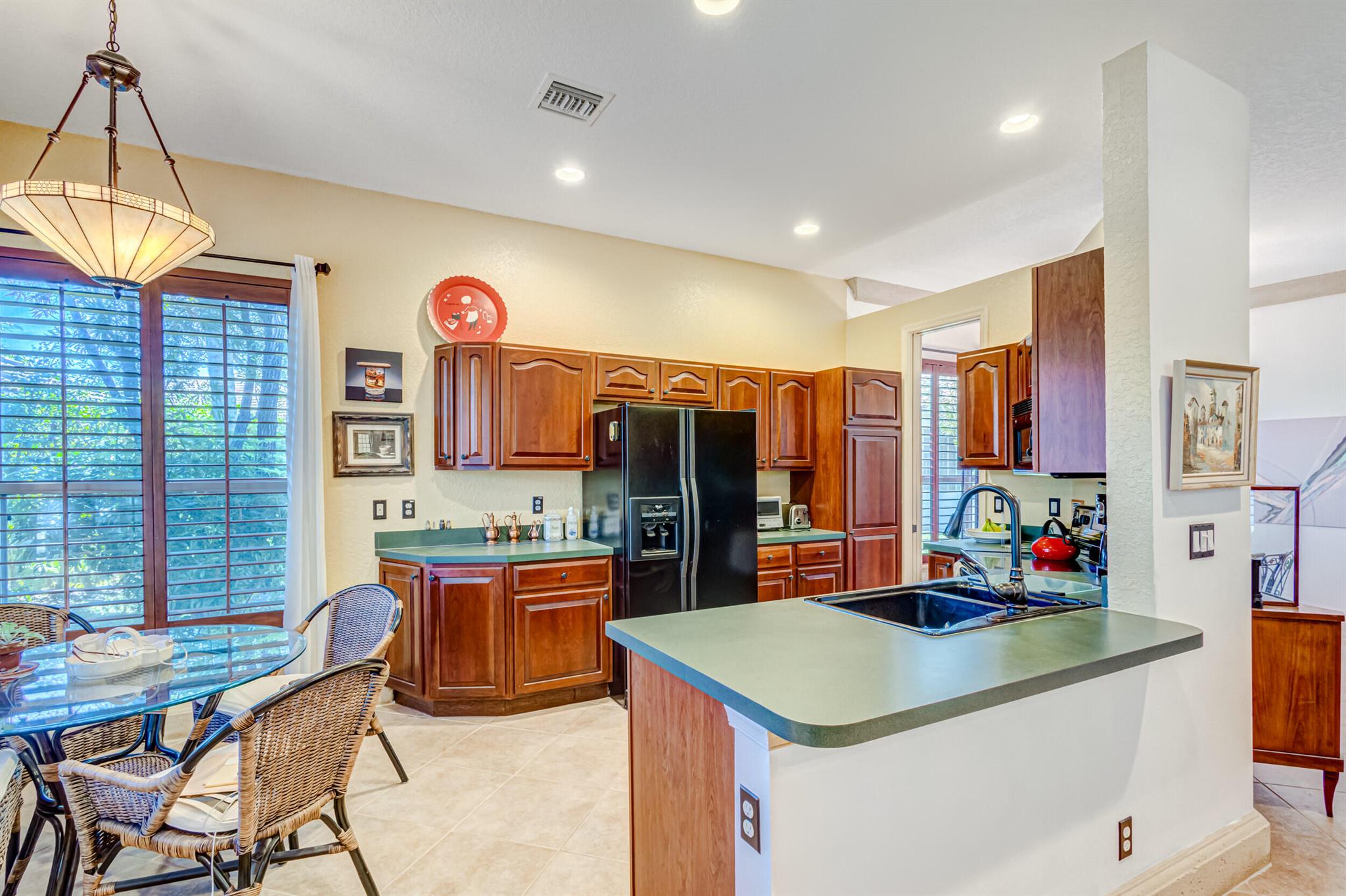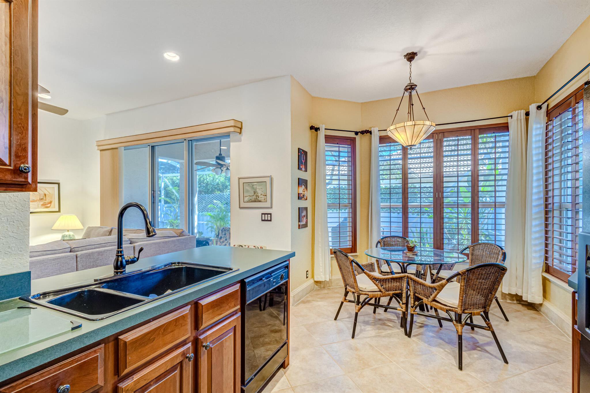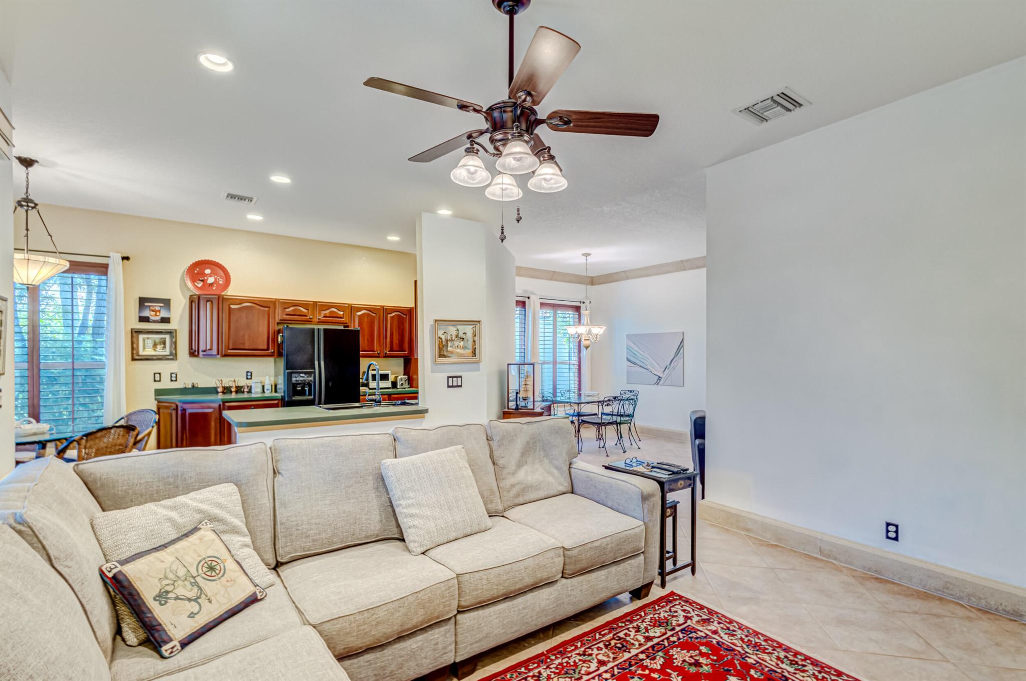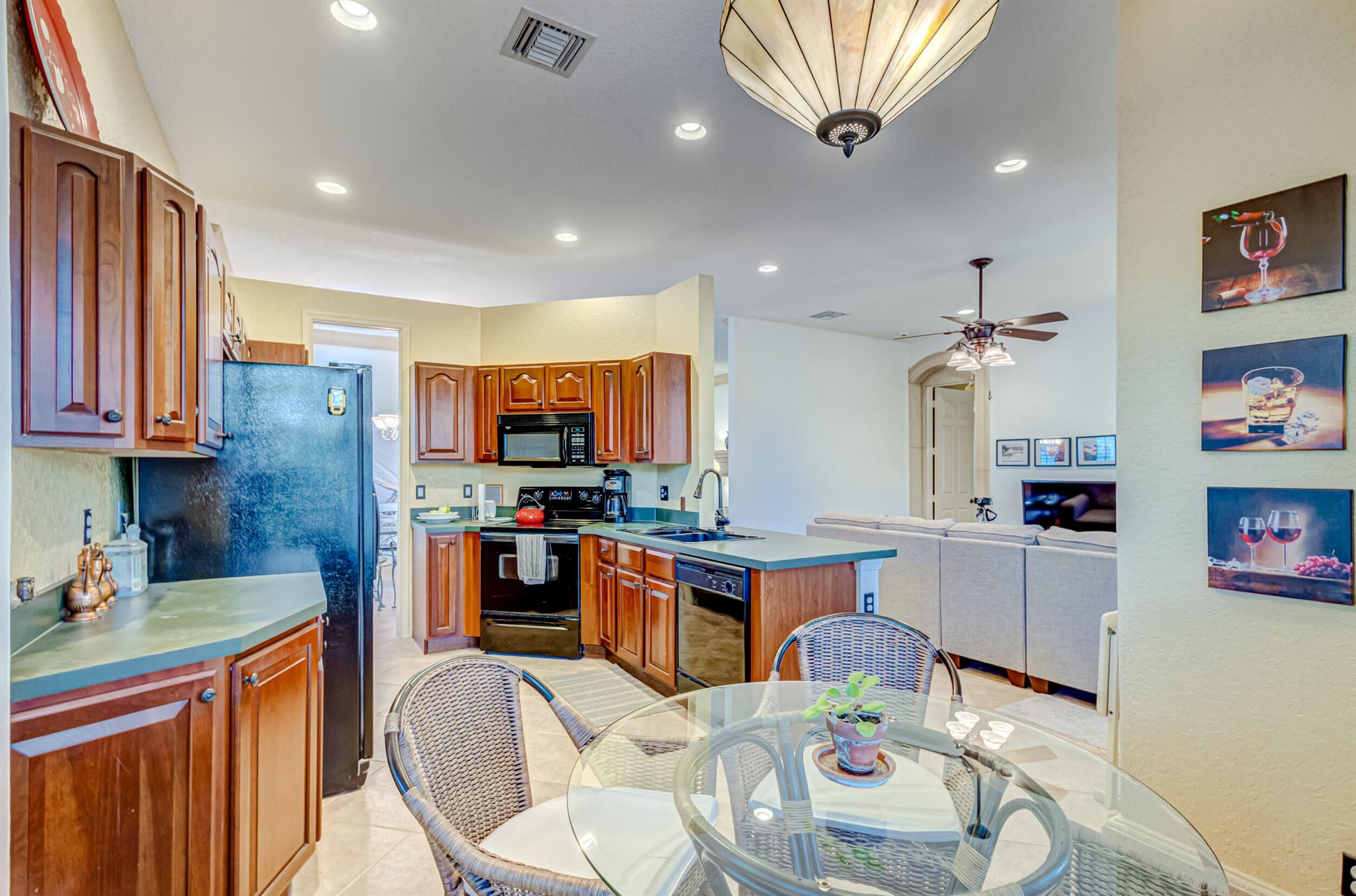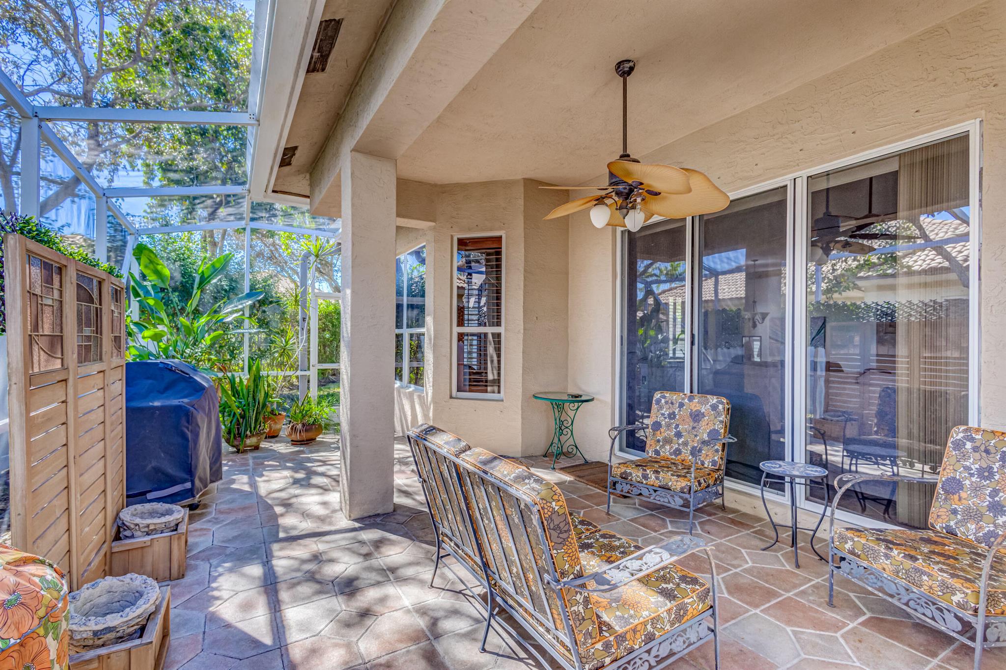 Immaculate single-family home nestled in a quiet cul-de-sac, featuring 2 bedrooms, 2 bathrooms, and a 2-car garage with a den adorned with exquisite cement molding. The well-designed layout includes split bedrooms and well maintained kitchen open up to the living room space. The master bedroom is spacious and boasts numerous upgrades such as plantation shutters, decorative fireplace, a double tray ceiling, and expansive double walk-in closets. The property sits on a larger lot with a generous side yard. Enjoy outdoor living on the huge lanai in the back for your morning tea and coffee. Not to mention this desirable guard gated Community includes lawn care, irrigation maintenance, 24/7 staffed gate, monitored home security, Basic CATV, WiFi and Broadband, award winning clubhouse with large