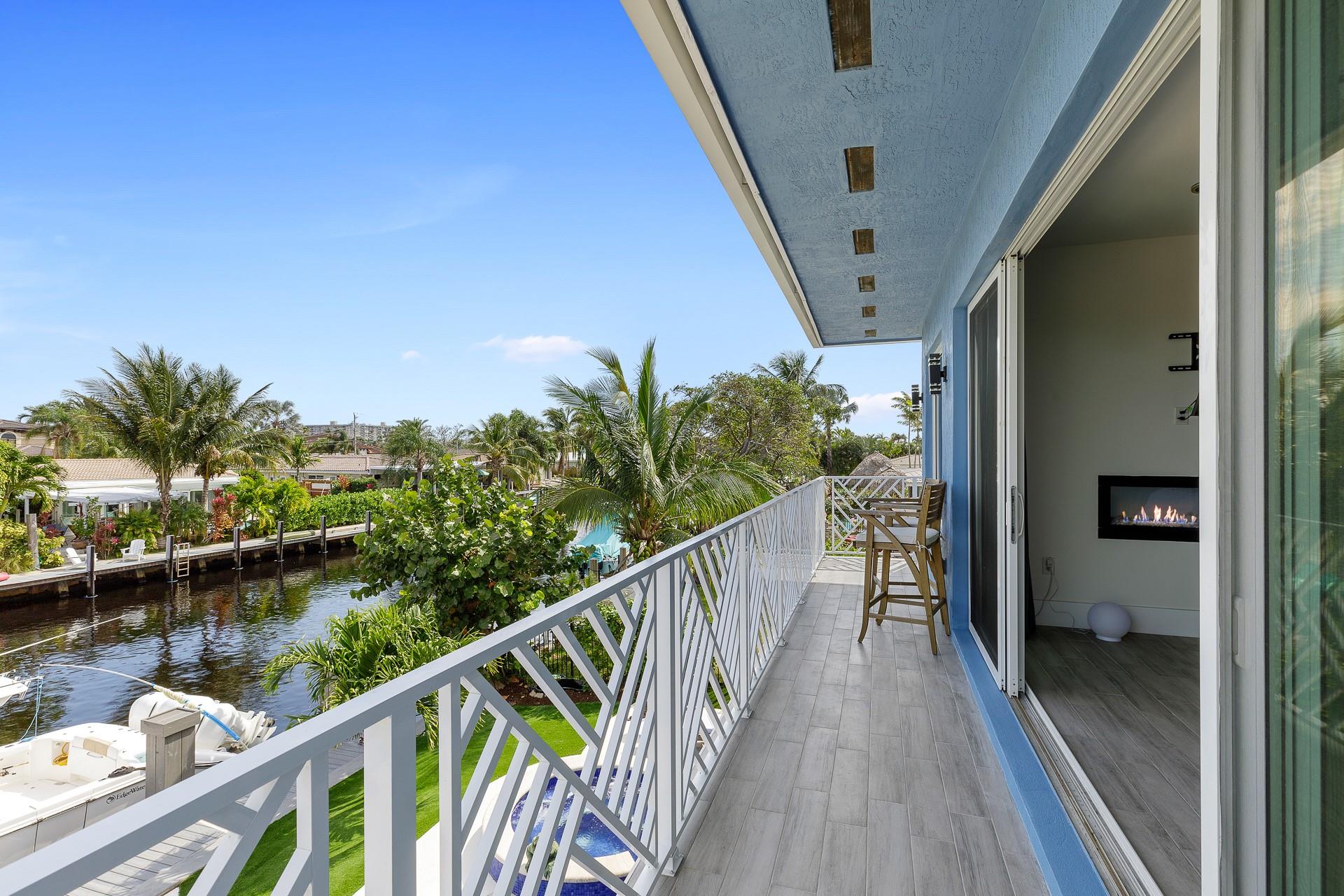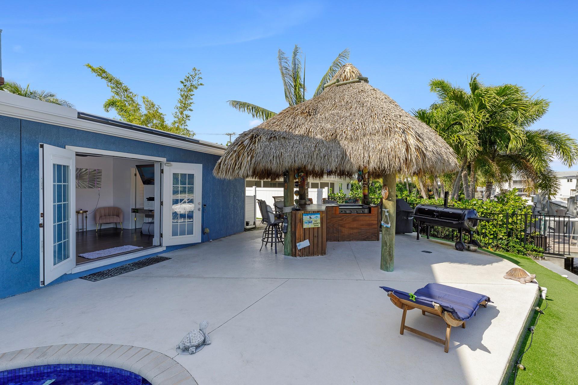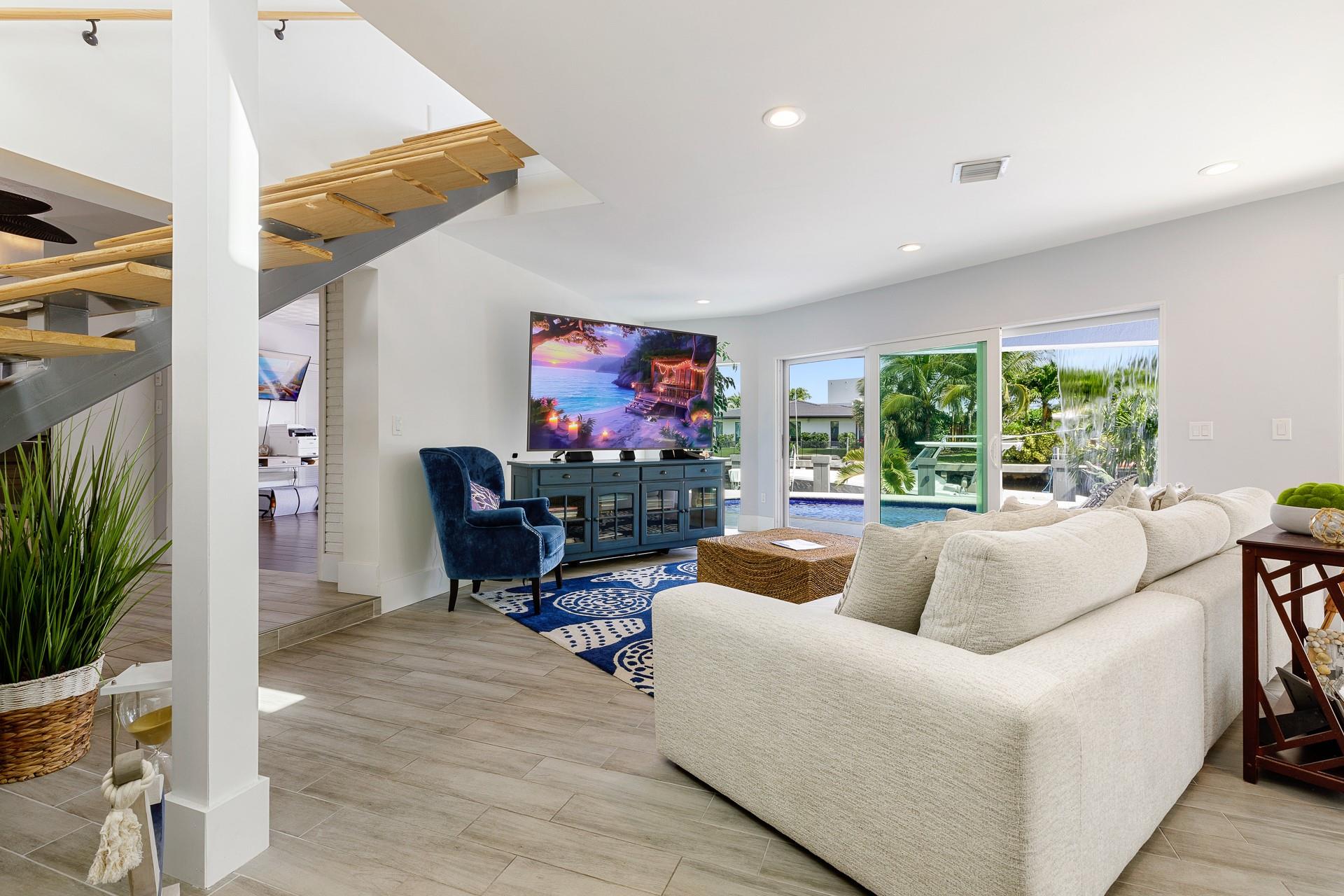 Waterfront home with 1 fixed bridge. 15 minute boat ride to Hillsboro Outlet. Glass tile pool & jacuzzi with 2nd floor waterfall. 2 master bedrooms with bathroom & walking closets. Open floor plan. Tons of light and hurricane proof windows. Window open on both sides giving it a inside outdoor living. Dock is composite wood with 110AMP. 2 year old tiki with Hibachi flat grill & bar. Tankless water heater. 2nd floor deck. Turf in backyard. Mango tree. Oversized baseboards. 3rd bedroom used as office but has a walk in closet- no door but can be installed. Too much to name. Come see it.