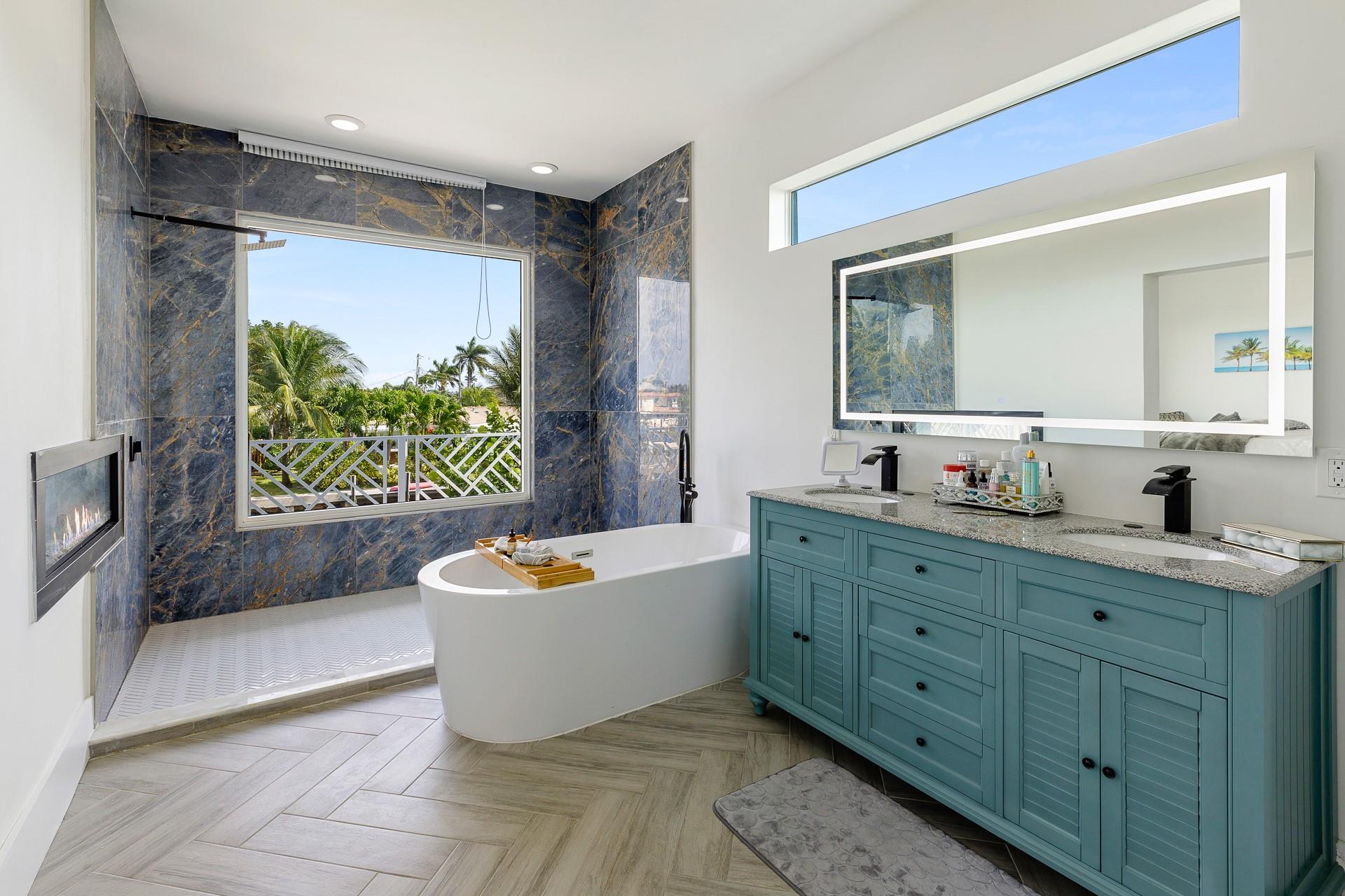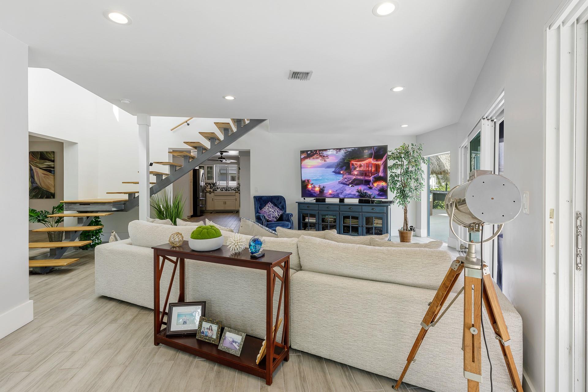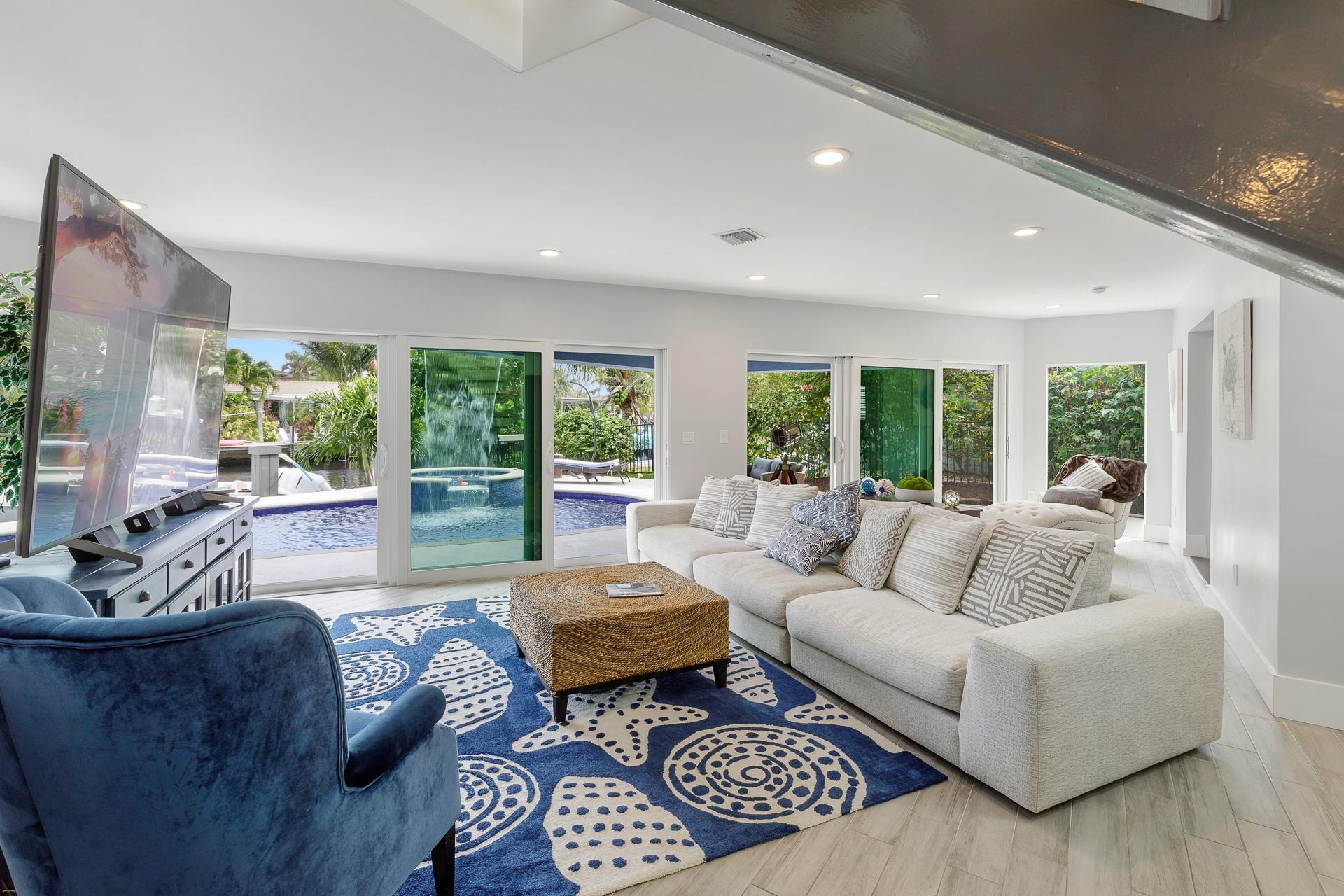 Waterfront home with 1 fixed bridge. 15 minute boat ride to Hillsboro Outlet. Glass tile pool & jacuzzi with 2nd floor waterfall. 2 master bedrooms with bathroom & walking closets. Open floor plan. Tons of light and hurricane proof windows. Window open on both sides giving it a inside outdoor living. Dock is composite wood with 110AMP. 2 year old tiki with Hibachi flat grill & bar. Tankless water heater. 2nd floor deck. Turf in backyard. Mango tree. Oversized baseboards. 3rd bedroom used as office but has a walk in closet- no door but can be installed. Too much to name. Come see it.