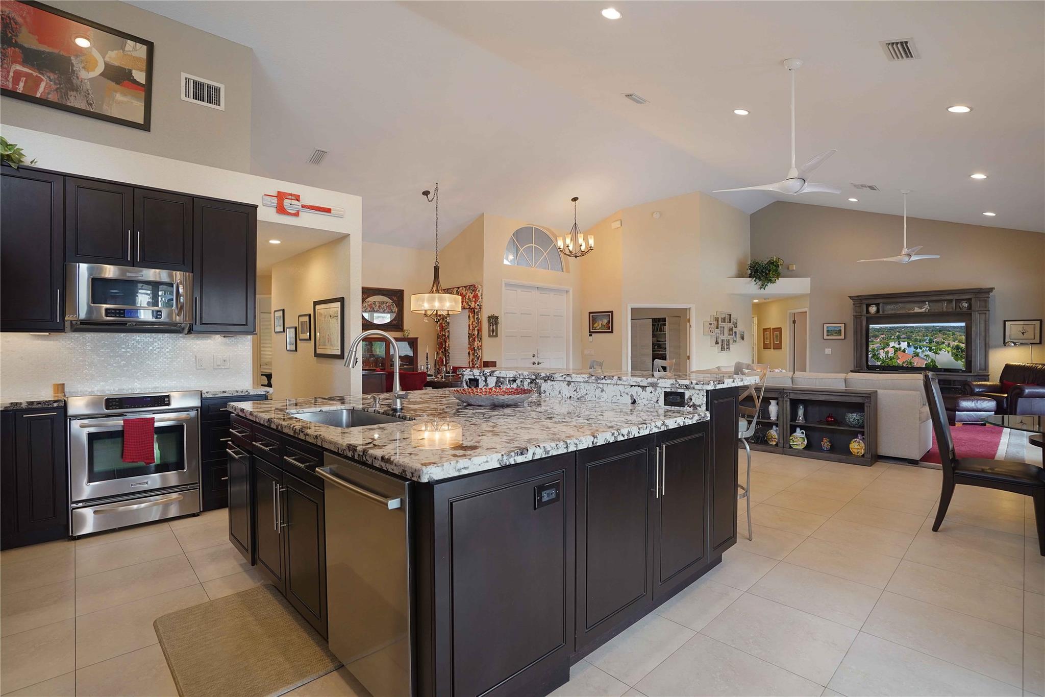 Indulge in the epitome of luxury living with this stunning 4 bedroom, 2.5-bath waterfront oasis in Sonata at Mission Bay. Meticulously maintained and thoughtfully remodeled, this home offers a symphony of features. The open floor plan creates an inviting atmosphere, seamlessly blending with spectacular water and sunset views The remodeled chef’s kitchen is a masterpiece, complete with a large center island, wood cabinets, granite countertops, stainless steel appliances. Ideal for culinary creations and entertaining guests. Remodeled bathrooms, split floor plan, volume ceilings. Exterior features include impact windows, heated pool, screened in patio and multiple entertaining spaces, fenced in yard, impact garage door, low hoa. Make this haven yours today.