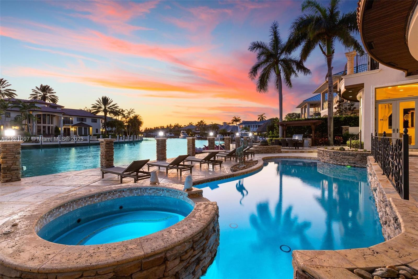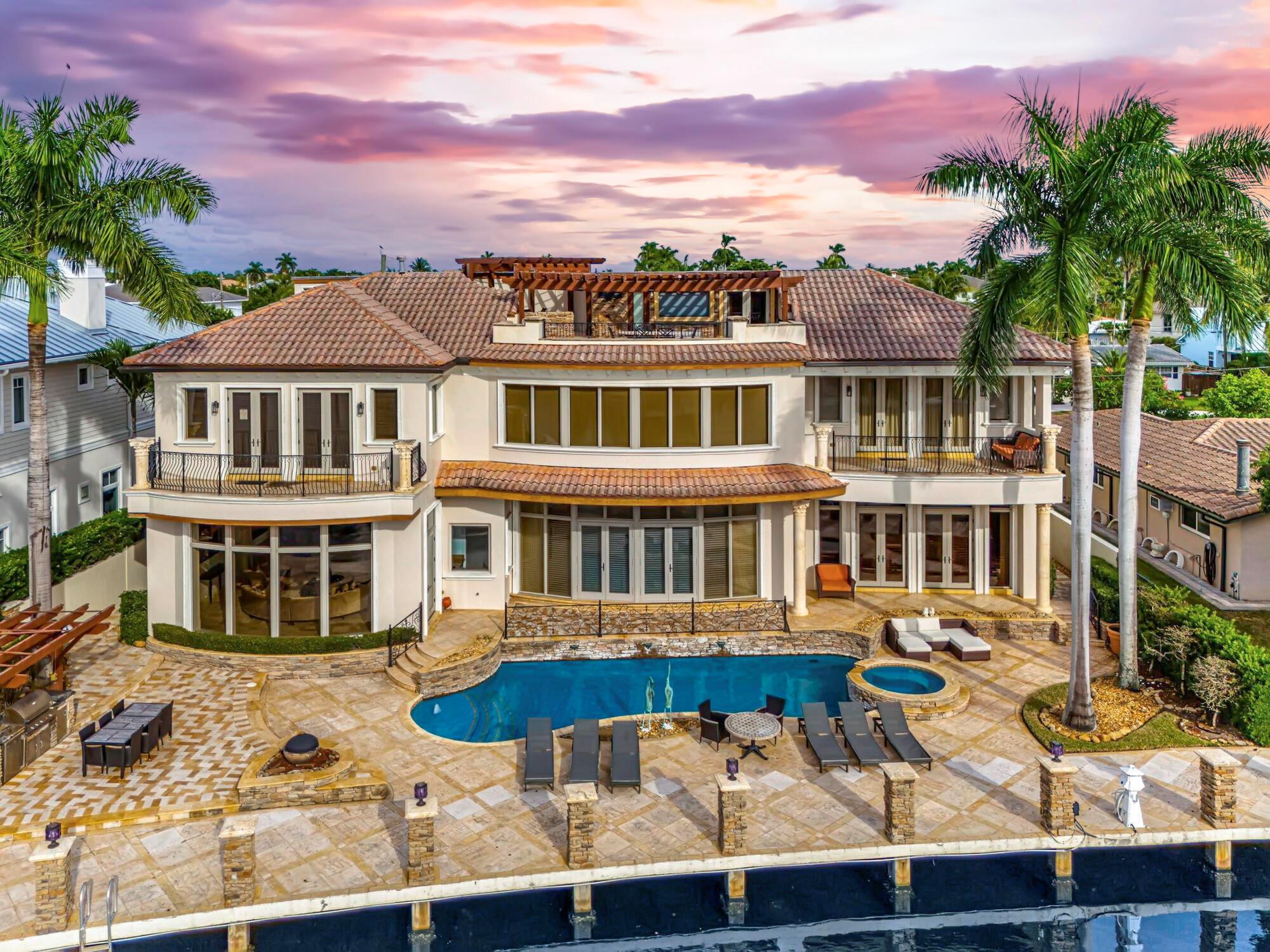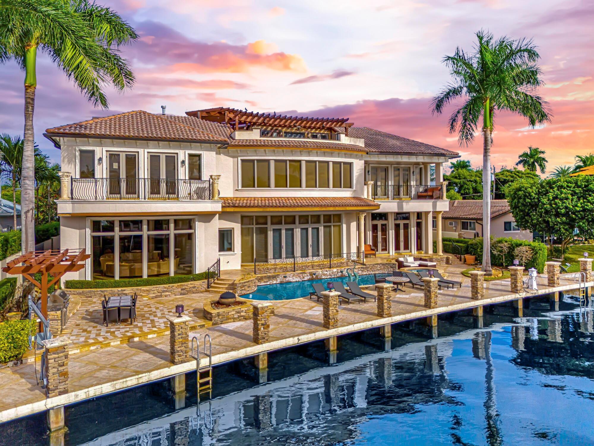 Indulge in the splendor of Casa Del Turo, an opulent waterfront estate nestled in the prestigious enclave of Lighthouse Point. This Euro-inspired masterpiece offers an expansive 100+ feet of dockage, granting swift access to the ocean’s allure within minutes.Elevating luxury living to new heights, this grand Mediterranean villa spans three regal stories, showcasing a symphony of sophistication. With 5 bedrooms, 6 full bathrooms, and 2 powder rooms, every inch of this residence exudes refinement. Delight in entertainment extravagance with a home theater, a wine cellar, a sauna, and an elevator that effortlessly transports you through this palatial abode.A gas fireplace sets a captivating ambiance, while a world-class billiard room beckons for leisurely evenings, seamlessly accompanie