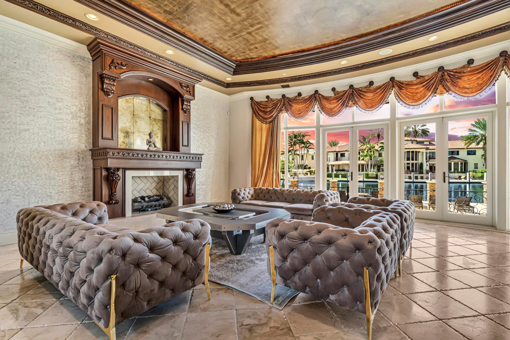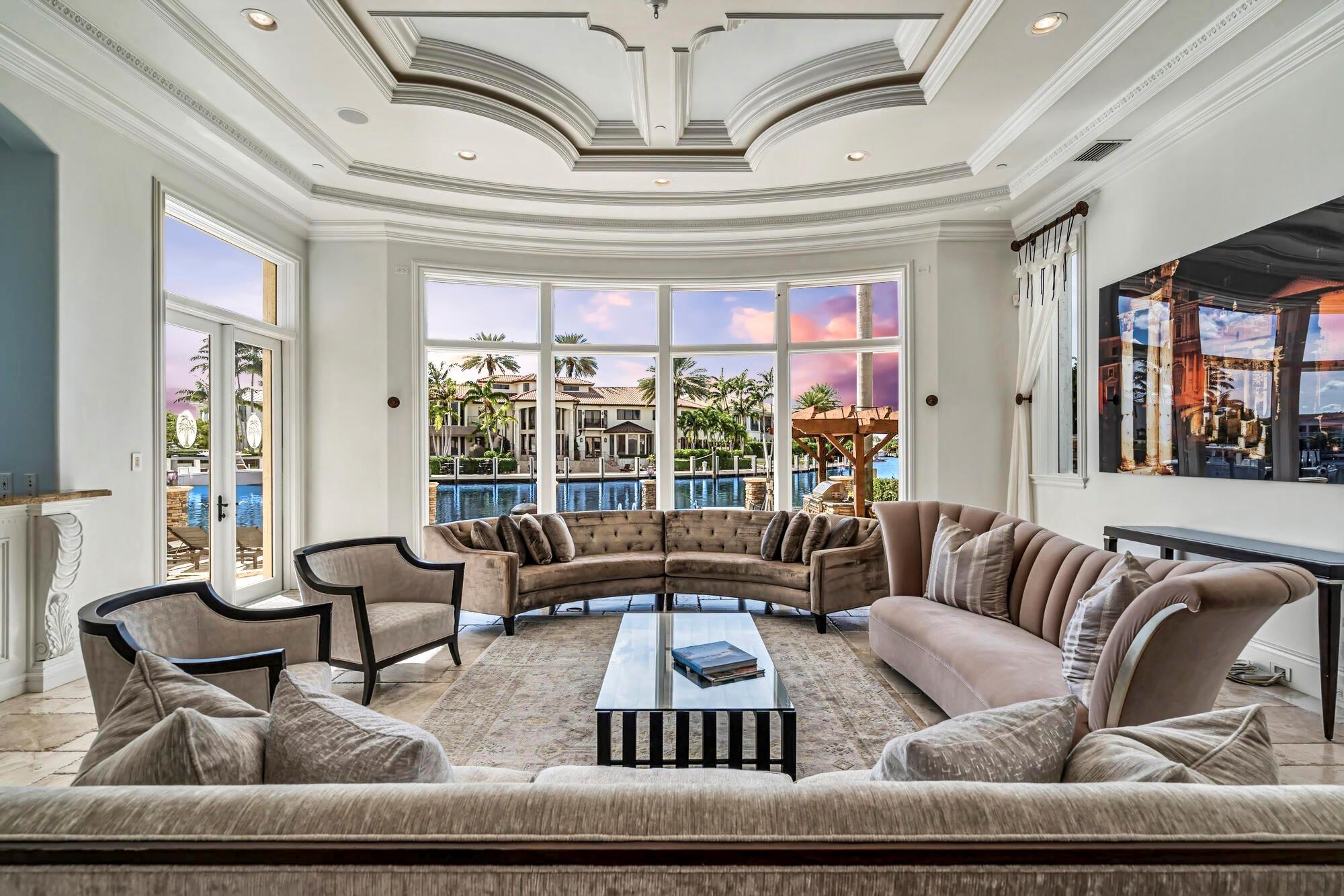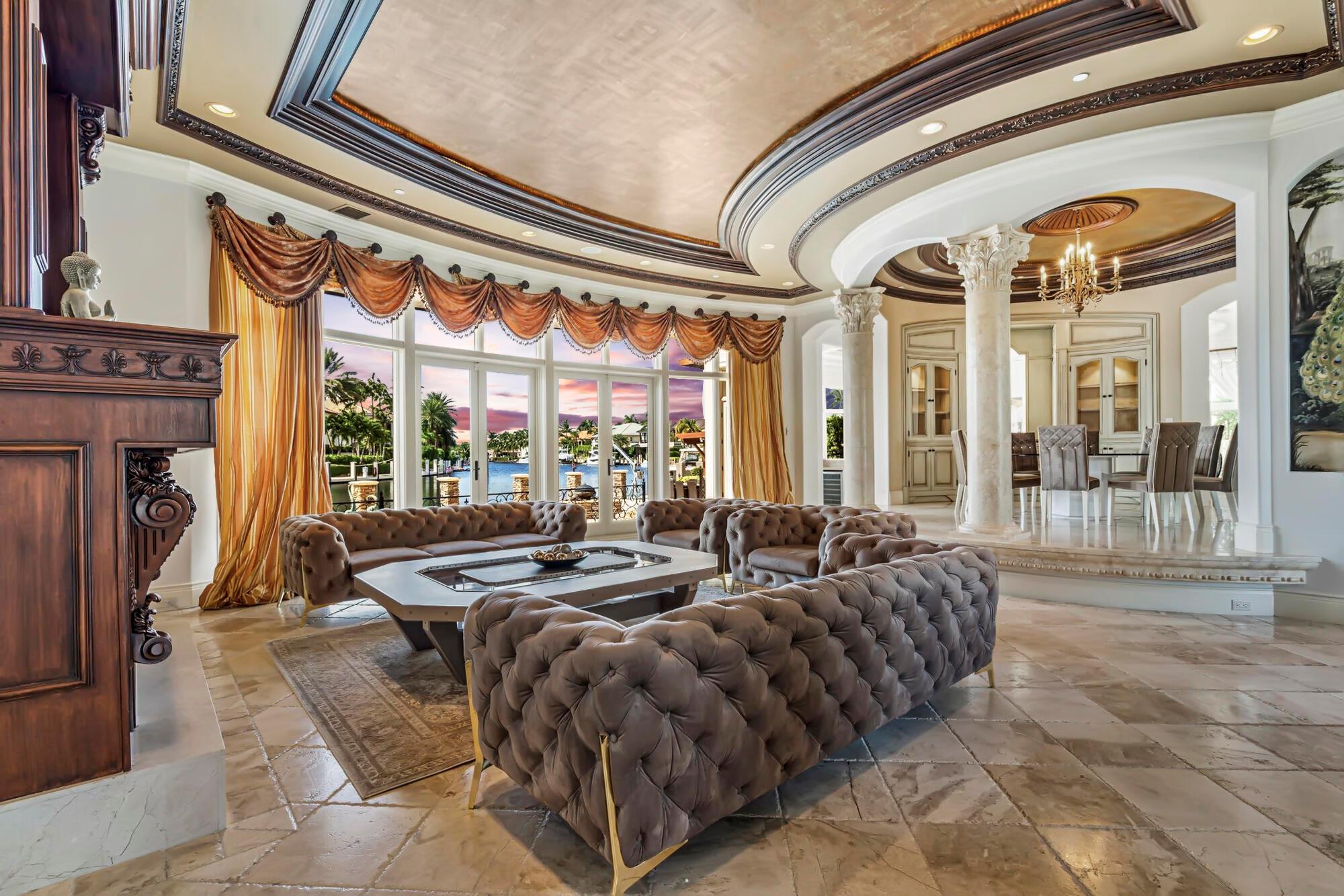 Indulge in the splendor of Casa Del Turo, an opulent waterfront estate nestled in the prestigious enclave of Lighthouse Point. This Euro-inspired masterpiece offers an expansive 100+ feet of dockage, granting swift access to the ocean’s allure within minutes.Elevating luxury living to new heights, this grand Mediterranean villa spans three regal stories, showcasing a symphony of sophistication. With 5 bedrooms, 6 full bathrooms, and 2 powder rooms, every inch of this residence exudes refinement. Delight in entertainment extravagance with a home theater, a wine cellar, a sauna, and an elevator that effortlessly transports you through this palatial abode.A gas fireplace sets a captivating ambiance, while a world-class billiard room beckons for leisurely evenings, seamlessly accompanie
