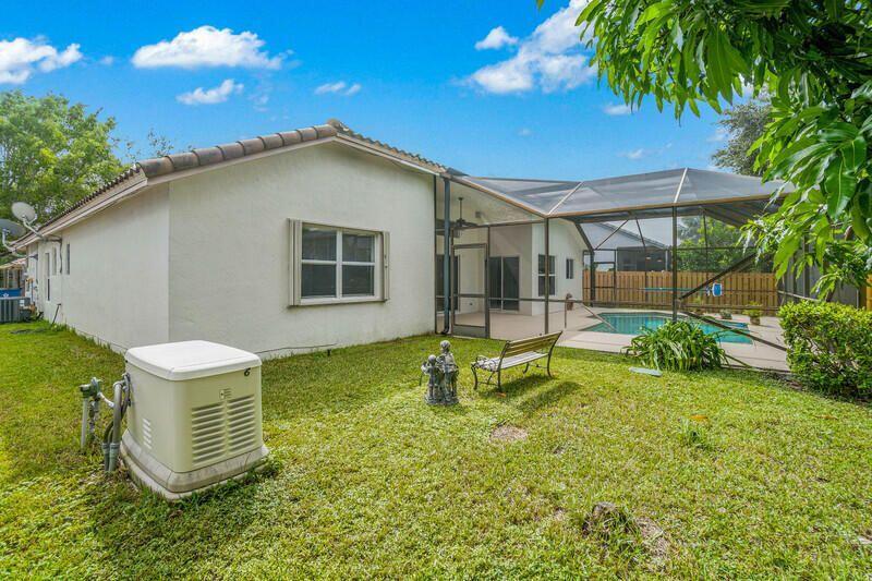 Welcome home….5 bedroom, 3.5 bath single family pool home in the beautiful community, Estates of Lyons Gate. This lovely home with great curb appeal features neutral colors throughout, new washer/dryer, a 2010 concrete tile roof, 2022 a/c, partial accordion shutter hurricane protection, a screened in patio with private pool and a separate side yard with fruit trees and a full house underground home generator. Low $65.00 per month HOA and fabulous community located near shopping, restaurants, and great schools, Please note that the garage was partially converted into the fifth bedroom and full bath (all was fully permitted). Garage has ample storage space.