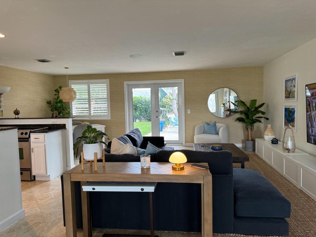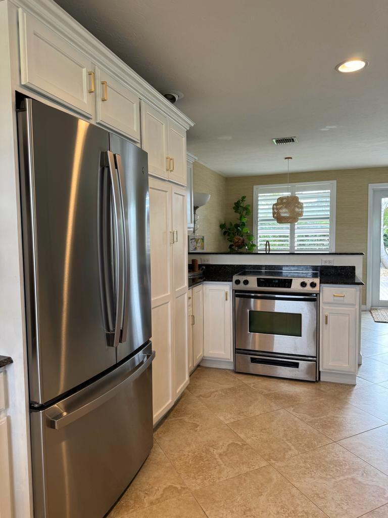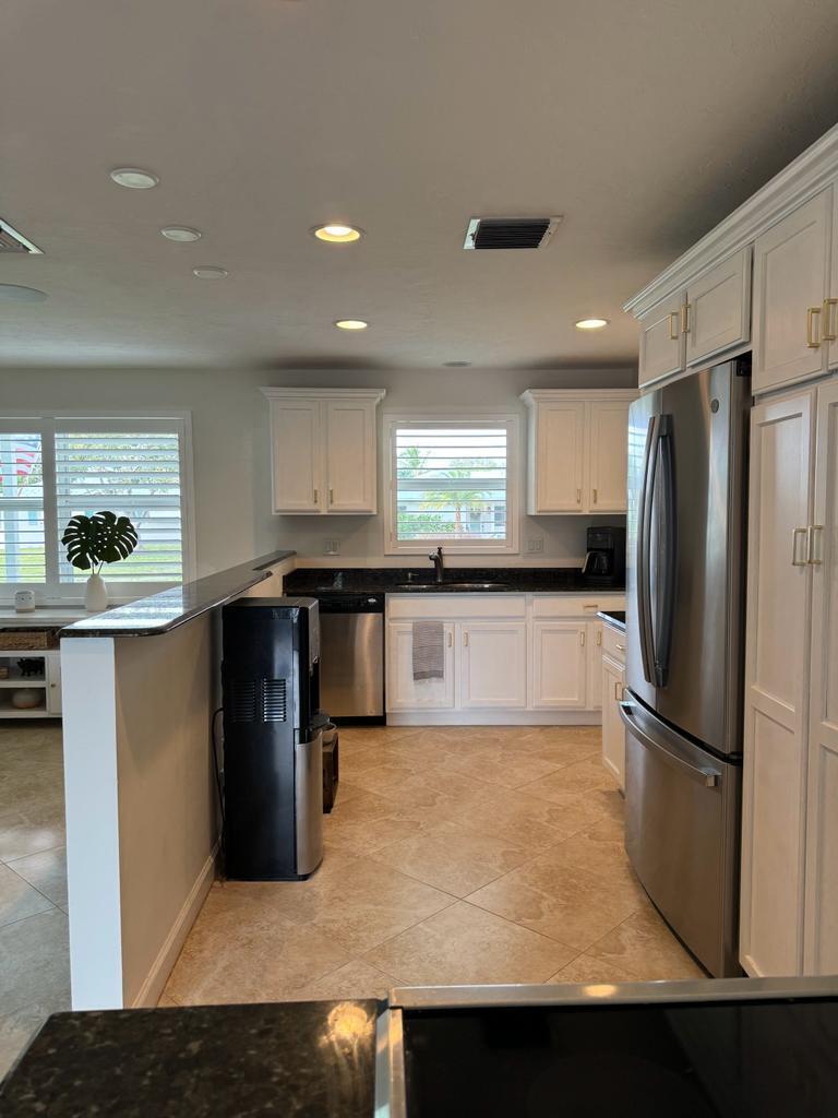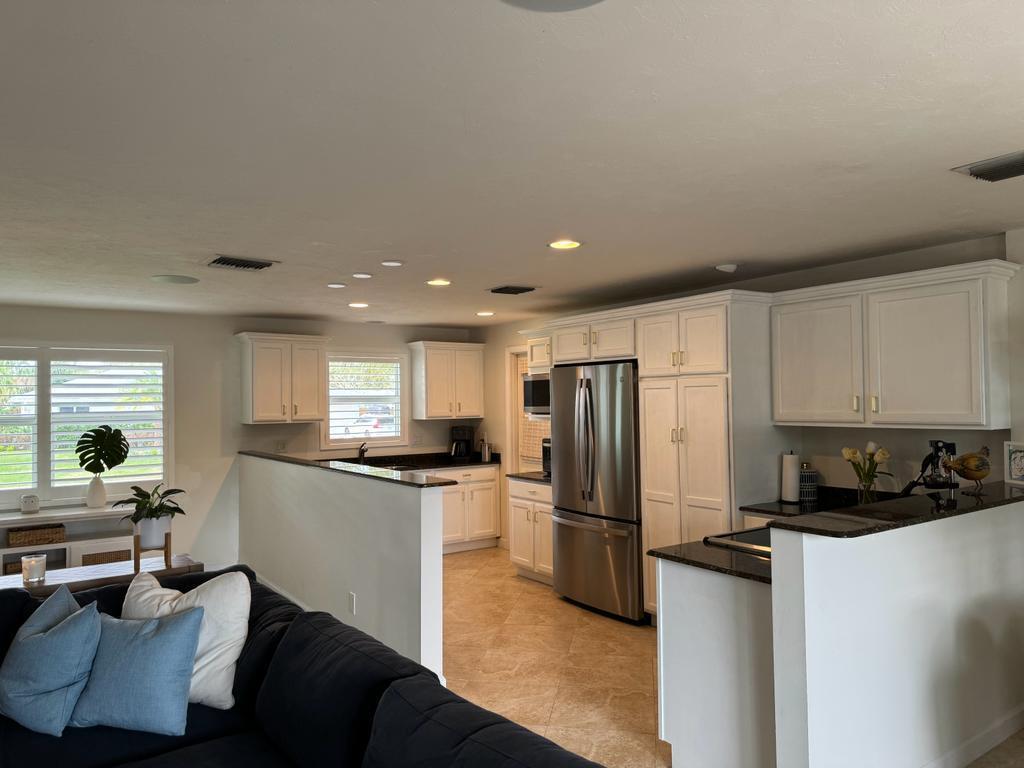 Spacious 2 bedrooms and 2 bathrooms CBS single family home features a new metal roof, installed June 2022, impact windows, newer central air conditioning and water heater. Ceramic tile throughout and vinyl plank flooring in the bedrooms. Granite countertops and stainless-steel appliances. Impact French doors to the backyard. Wired for speakers inside and out. Tropical backyard with room for a pool and large 16 x 16 covered patio. One car garage. Large laundry room. Boat storage on the side of the home is a huge plus. No homeowner’s association. Hot tub included. Minutes to beaches, restaurants and all that Tequesta and Jupiter have to offer.