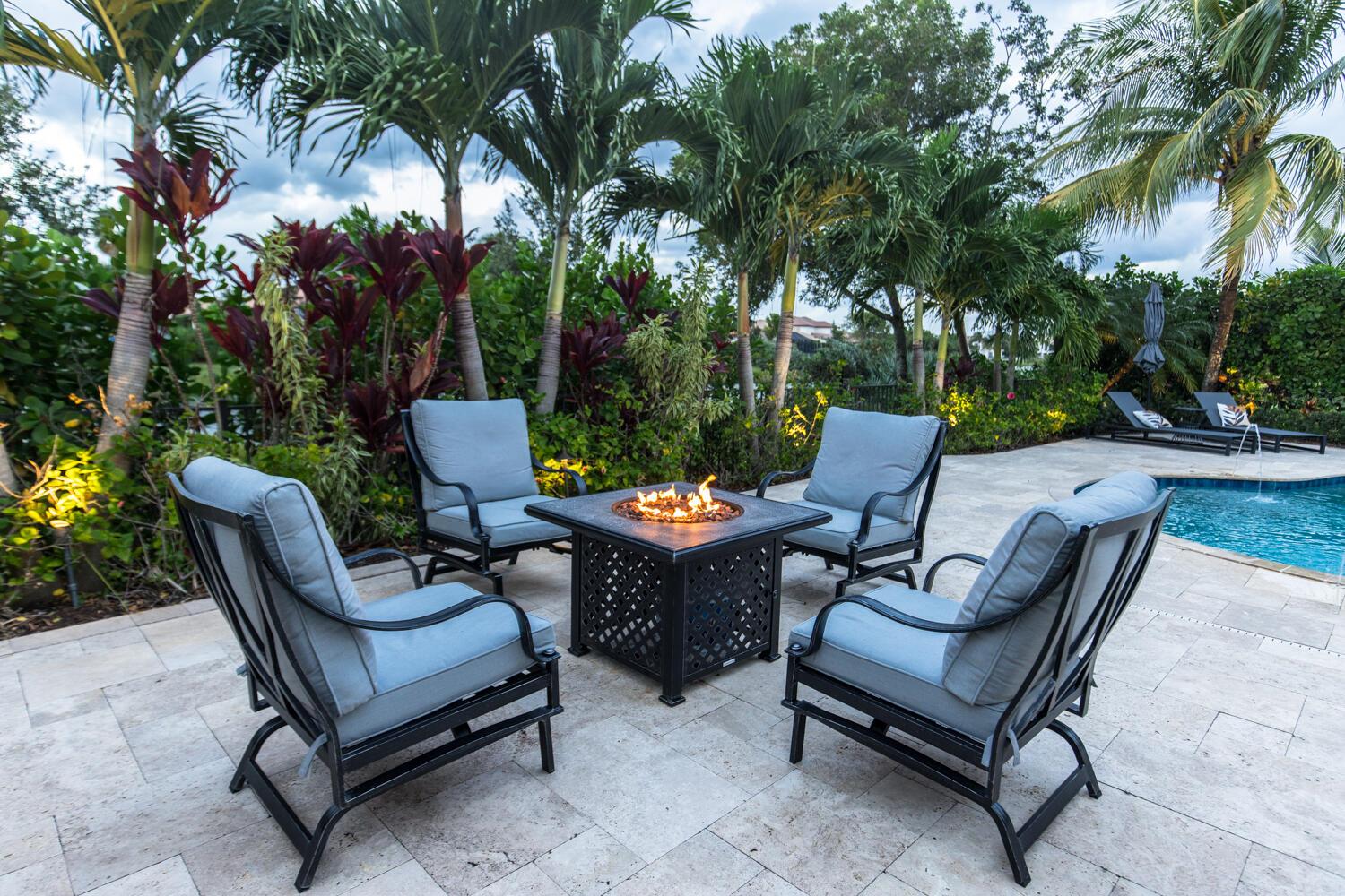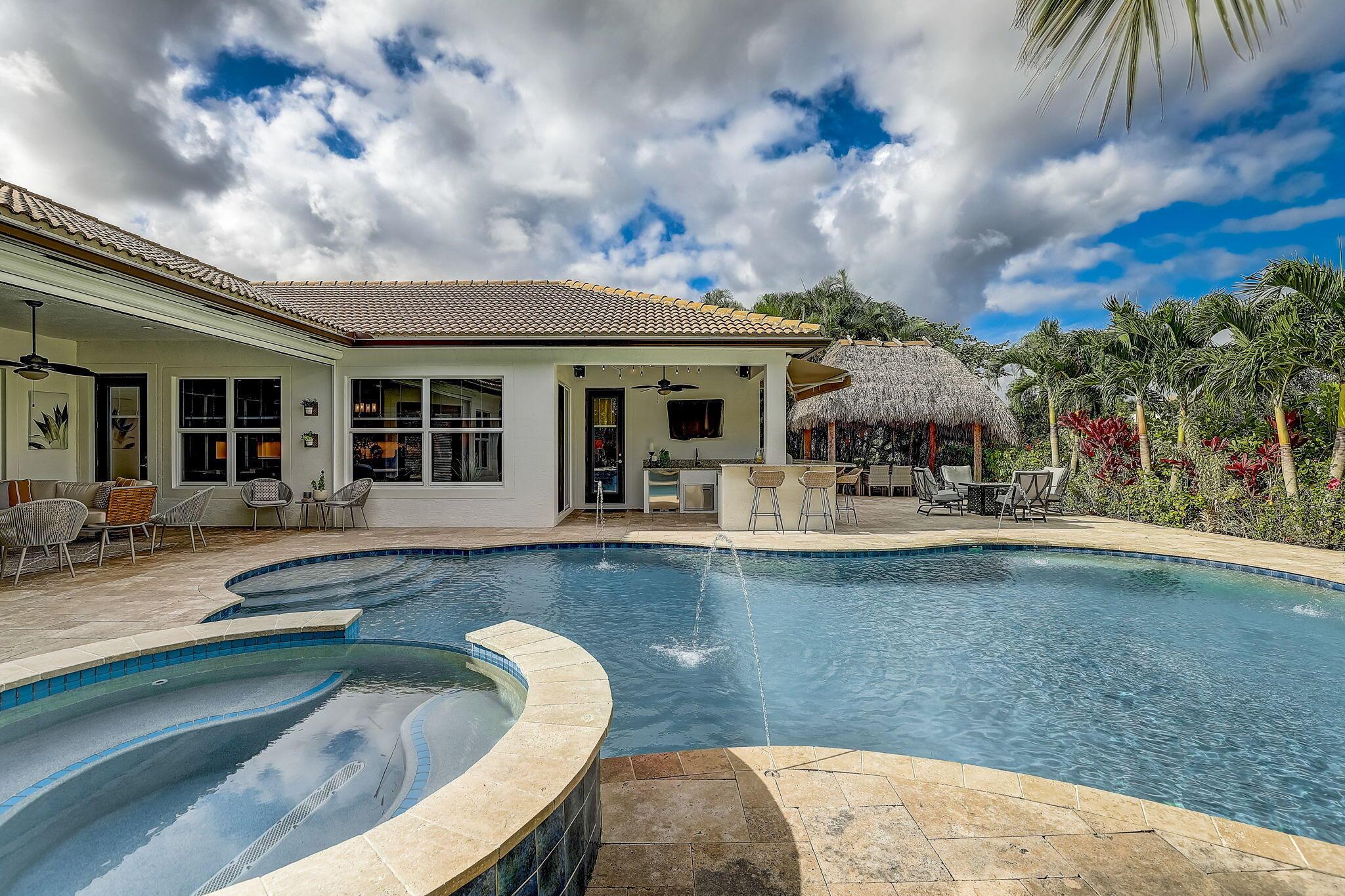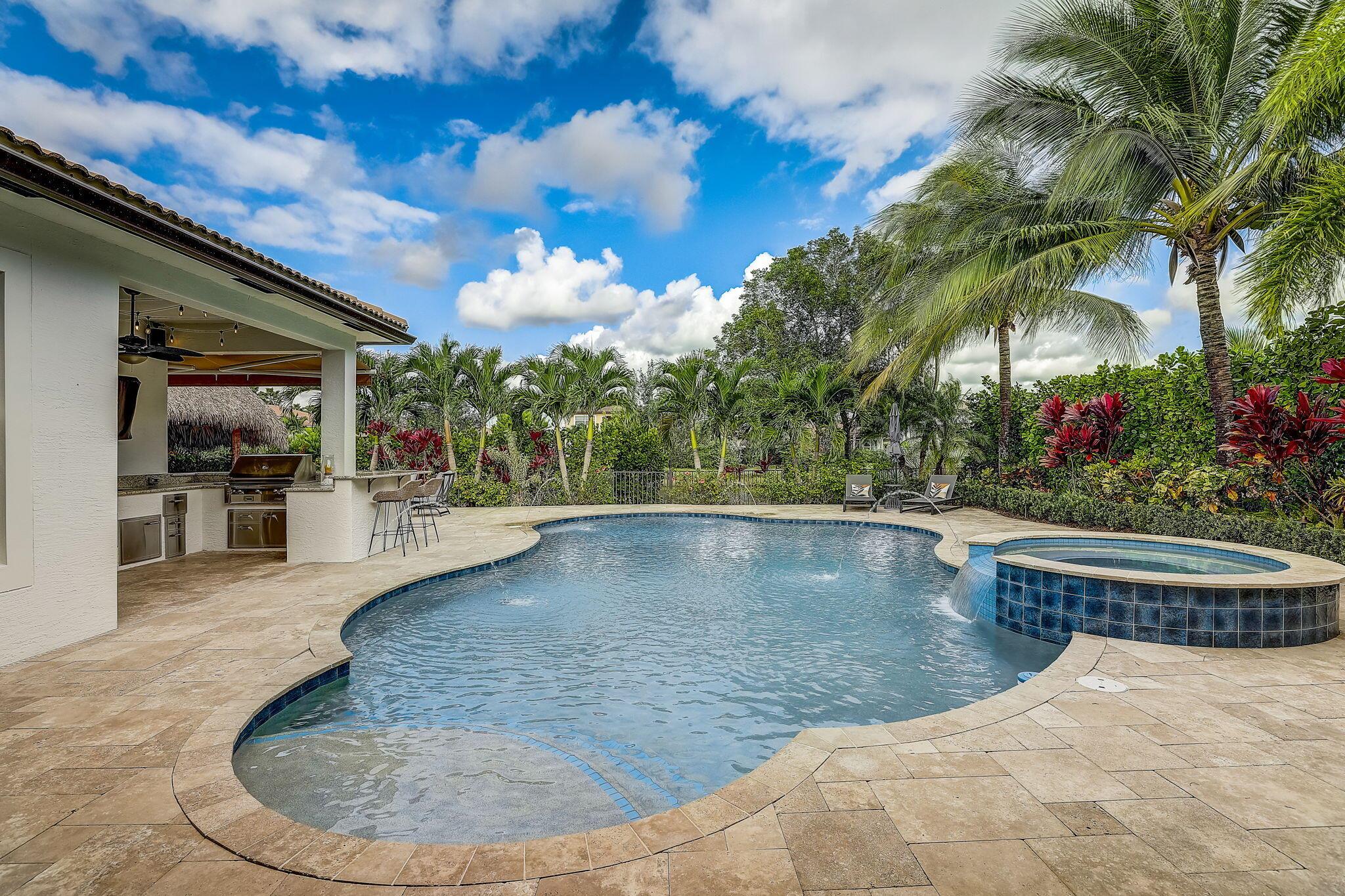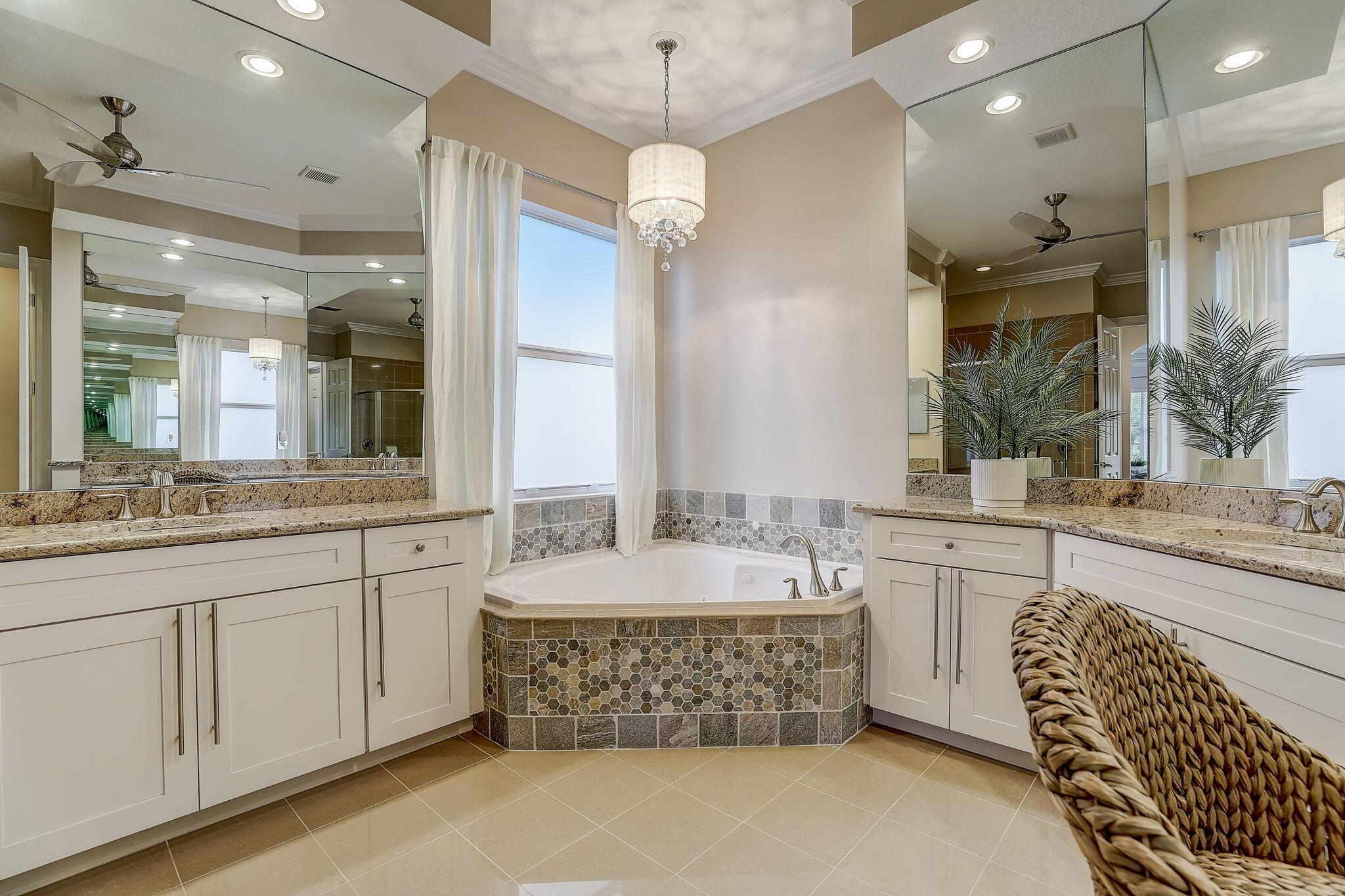 Stunningly elegant contemporary design exudes throughout this 5-bedroom 4-bath lakefront home situated on a .30-acre lot in the gated community of Rialto. Glistening 24-inch porcelain tile flooring in the living areas and wood floors in BRs complimented by crown molding and custom draperies and lighting throughout the living areas. A chef’s dream open kitchen featuring shaker cabinetry, wrap around quartz countertops, center island, and newer Wolf induction cooktop with custom vented hood, SS appliances & double wall ovens overlooking the great room. Hardwood flooring & En-suite bathrooms in 3 of the 5 bedrooms. Luxurious oversized Master bedroom features coffered ceilings 2 walk-in closets with double French doors offering direct access to the lanai & the tranquil spa/pool area.