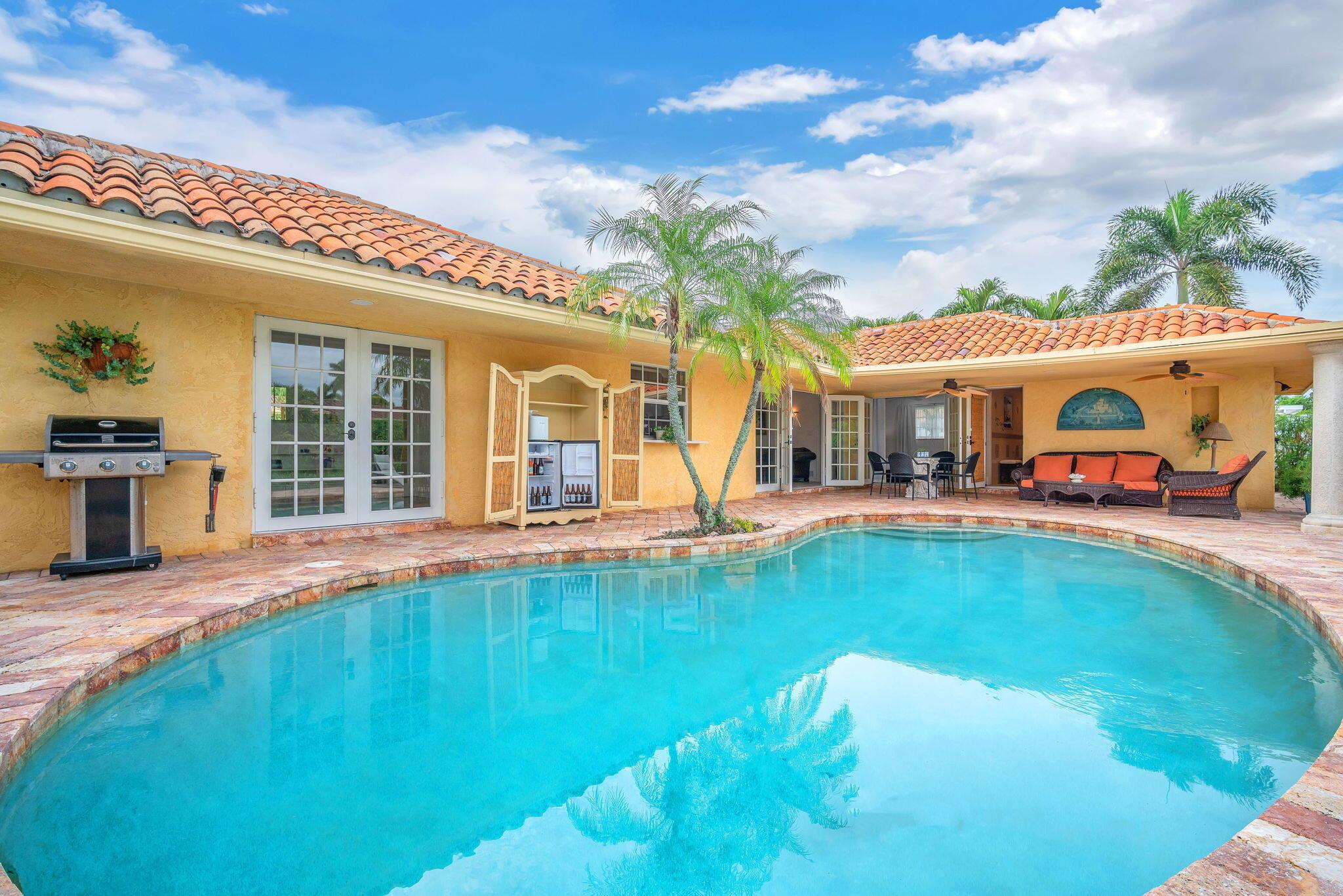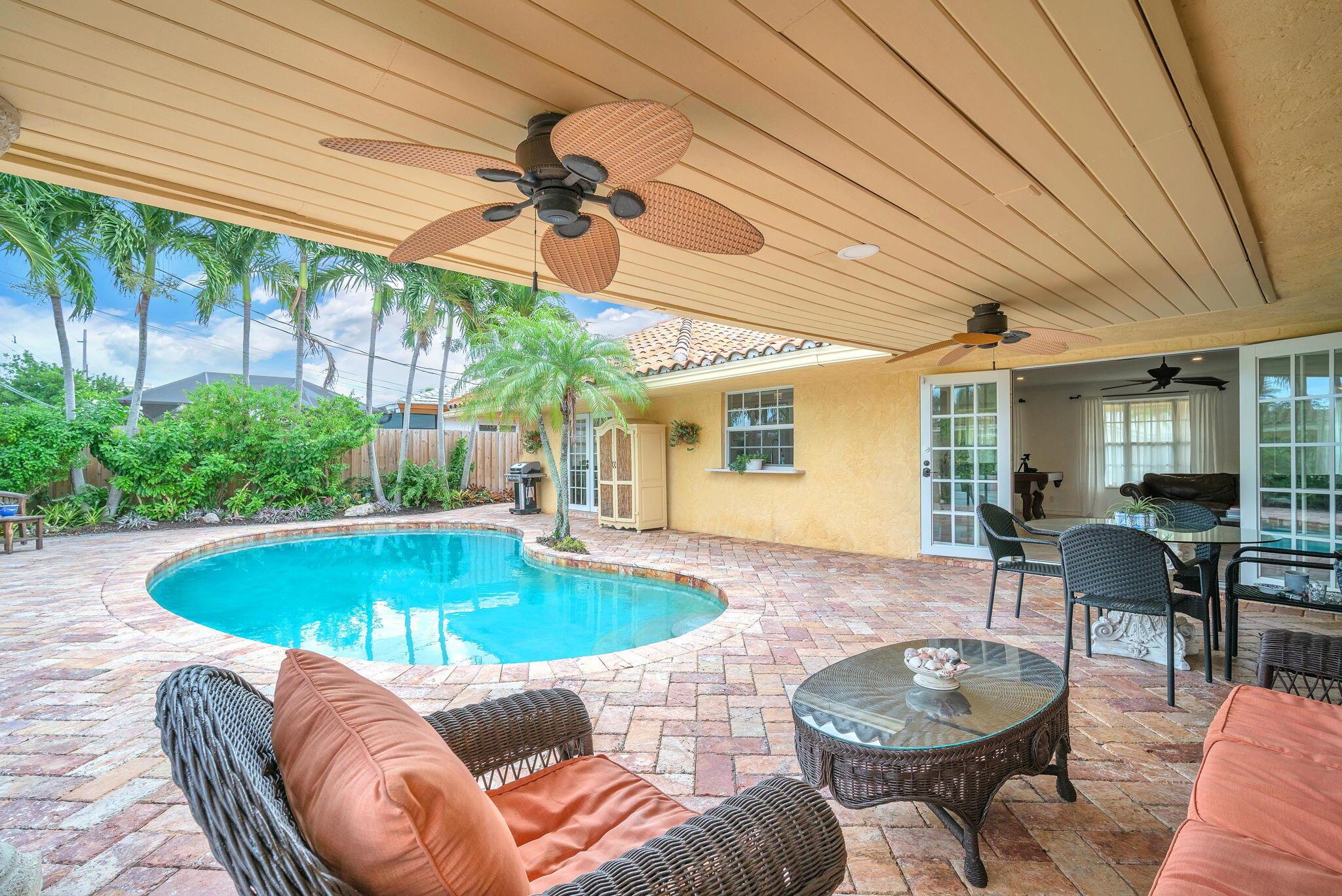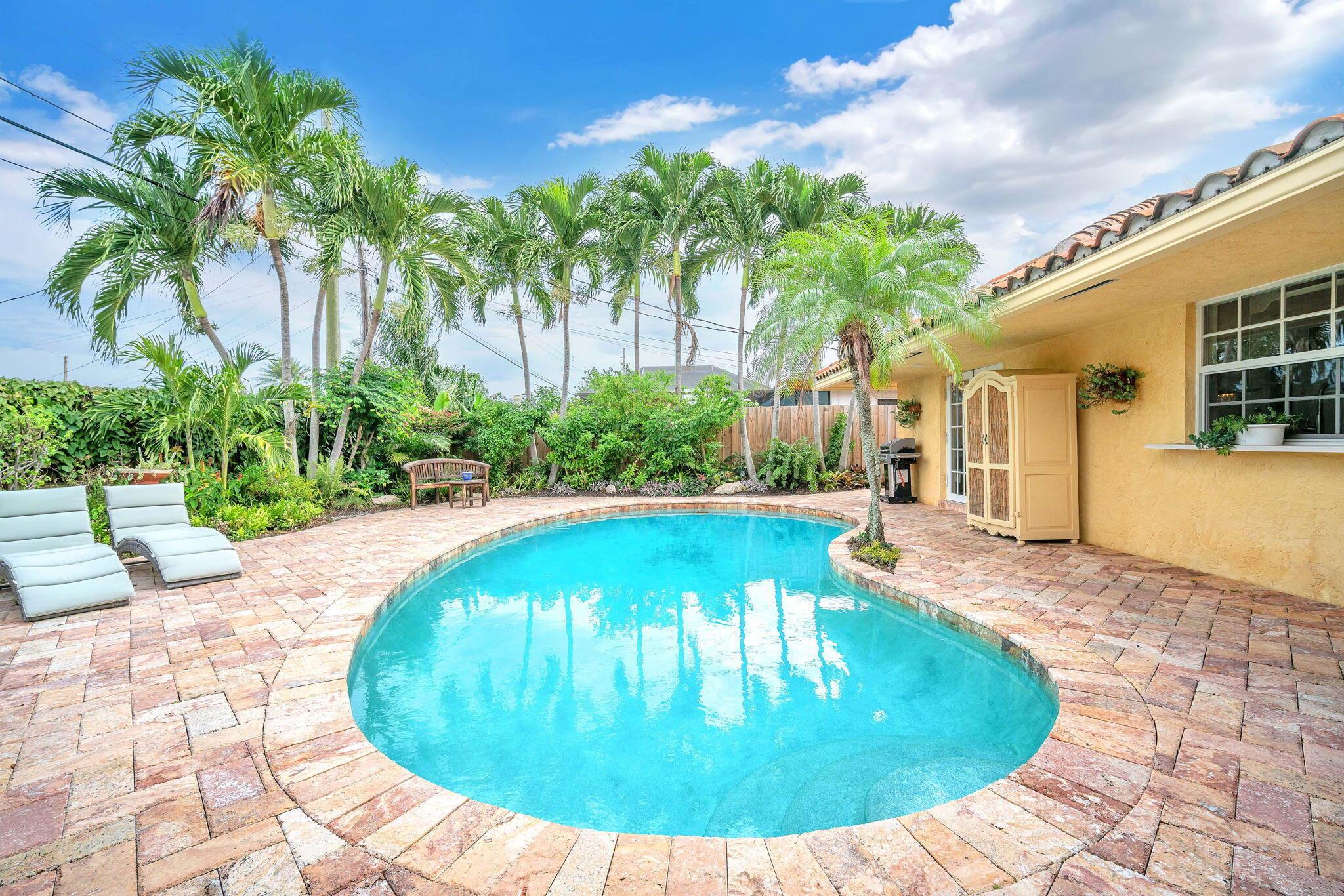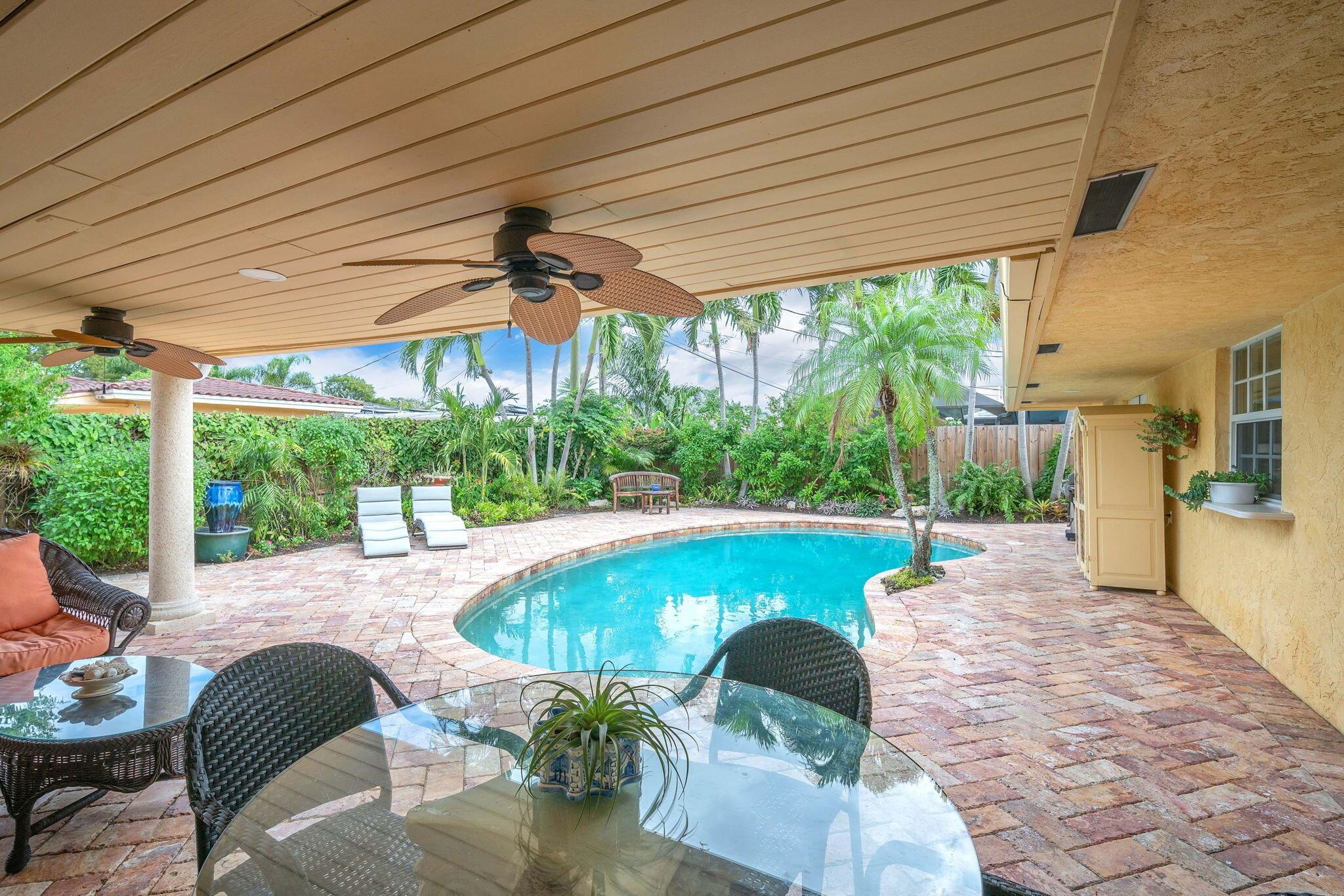 Motivated Seller! Welcome to your tropical oasis in Imperial Point – just 2 MILES TO THE BEACH! This captivating 3-bedroom, 2-bathroom haven boasts a lifestyle of luxury and leisure, with no pet, rental, or Airbnb restrictions.Your retreat begins with a stunning 2-car garage featuring a custom California closet and sleek slate tile floor. Step into your private paradise, where a saltwater heated pool awaits, surrounded by a marble deck nestled within a lush tropical garden – all secured for your utmost privacy. An outdoor shower and dining area beckon for unforgettable entertainment under the sun.Inside, bask in the glow of natural light streaming through hurricane impact French doors and windows, seamlessly connecting the indoors to the outdoors. The kitchen, dining area, living