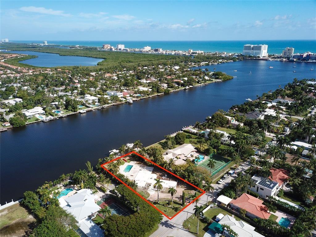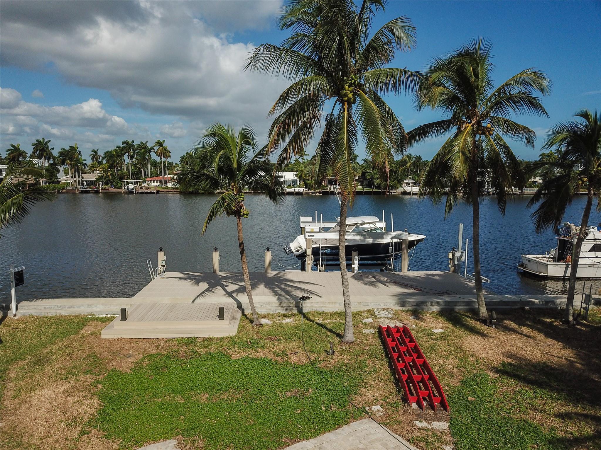 Discover the perfect canvas for your water front dreams. This buildable lot with plans included boasts 100 ft of intracoastal frontage, a refreshing breeze, and panoramic views. The new seawall exceeds NAVD88 requirements, ensuring durability and resilience. The brand-new state of the art dock is complete with a new 33,000lbs boat lift as well as jet ski lift and offers seamless access to the ocean. Here you will also find modern convenience with digital controls for Wi-Fi and lights, allowing you to customize your waterfront experience. Enhance your evenings with enchanting underwater lights. With electricity and water already extended to the dock, imagine the ease of coastal living. This corner lot, spanning 233 ft deep provides a unique opportunity to craft your coastal masterpiece.