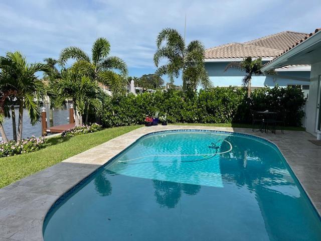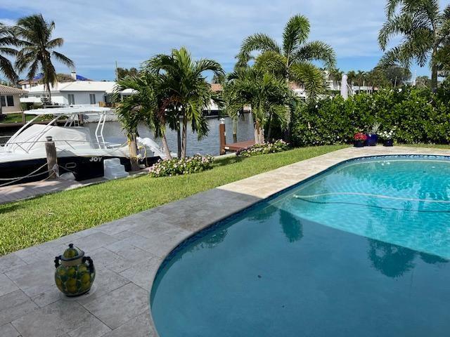 This magnificent waterfront home with No Fixed Bridges is ready for the most discerning buyer… Nestled on 85’ of waterfront, this 3 large bedroom, 3 full bathroom home has a ton of natural light, impact windows, newer roof, custom lighting, quartz kitchen counter, heated pool, epoxy garage floor with custom built-ins and much more! Fantastic covered patio by the pool to enjoy the great outdoors. This home is located on a very desirable street and extremely close to the Yacht Club.