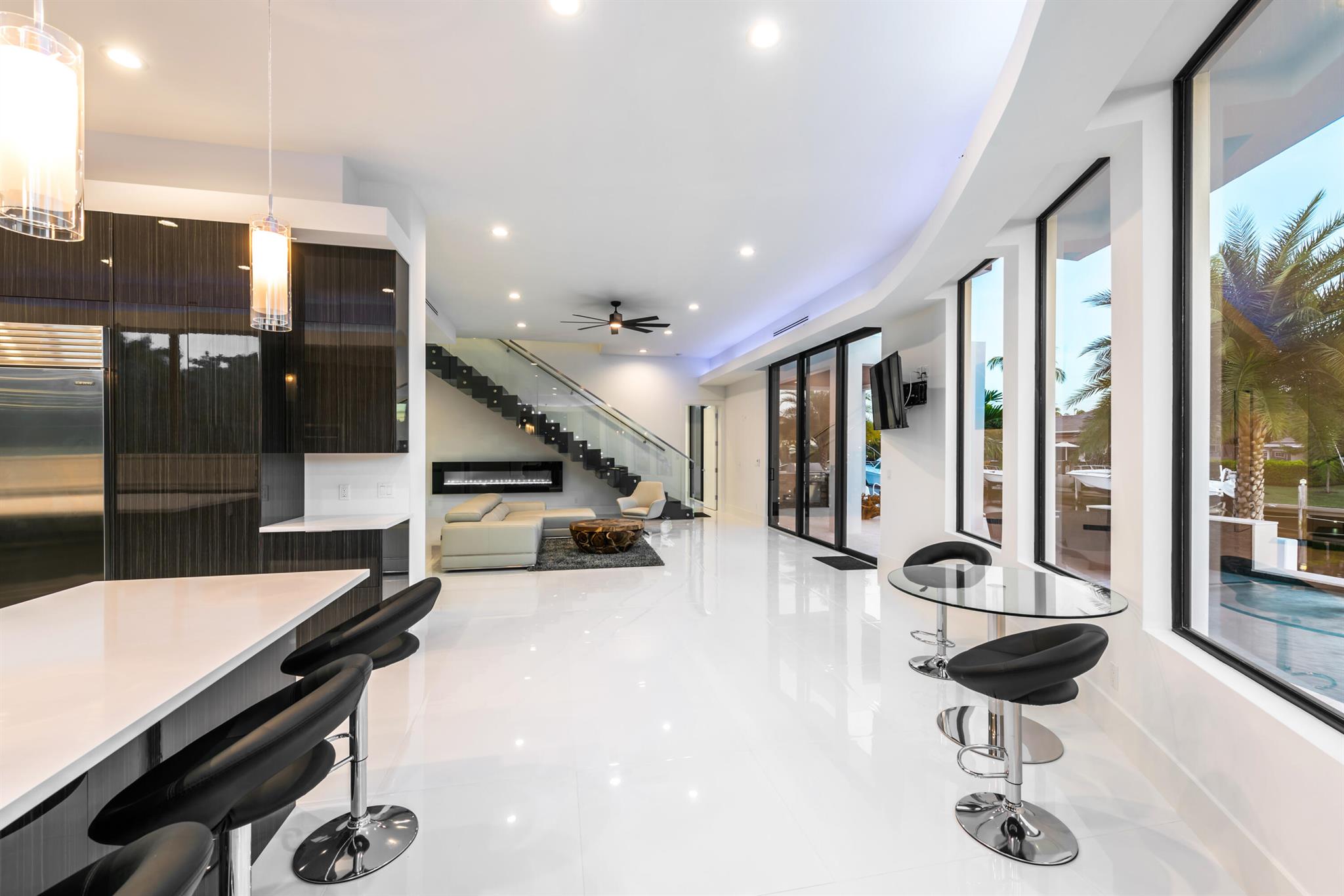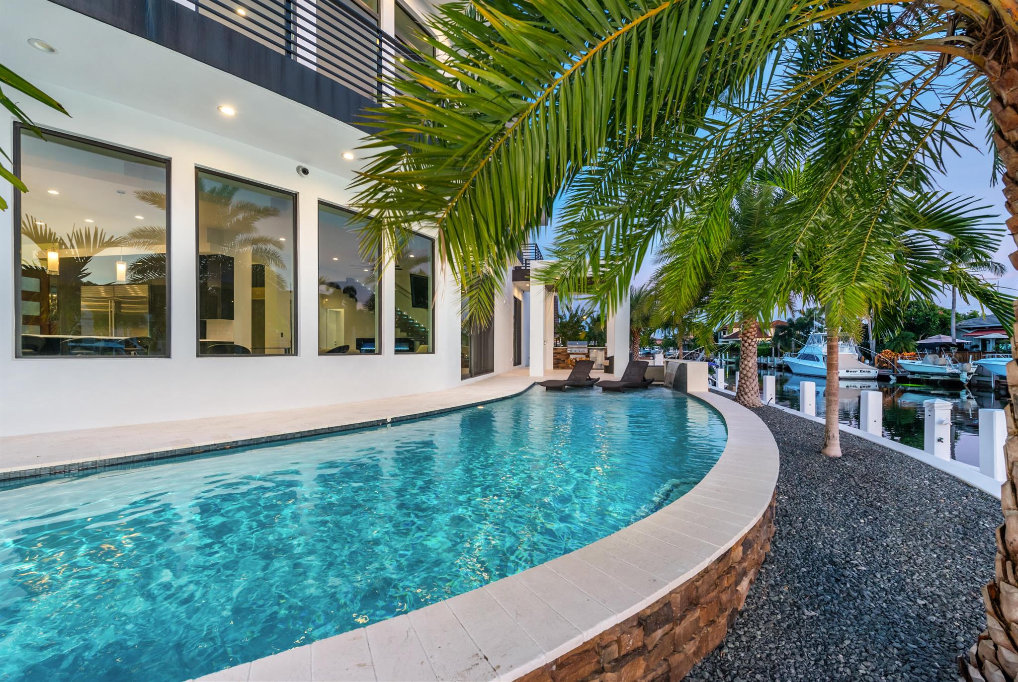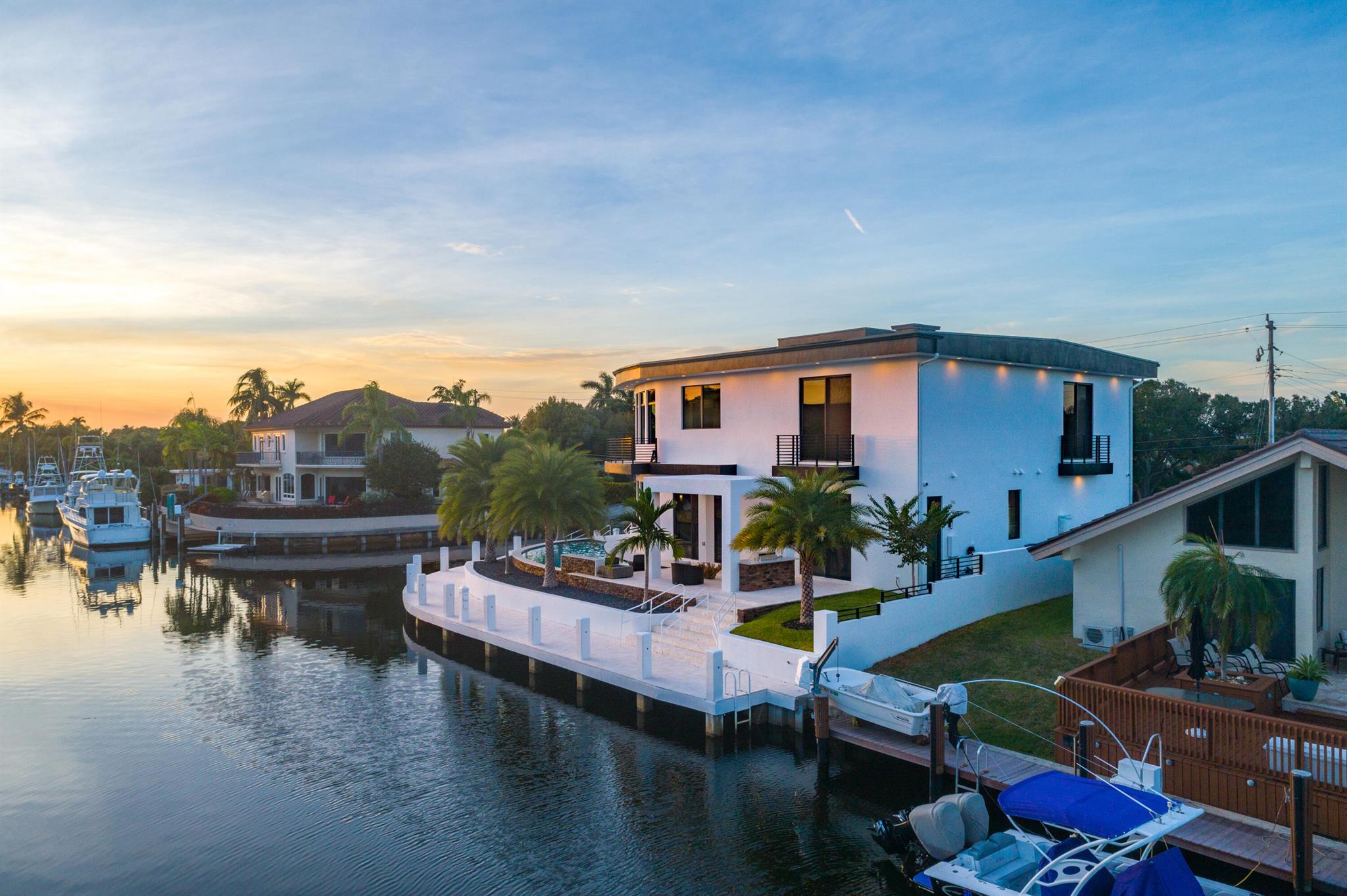 Nestled within the coveted boating haven of Lighthouse Point, this luxurious waterfront oasis embodies the epitome of South Florida living. Boasting an impressive 195 feet of prime waterfrontage and a fully equipped dock mere minutes from the intracoastal, this property is a boater’s dream. This expansive 5-bed, 6.5-bath, 5000+ sqft smart home showcases a stunning contemporary layout, generously sized rooms, soaring ceiling heights, and meticulous detailing throughout. Radiant flooring, soothing color palettes, and impeccable design render this residence a standout among the best of the best.