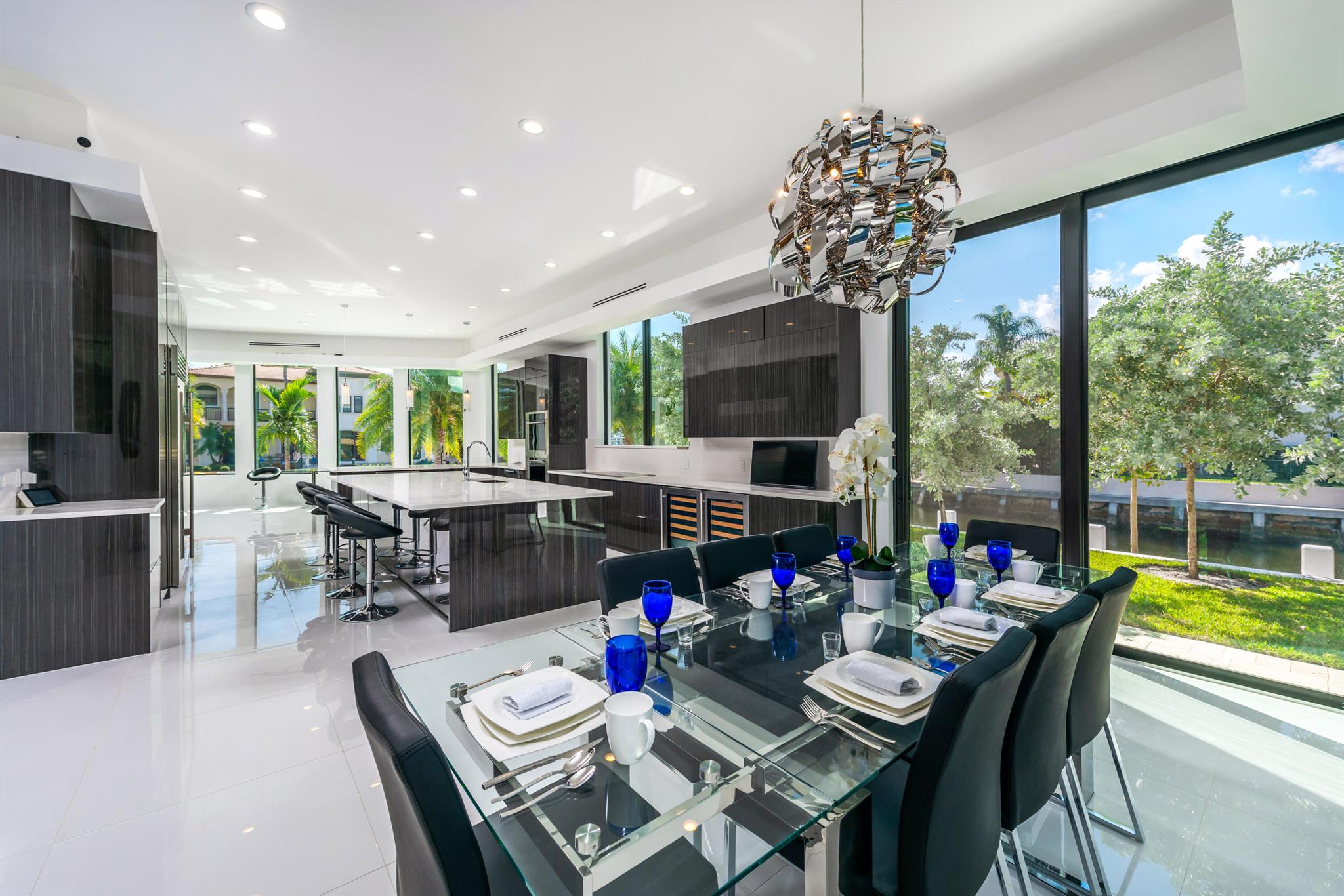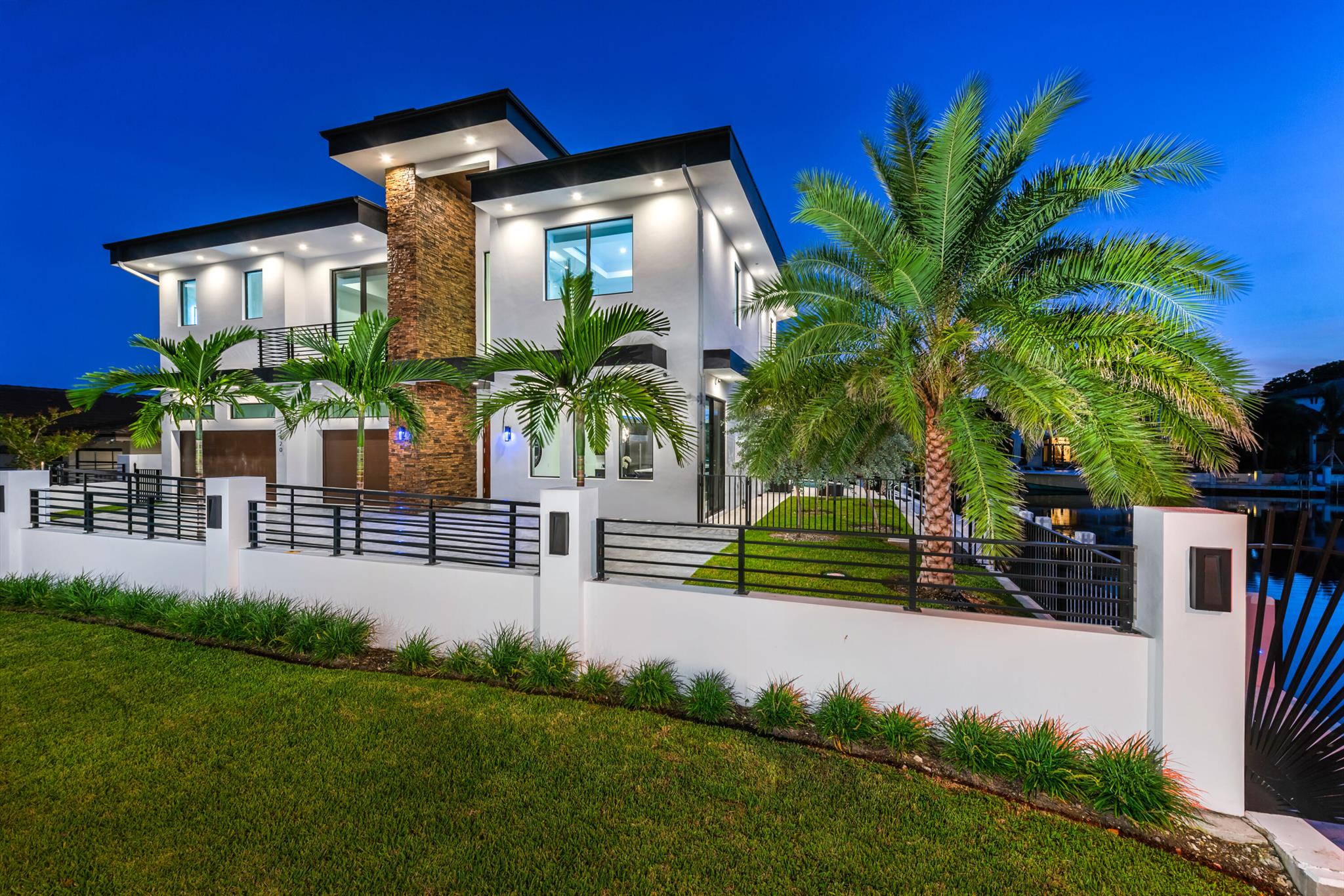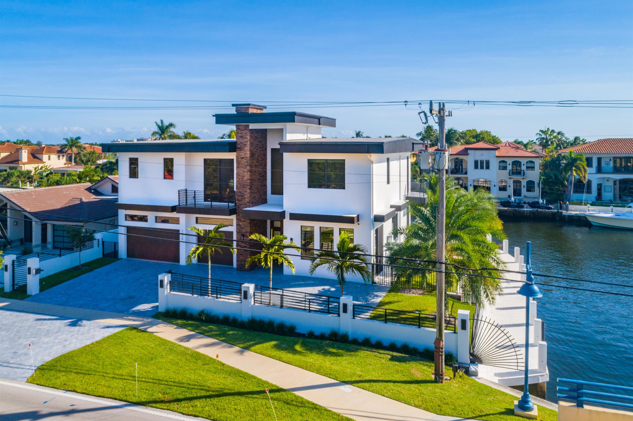 Nestled within the coveted boating haven of Lighthouse Point, this luxurious waterfront oasis embodies the epitome of South Florida living. Boasting an impressive 195 feet of prime waterfrontage and a fully equipped dock mere minutes from the intracoastal, this property is a boater’s dream. This expansive 5-bed, 6.5-bath, 5000+ sqft smart home showcases a stunning contemporary layout, generously sized rooms, soaring ceiling heights, and meticulous detailing throughout. Radiant flooring, soothing color palettes, and impeccable design render this residence a standout among the best of the best.