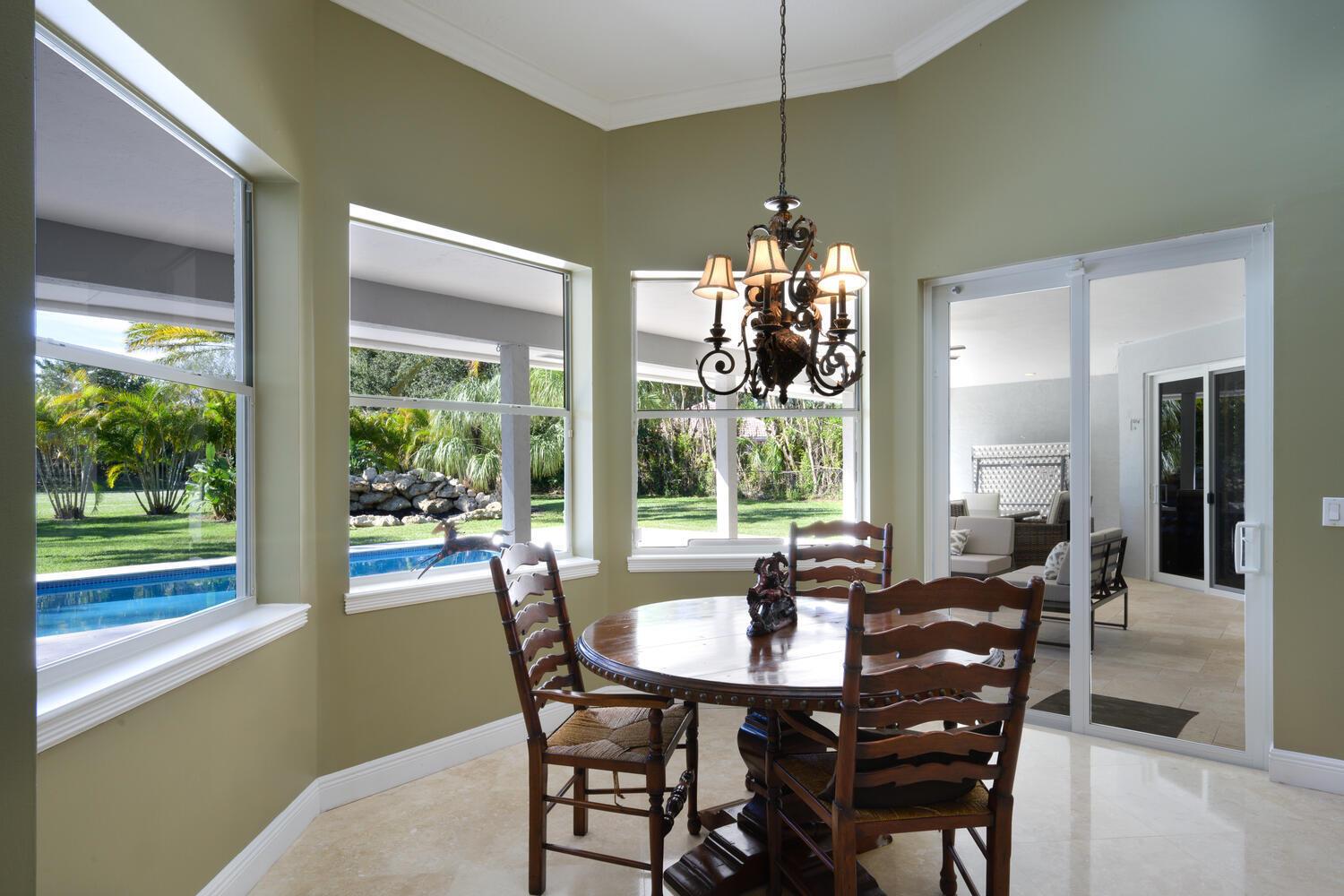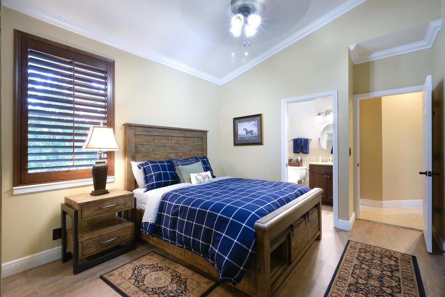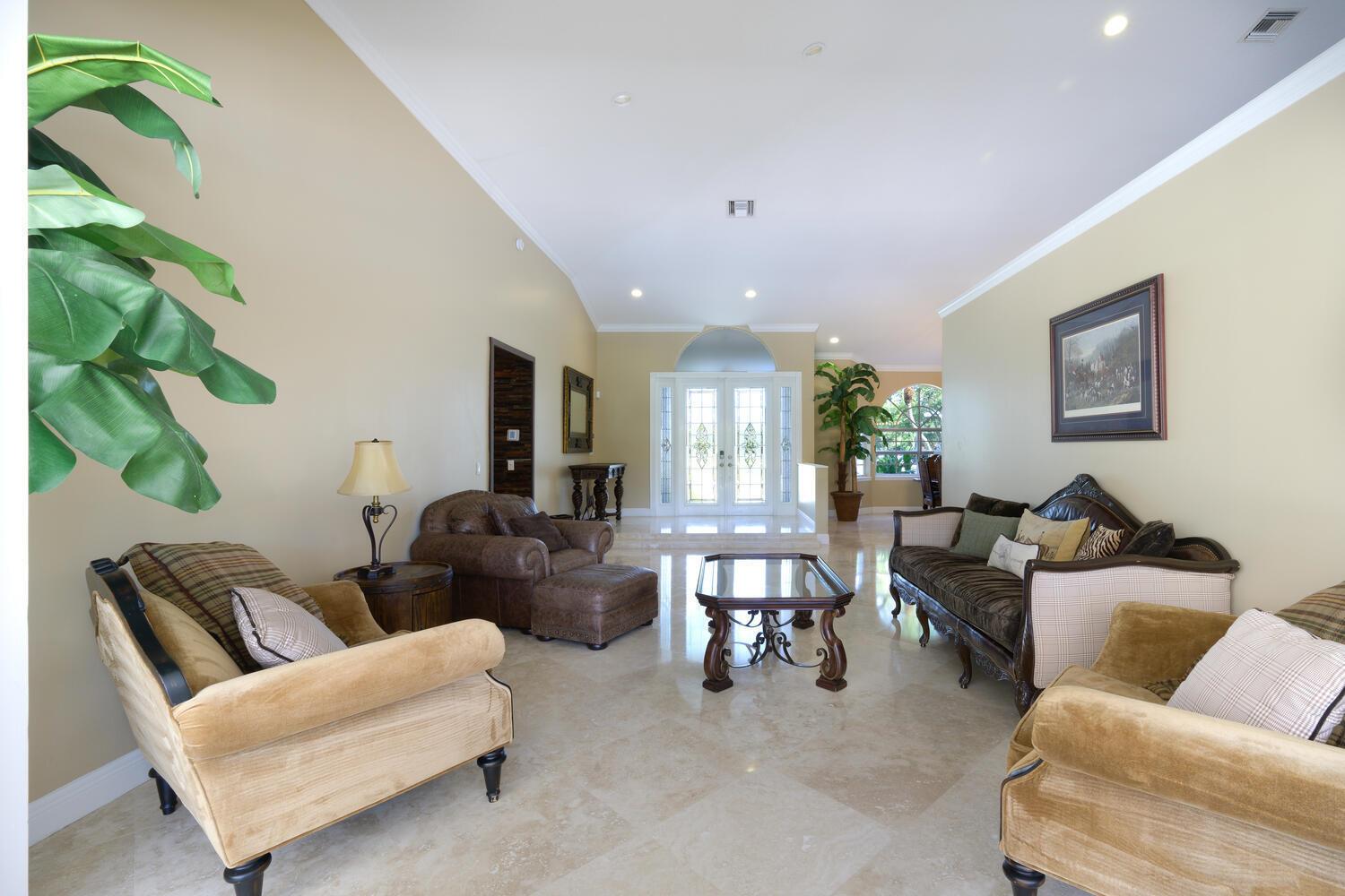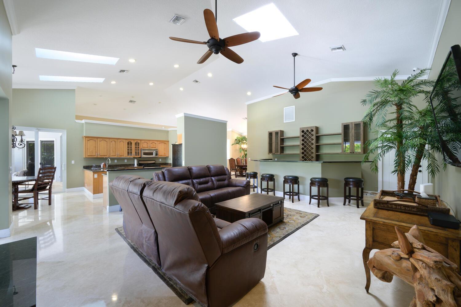 Experience luxury living in this four-bedroom, three-bath, two-car garage pool home, located in the sought after community of Steeplechase. The traditional design, CBS structure, and front East exposure provide an inviting ambiance on this expansive 1.31-acre lot. New flat concrete tile roof $76,230 with 5 year warranty, partial impact windows, and doors and captivating views of the garden, pool, and water feature. This residence boasts marble and tile flooring throughout, with the living room featuring sliders to the outside, vaulted ceiling, recessed lighting, and crown molding. The family room exudes sophistication with marble floors, vaulted ceiling, skylights, and a full bar equipped with built-in cabinets, wine cooler, sink, wine racks, and granit countertops.