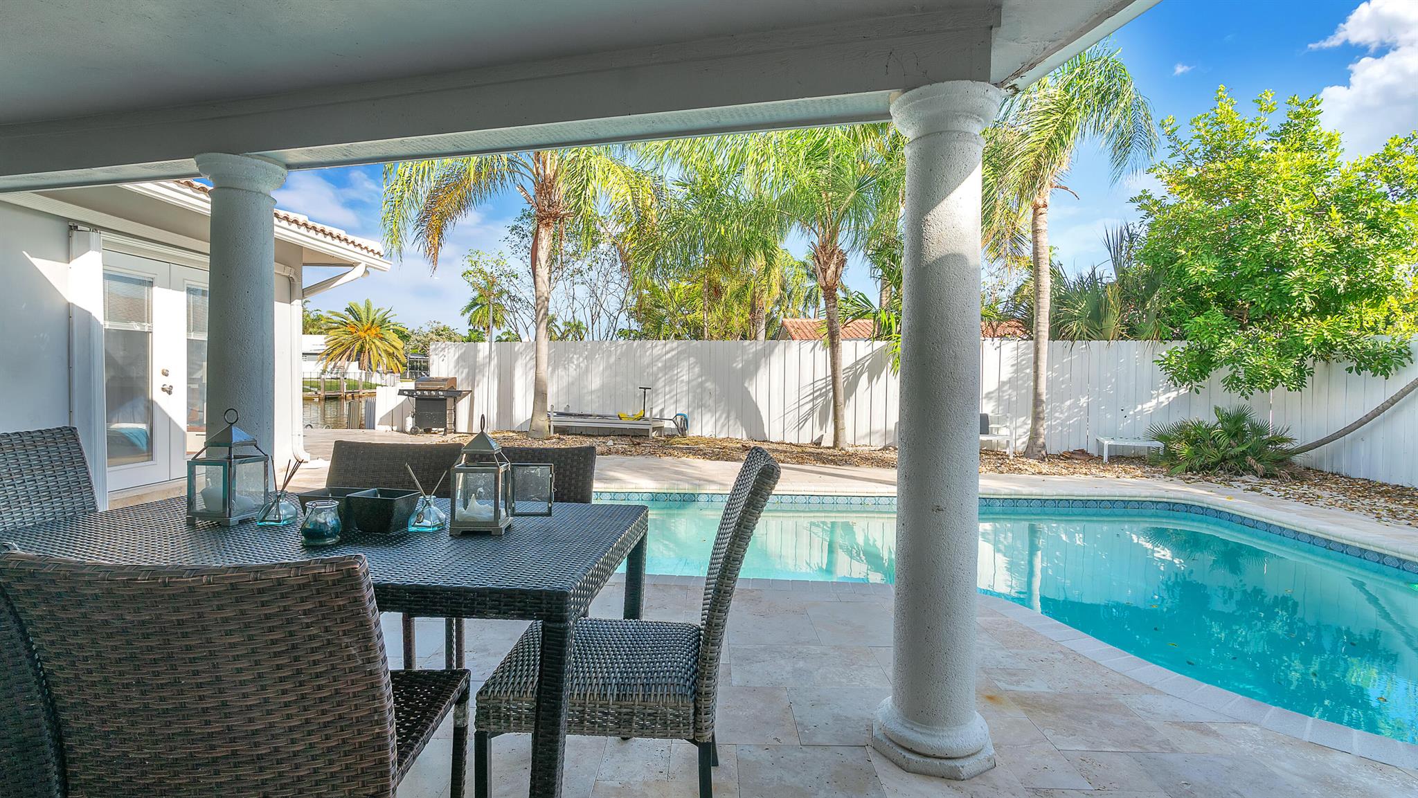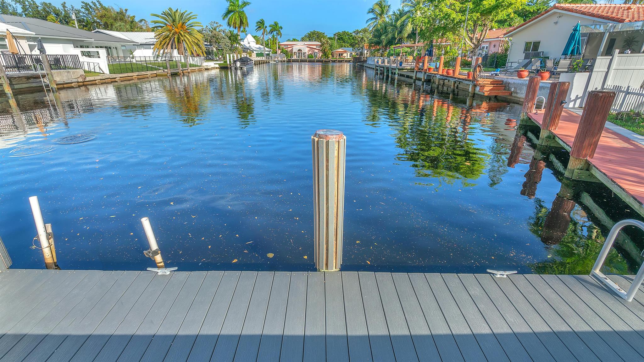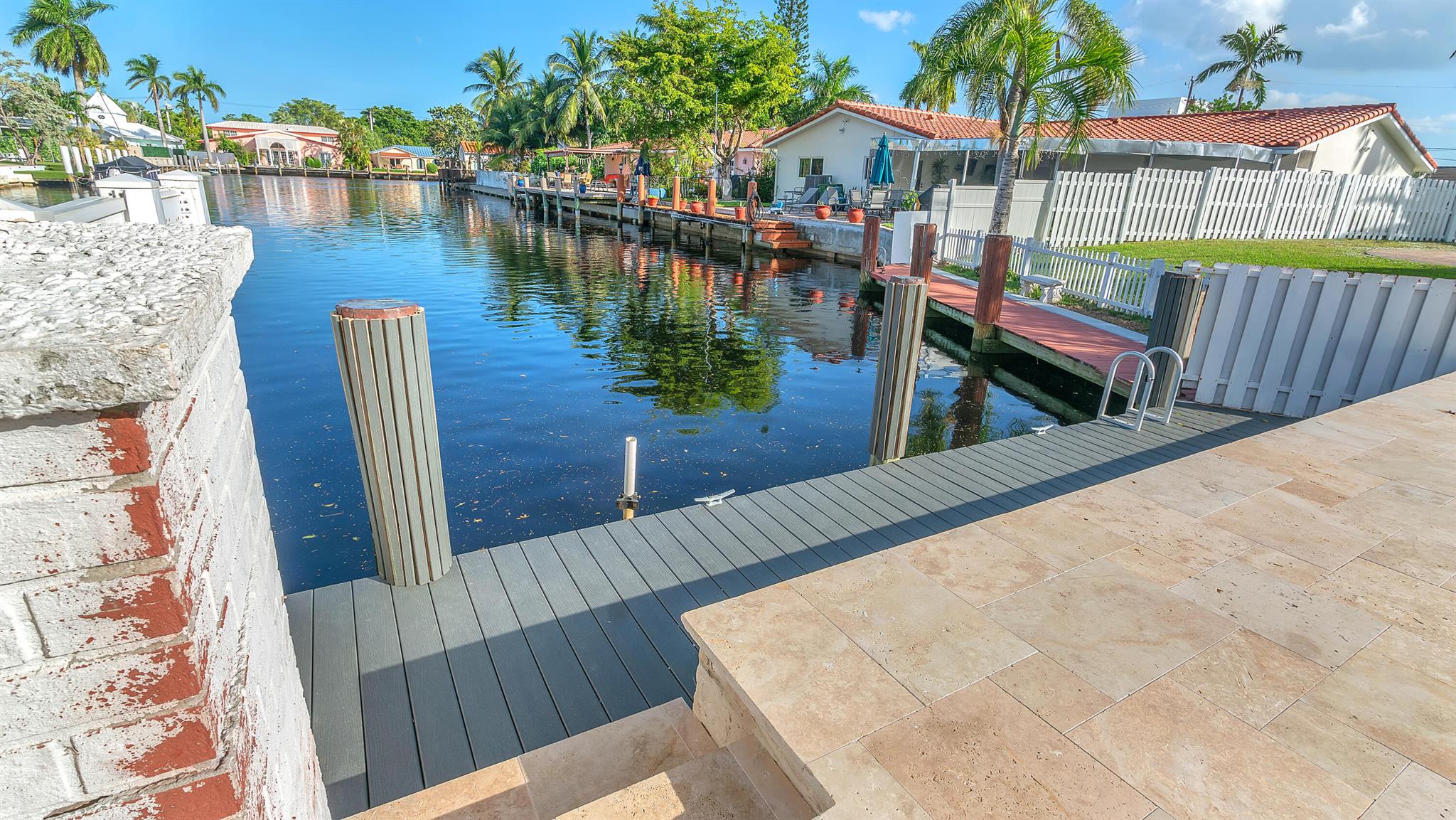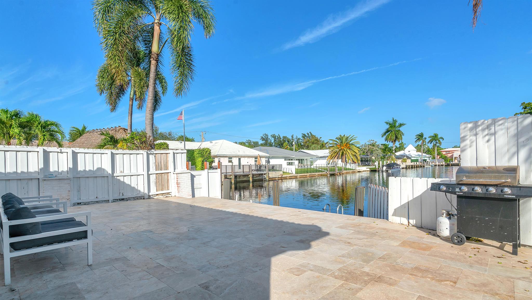 This waterfront haven boasts a new composite dock, a resuraced pool, and fresh Travertine throughout the backyard. Recently painted and sealed driveway add to its allure. It’s $360K less than any waterfront property between Bayview and Federal from Sunrise Blvd to Bay Colony Club. Step into this 4-bed, 3-bath pool home featuring split bedrooms for privacy. Its spacious common area and a formal sitting room with outdoor access ensure comfort and entertainment. The master bedroom opens to the pool, while two bedrooms share a jack & jill bathroom. The third bathroom offers outdoor access and a glass-enclosed bathtub/shower. Home furnishings are included.