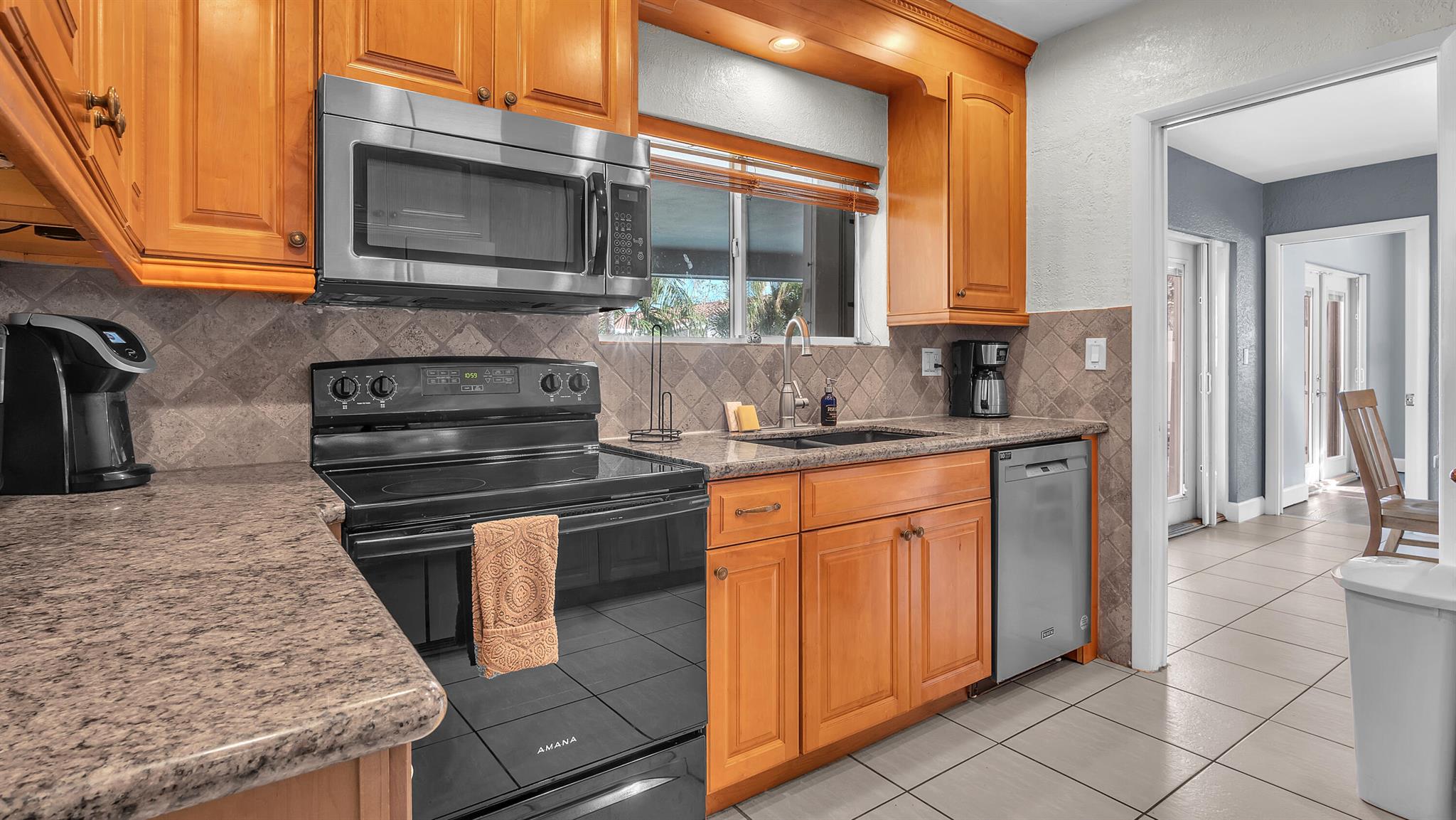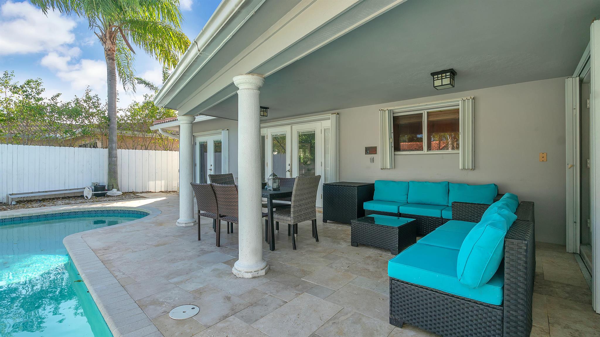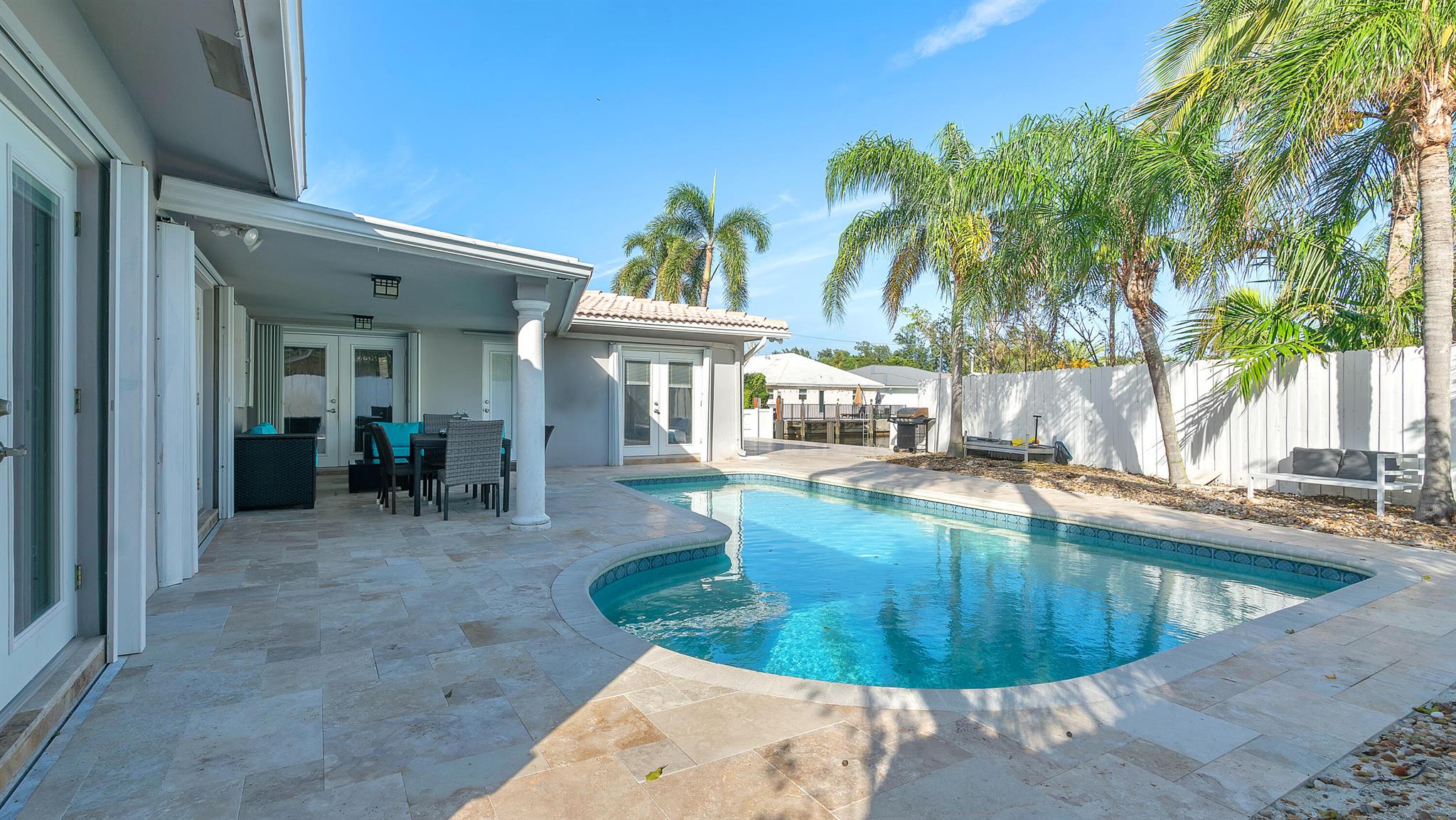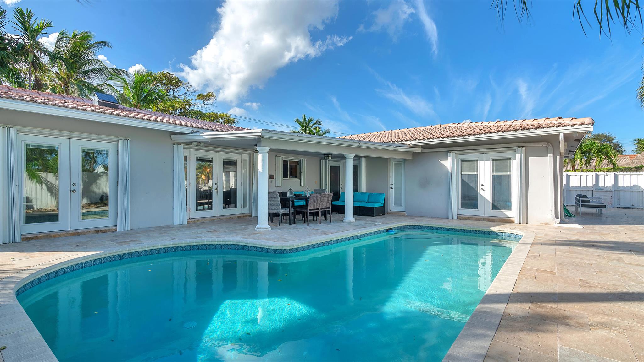 This waterfront haven boasts a new composite dock, a resuraced pool, and fresh Travertine throughout the backyard. Recently painted and sealed driveway add to its allure. It’s $360K less than any waterfront property between Bayview and Federal from Sunrise Blvd to Bay Colony Club. Step into this 4-bed, 3-bath pool home featuring split bedrooms for privacy. Its spacious common area and a formal sitting room with outdoor access ensure comfort and entertainment. The master bedroom opens to the pool, while two bedrooms share a jack & jill bathroom. The third bathroom offers outdoor access and a glass-enclosed bathtub/shower. Home furnishings are included.