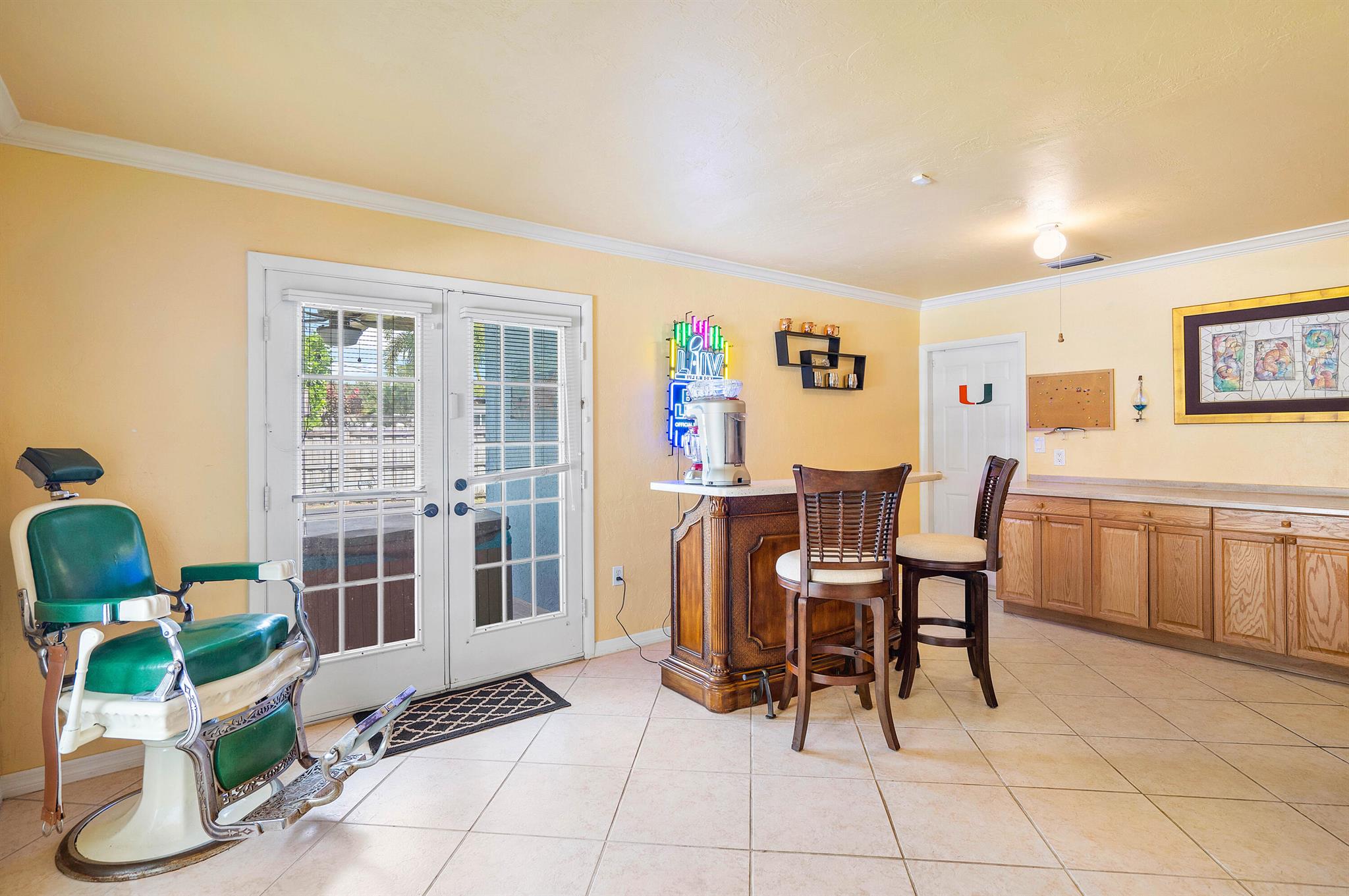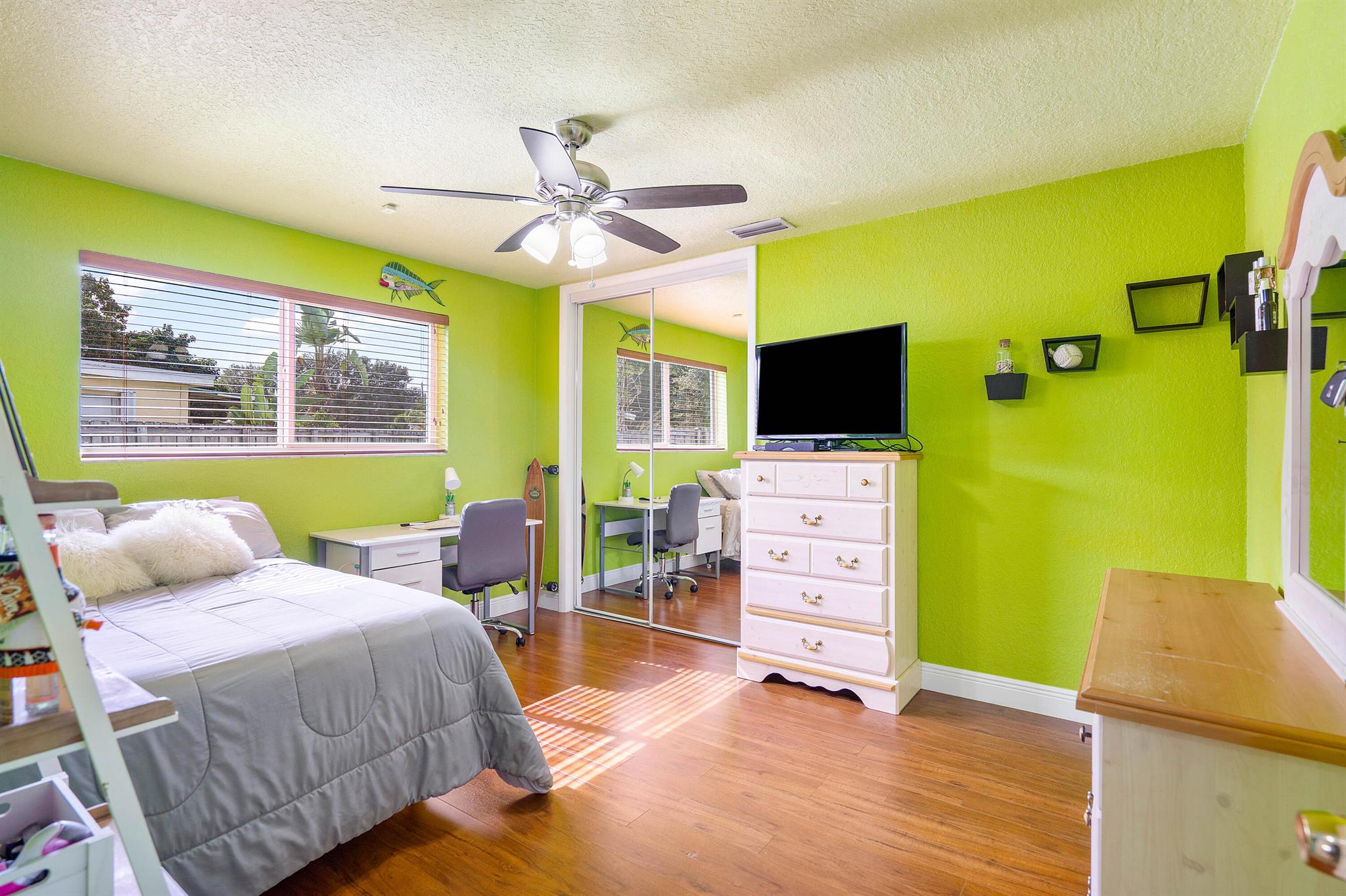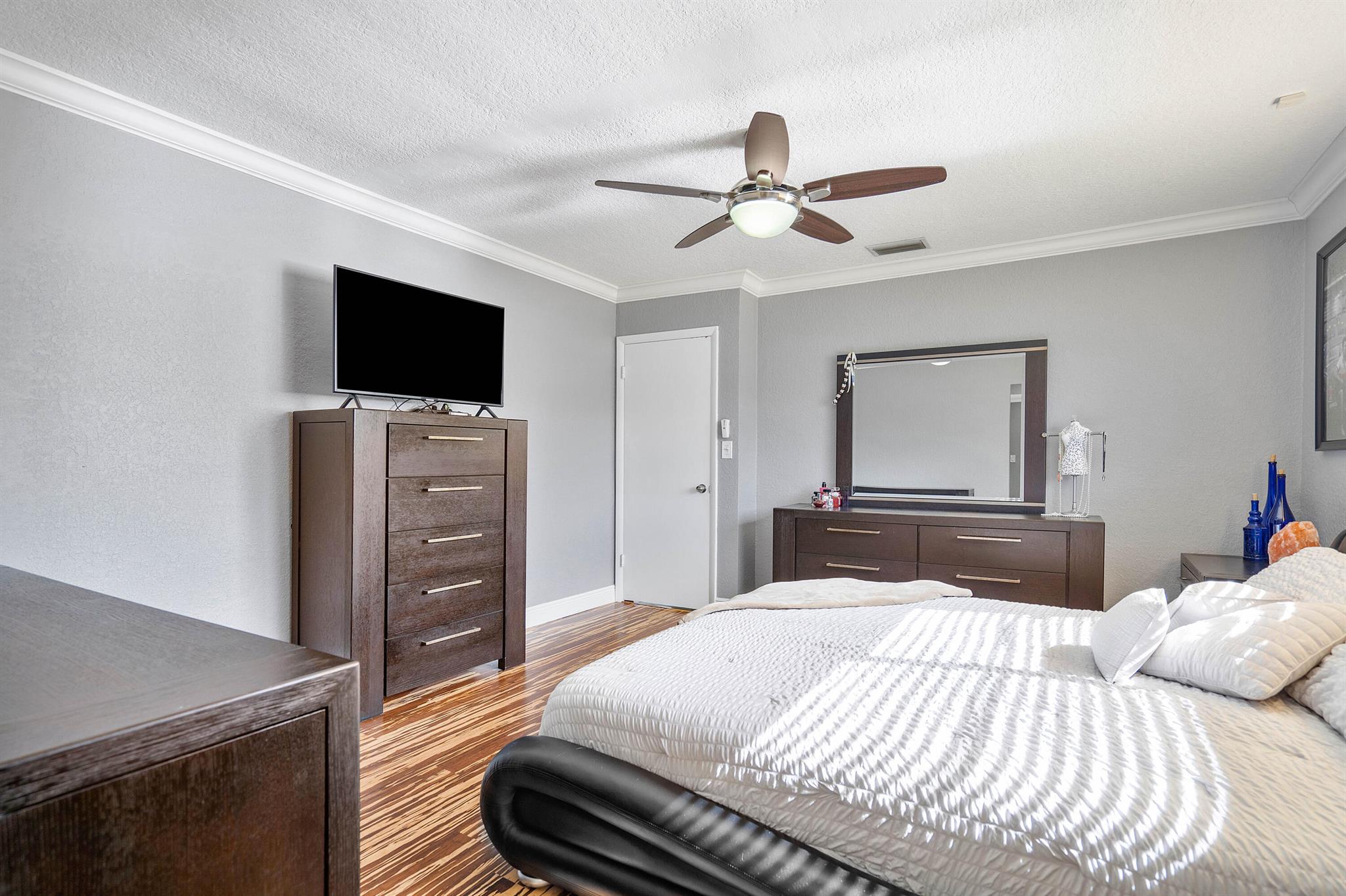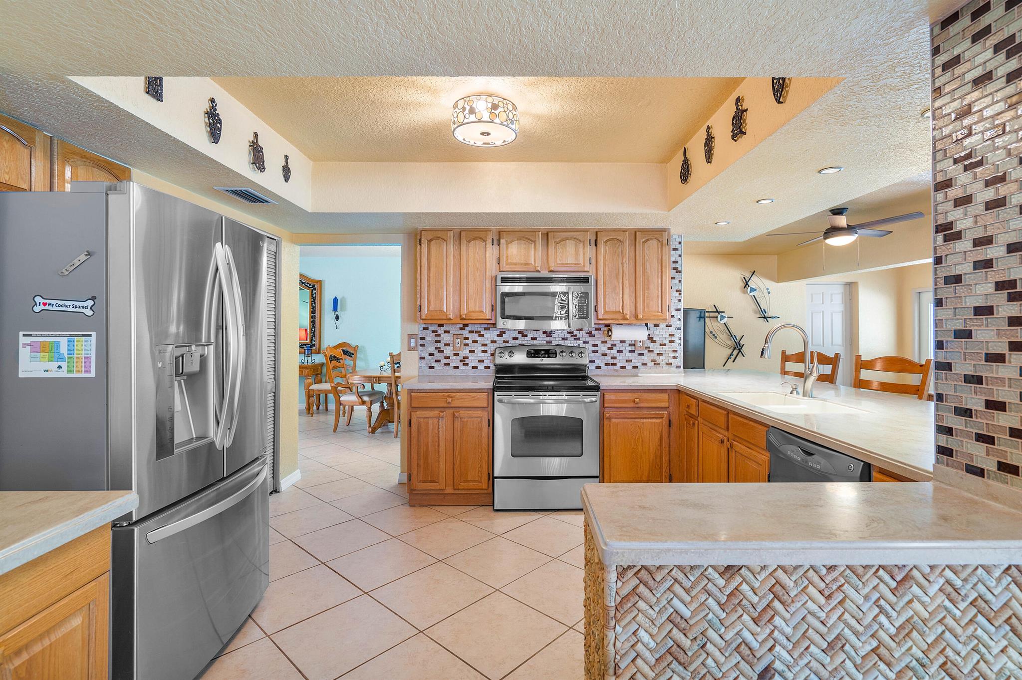 Discover your dream home in the coveted Cooper Colony Estates! This splendid single-family pool home boasts 3 bedrooms, 2 bathrooms, and a 2-car garage. Nestled on over 1/3 of an acre, this gem features 130 feet of waterfront canal with a private dock – a paradise for water enthusiasts. No HOA fees! Step inside to experience luxury with diagonally laid tile throughout the main living area. The oversized living room is adorned with upgraded features, including a fan, baseboards, and expansive windows that flood the space with natural light. The master bedroom is a retreat with upgraded wood-look laminate floors, a fan, crown molding, and ample closet space. The master bathroom is equally impressive, featuring a solid wood vanity, framed mirror, upgraded light fixture, and a beautiful tiled