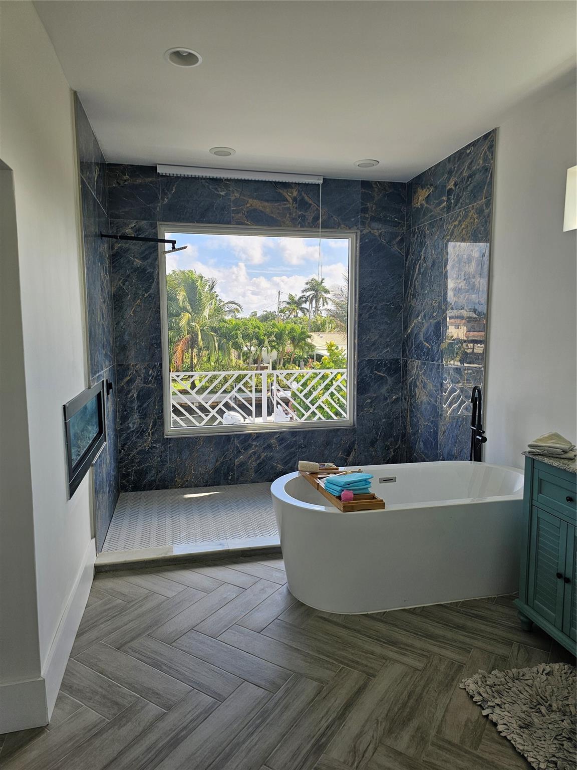 Waterfront home with 1 bridge. 15 minute boat ride to Hillsboro Outlet. Glass tile pool & jacuzzi with 2nd floor waterfall. 2 master bedrooms with bathroom & walking closets. Open floor plan. Tons of light and hurricane proof windows. Dock is composite wood with 110AMP. 2 year old tiki with Hibachi flat grill & bar. Tankless water heater. 2nd floor deck. Turf in backyard. Mango tree. Oversized baseboards. 3rd bedroom used as office. Roof has the 30 year warranty plus sea salt coverage
