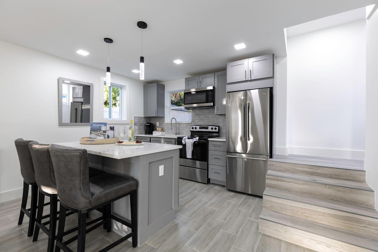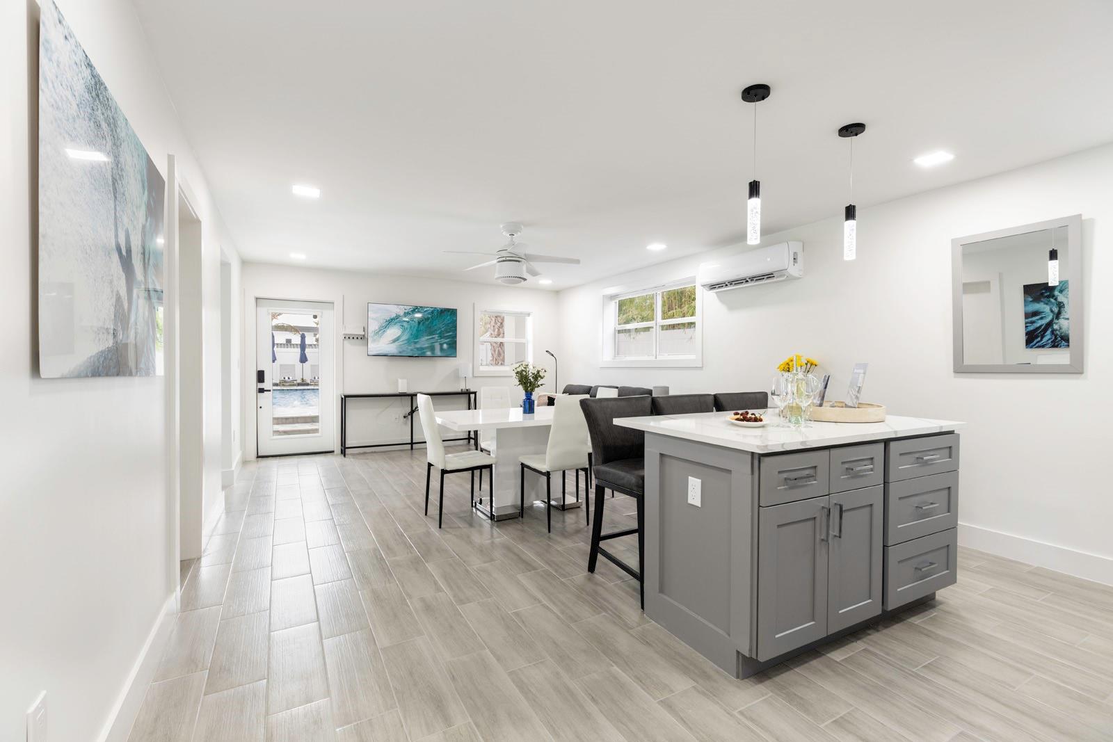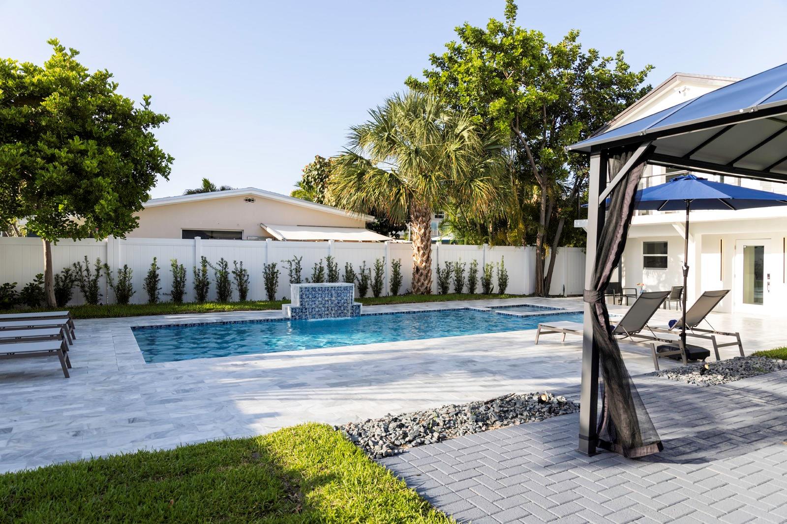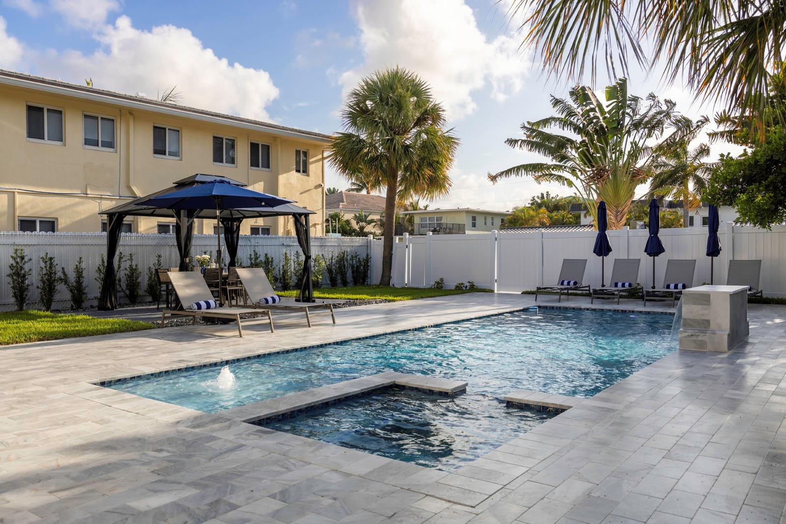 This beautiful home in Lauderdale-by-the-Sea offers a unique opportunity with an in-law-suite. The main home is a spacious 2-bedroom, 2 1/2-bathroom and the In-law-Suite is a cozy 1-bedroom, 1-bathroom even equipped with a kitchenet. Nestled in a tropical oasis, the property boasts a custom pool and hot tub, perfect for relaxation and entertainment. Features include modern upgrades, including granite countertops and stainless-steel appliances in the kitchen, ensuring a sleek and functional culinary space, impact windows, providing enhanced security and protection against the elements while allowing for ample natural light. The property’s lush landscaping adds to the curb appeal, creating a serene and welcoming environment. New electric and plumbing.