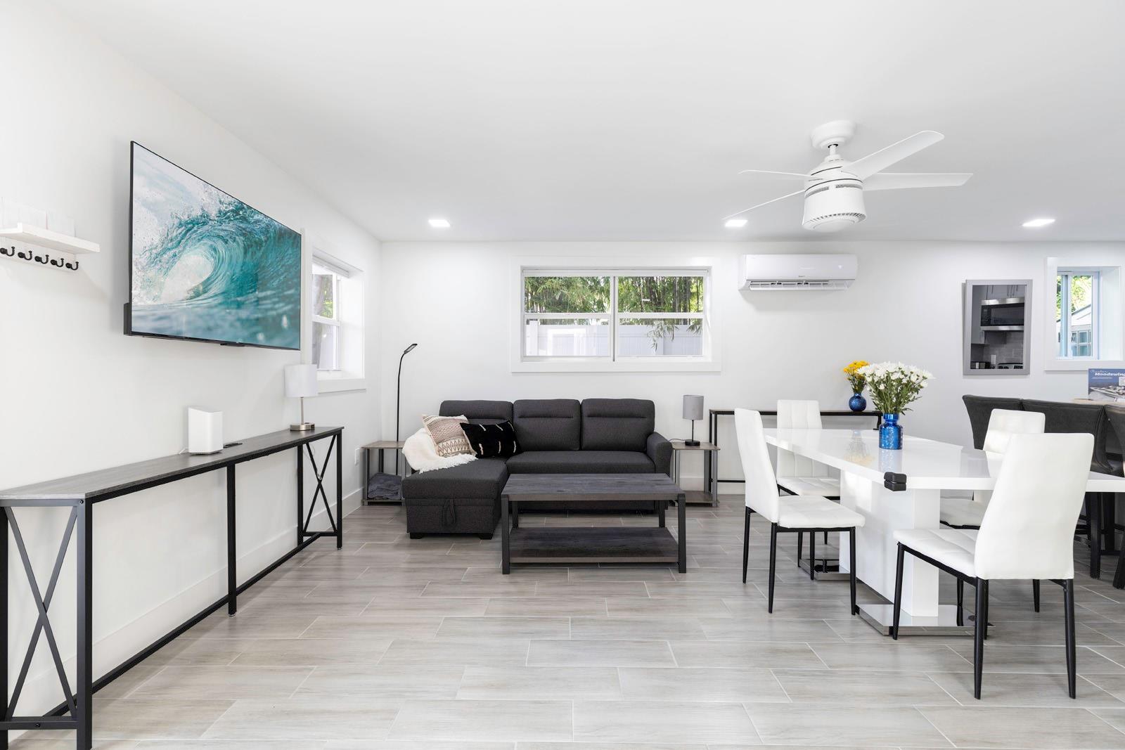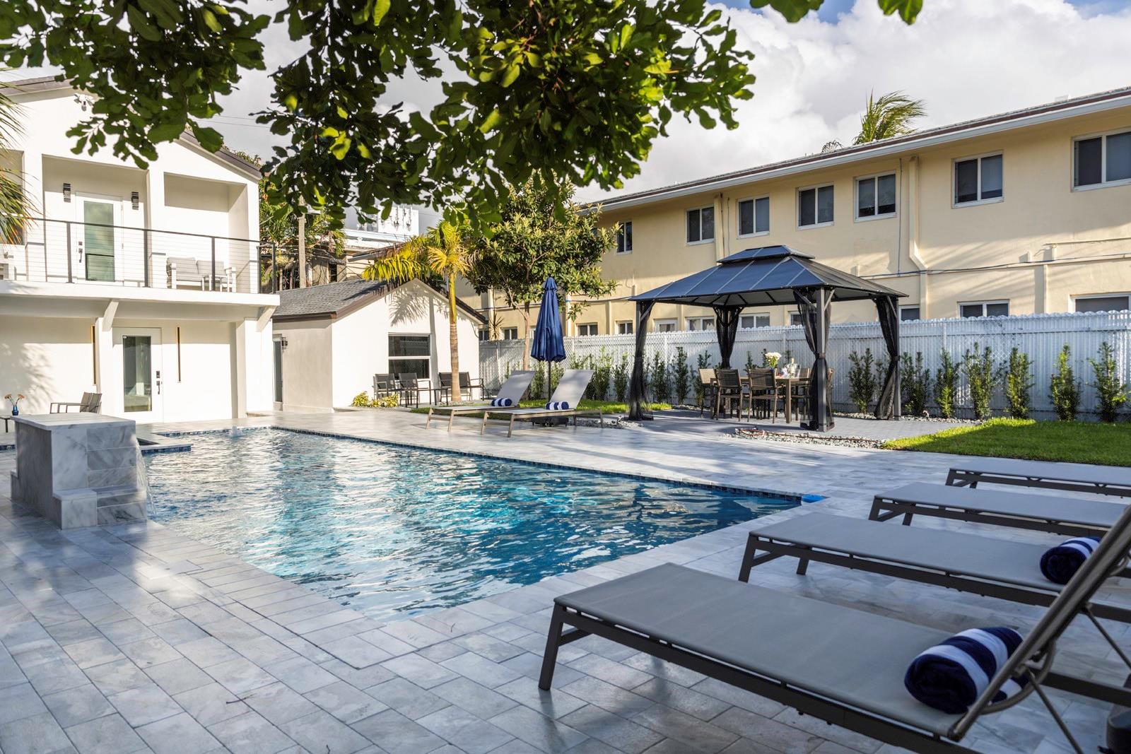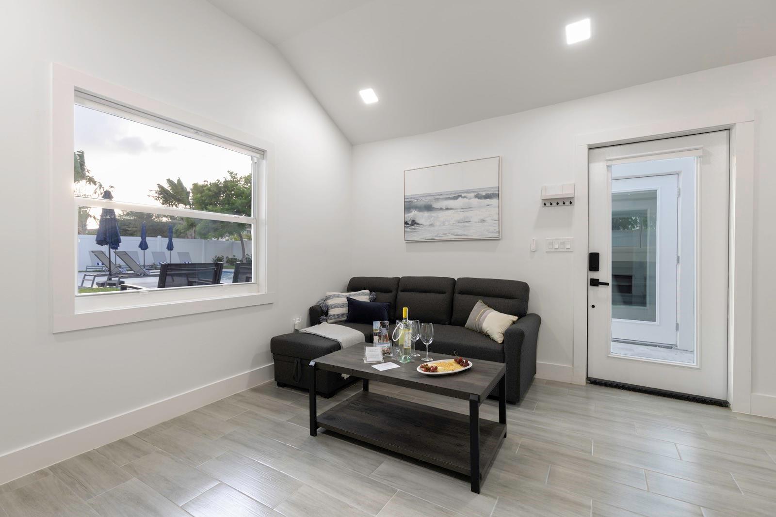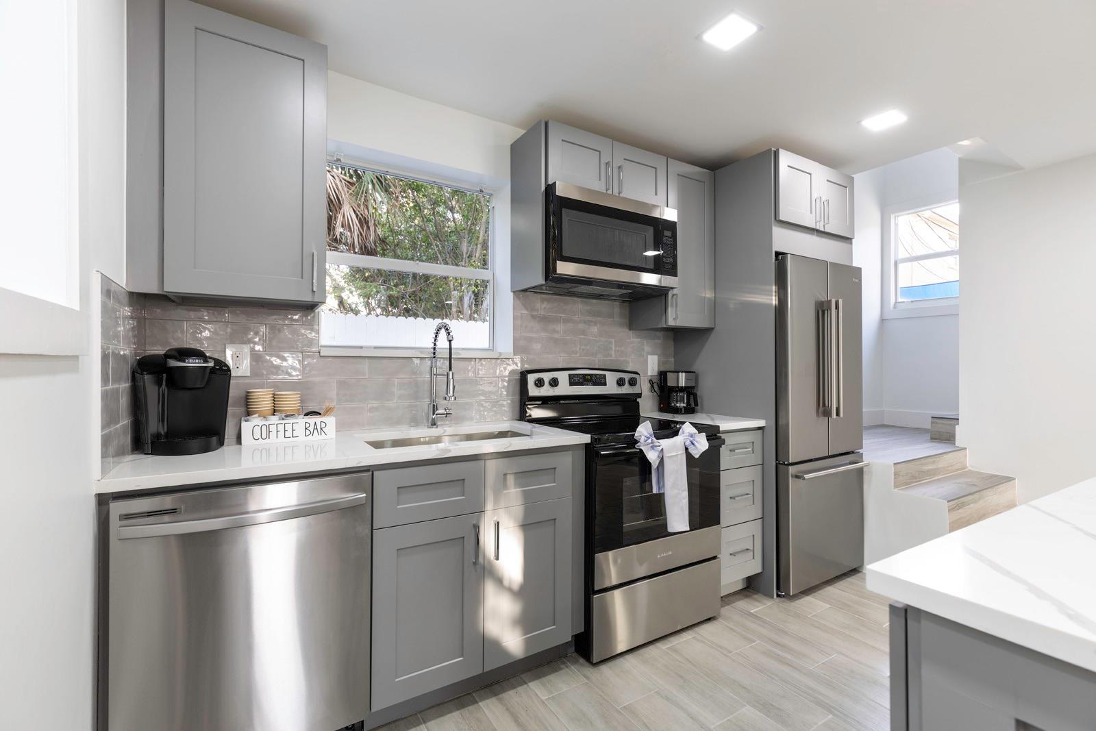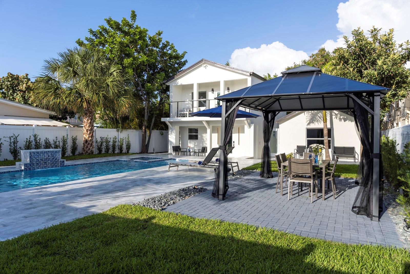 This beautiful home in Lauderdale-by-the-Sea offers a unique opportunity with an in-law-suite. The main home is a spacious 2-bedroom, 2 1/2-bathroom and the In-law-Suite is a cozy 1-bedroom, 1-bathroom even equipped with a kitchenet. Nestled in a tropical oasis, the property boasts a custom pool and hot tub, perfect for relaxation and entertainment. Features include modern upgrades, including granite countertops and stainless-steel appliances in the kitchen, ensuring a sleek and functional culinary space, impact windows, providing enhanced security and protection against the elements while allowing for ample natural light. The property’s lush landscaping adds to the curb appeal, creating a serene and welcoming environment. New electric and plumbing.