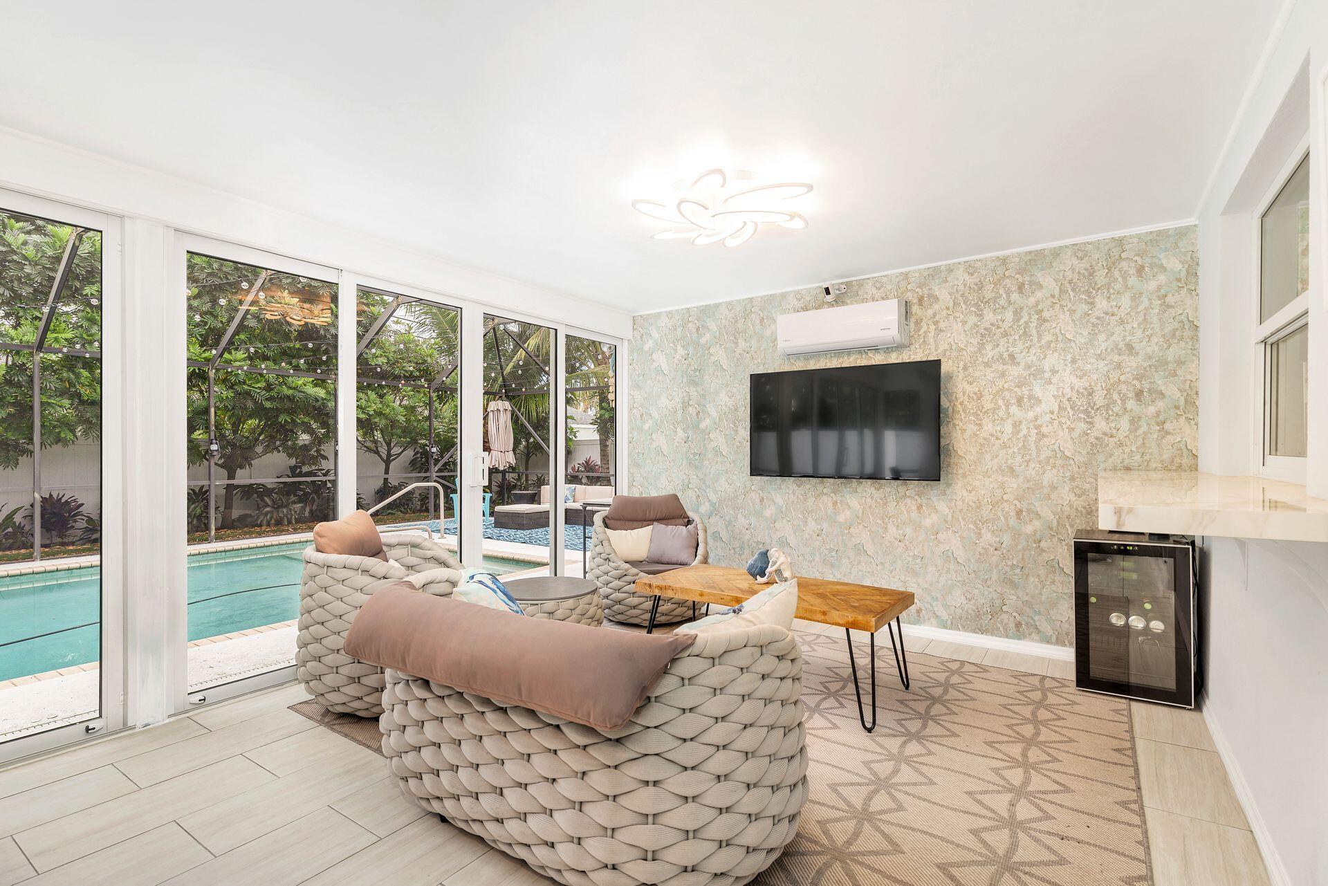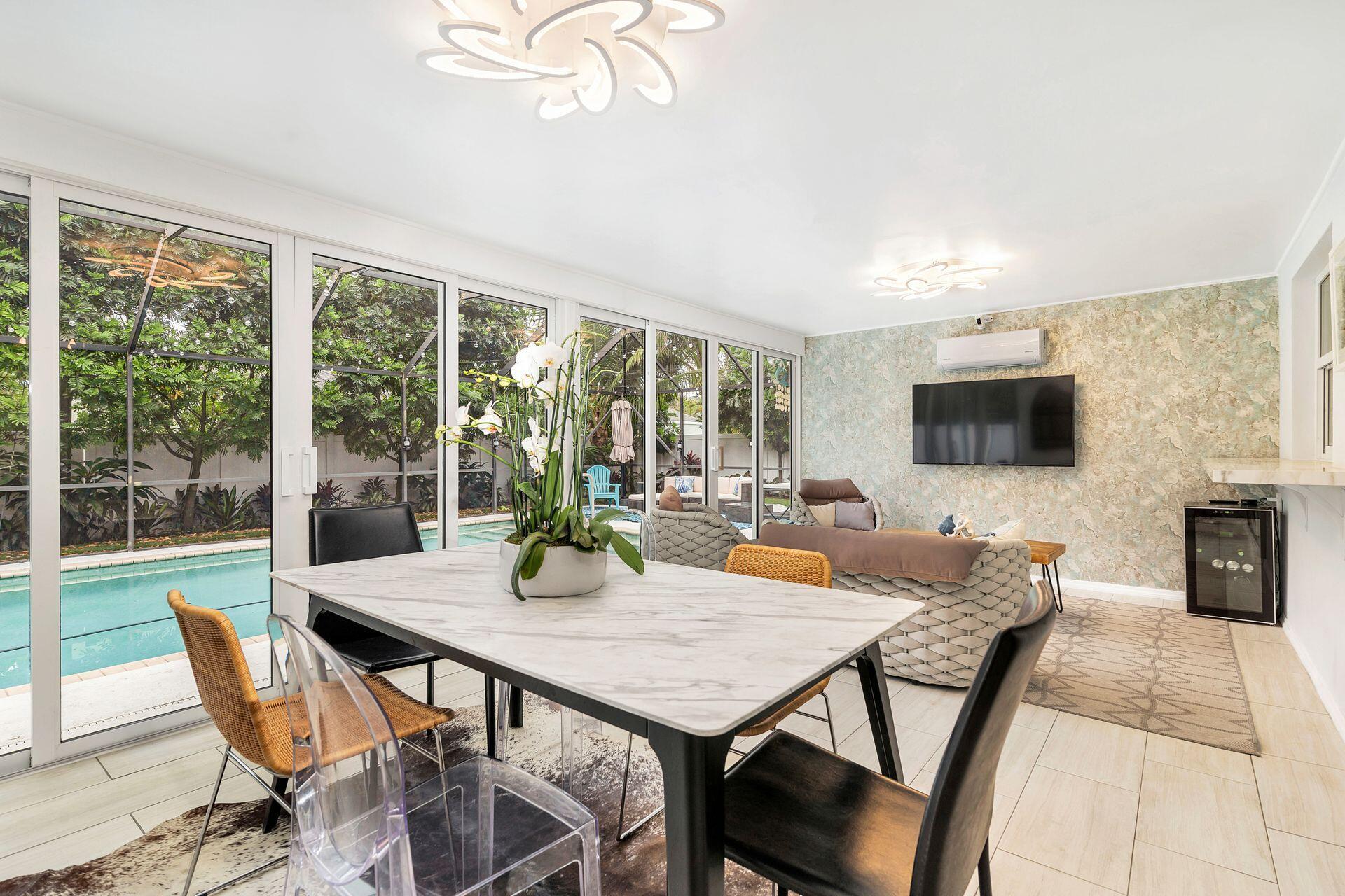 This immaculate College Park residence combines the convenience of resort-style living with the comfort of single-story ease. Every detail has been thoughtfully renovated, from the newer roof to the brand new hurricane impact windows and doors, updated plumbing, and electrical systems. Step into the stunning, fully-equipped kitchen with GE appliances, a gas range, and sleek quartz countertops. Enjoy the newly enclosed, air conditioned sunroom, over looking the sparkling saltwater pool create the perfect setting for indoor/outdoor entertaining, surrounded by meticulously landscaped grounds featuring specimen trees and pristine turf. Enjoy peace of mind with a full house generator, 1 car garage, and new HVAC system. Expansion opportunities available, this property offers endless potential.