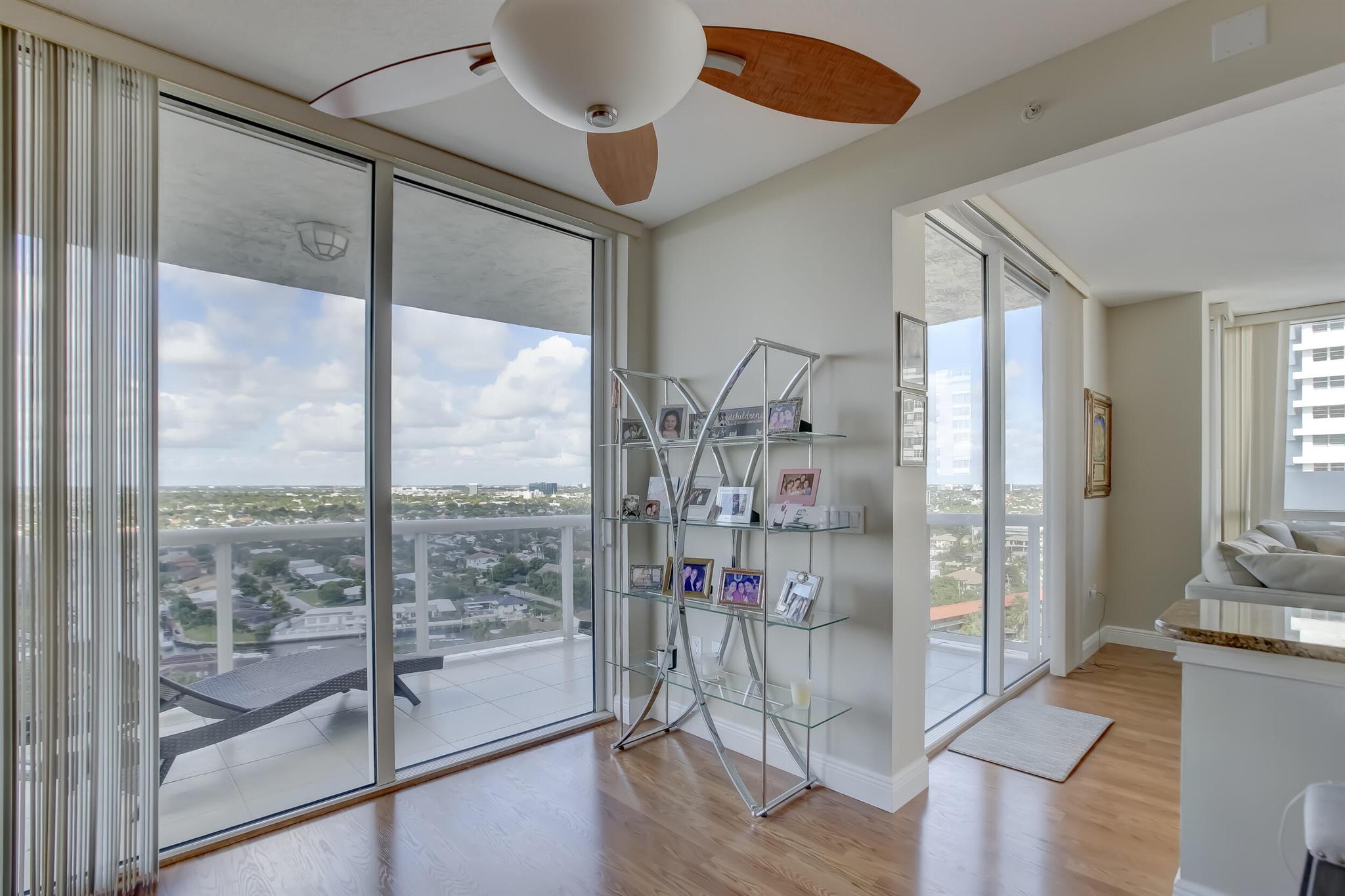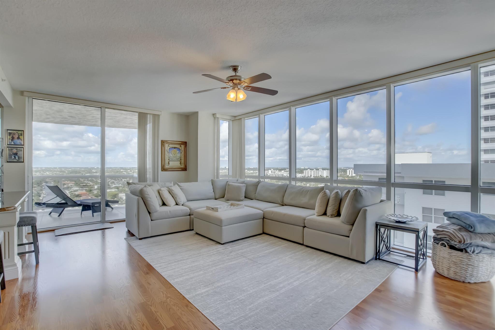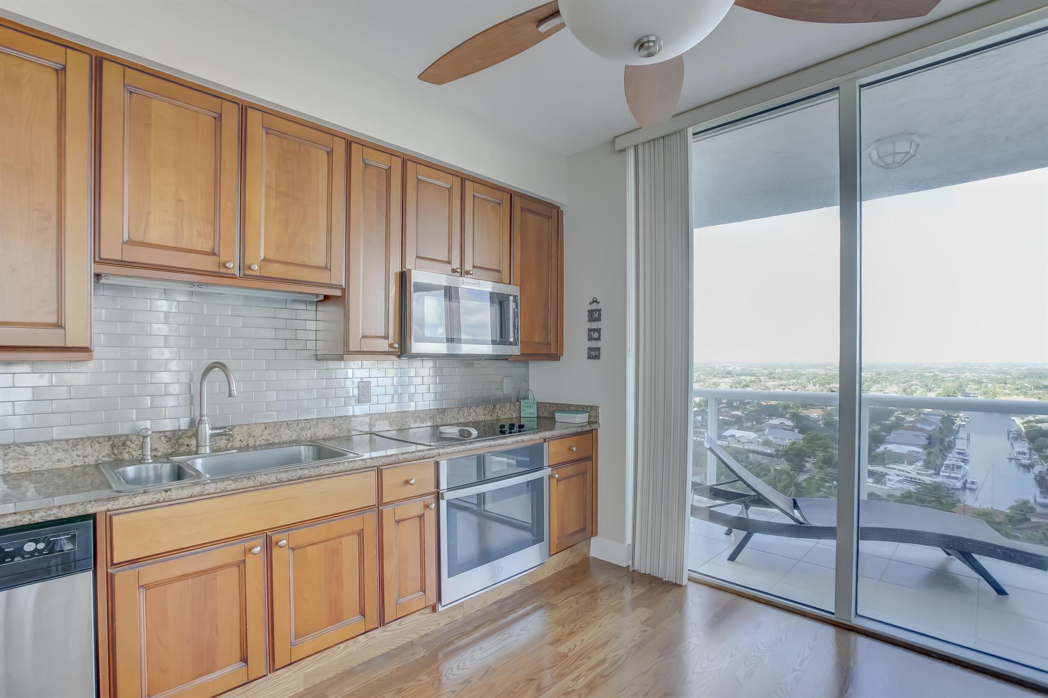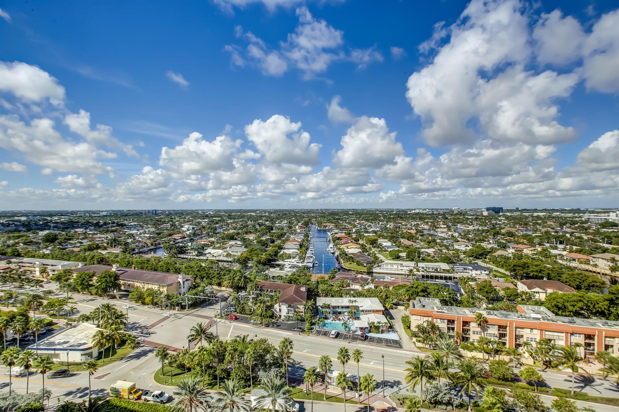 ENJOY Amazing Intracoastal, City and Sunset VIEWS from this 17th floor Corner Unit! Double Door Entry opens into a lrg foyer leading to a ”Great Room” with ”Walls of Glass”. Open kitchen features Stainless Steel appliances, backsplash, granite counter tops, a wide breakfast nook and room for a table and chairs. Spacious master suite with walk in closet, master bath offers double sink vanity, jacuzzi tub & separate shower. The lrg balcony is accessible from the sliding glass doors in the Great Room, Kitchen and Master Suite. Two guestrooms, marble guest bath, laundry room & impact glass make this a desirable home. Deeded with 2 garage spots and wine locker. L’Ambiance is a boutique bldg on The Galt Ocean Mile! 5 Star living with Oceanfront pool, Gym, 24 hr security, Valet & MORE!