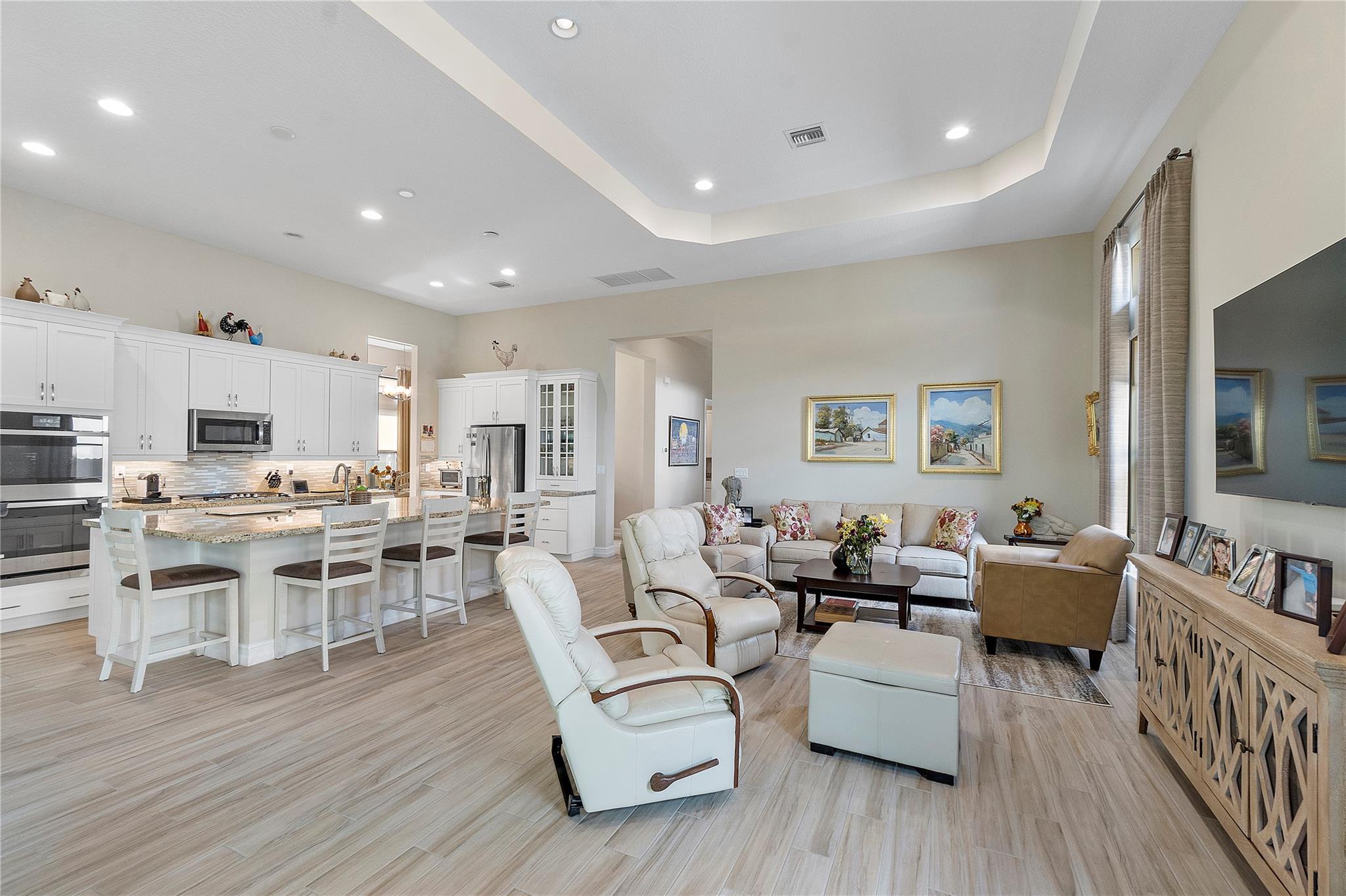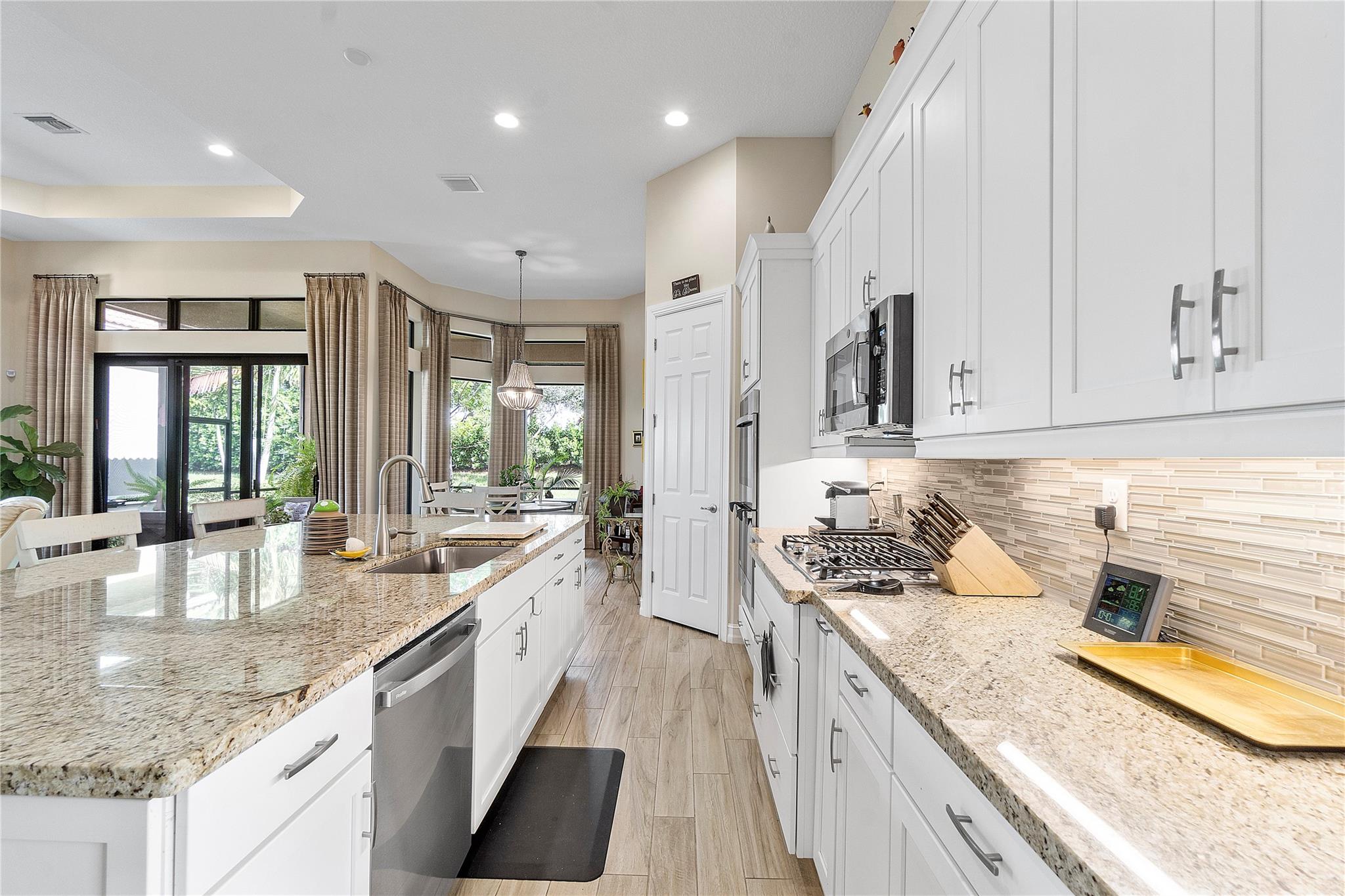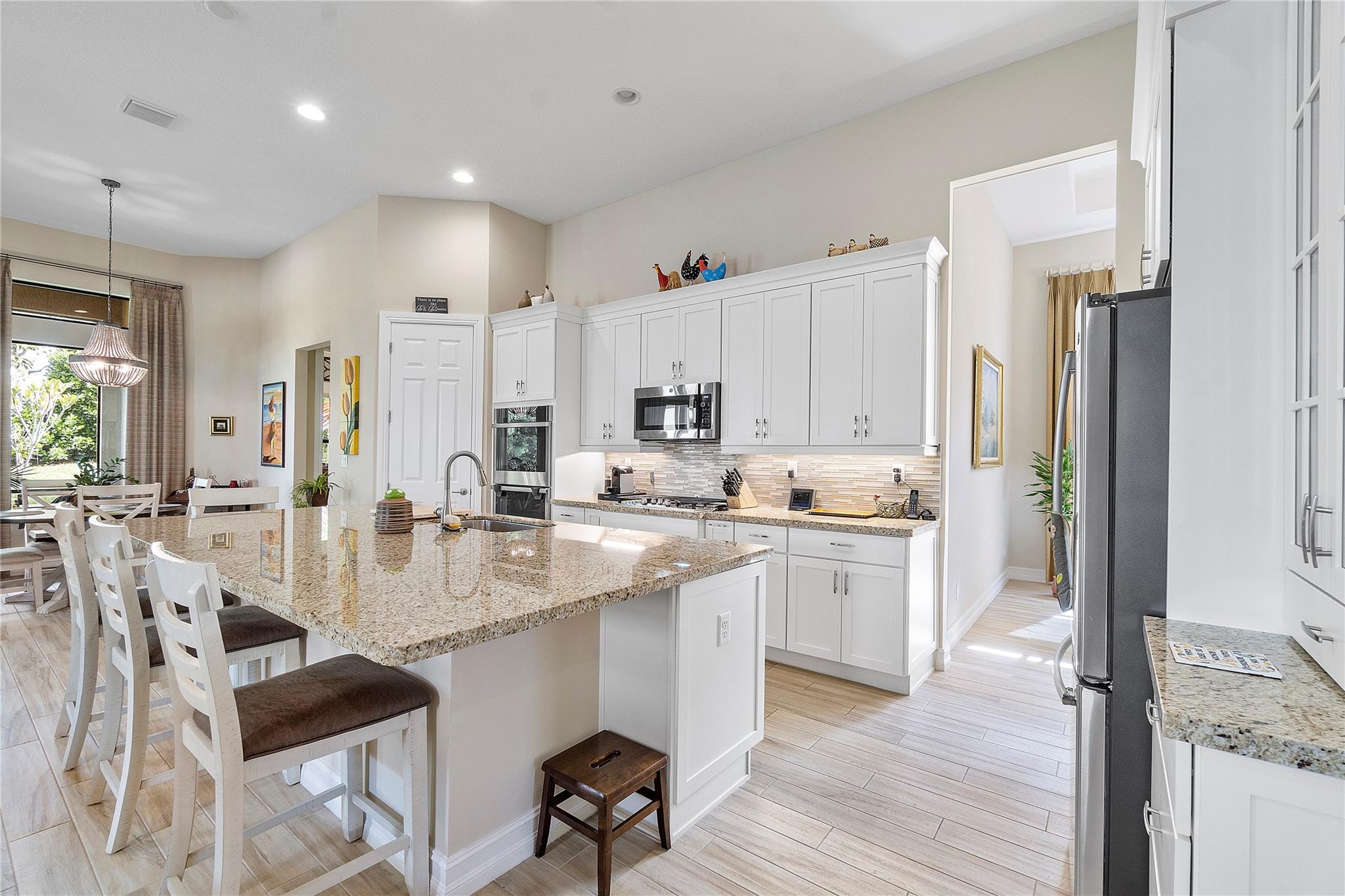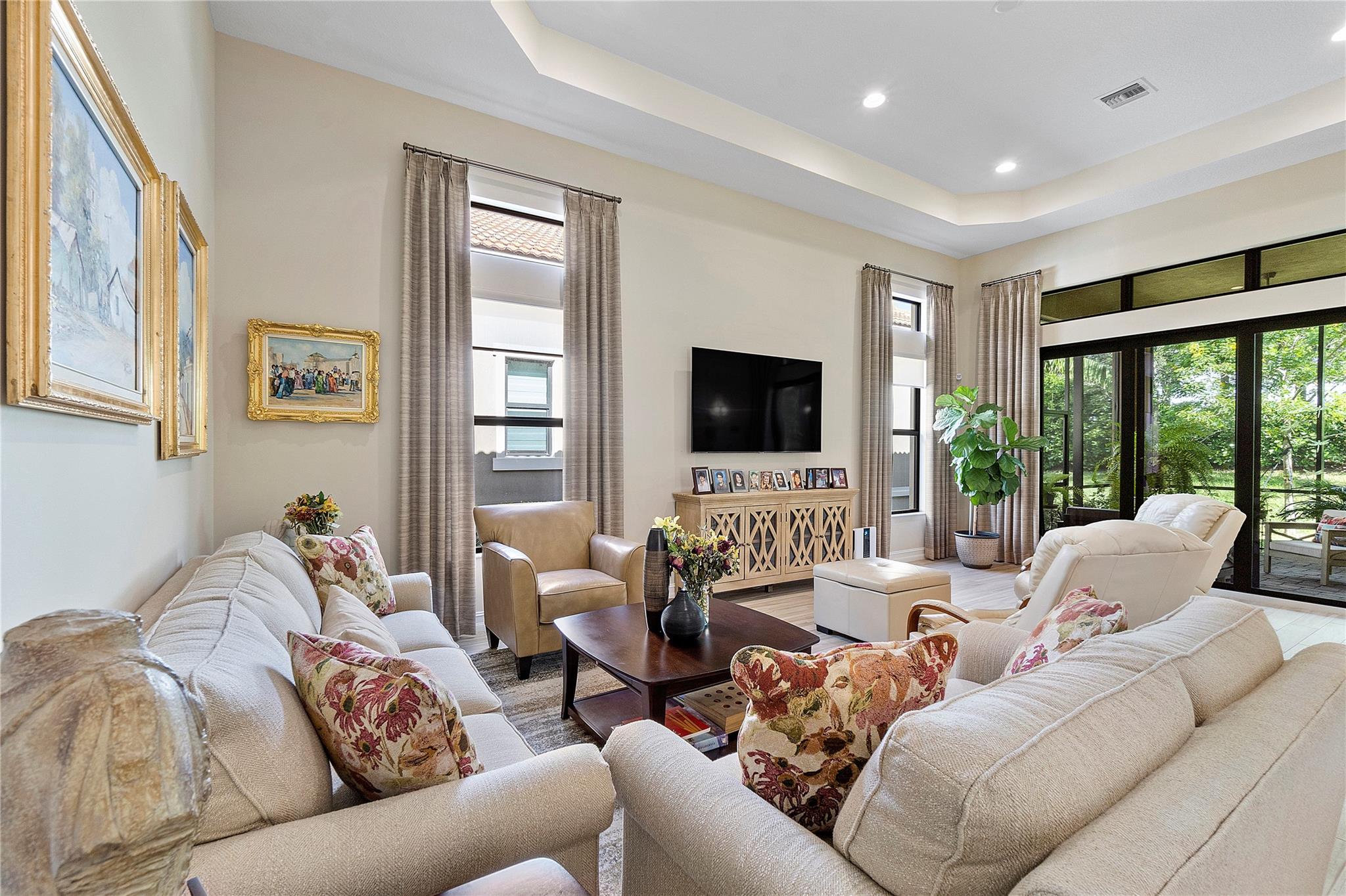 Welcome to the exquisite 2020 guard-gated Four Seasons of Parkland! This dream home offers a multitude of upgrades, with stunning Tuscan exterior. Inside, you’ll find custom12′ tray ceilings throughout. The wood-like tile flooring creates a warm and inviting atmosphere. Gourmet kitchen is equipped high-end appliances, gas stove, white cabinets, and granite countertops. Separate formal dining room, Den with privacy glass French doors, can also be used as third bedroom. The master bedroom has 2 walking closets. Step outside to spacious screen and covered Lanai, perfect for outdoor relaxation. The 2.5 cars garage provides ample space for 2 cars & golf cart. embrace an active lifestyle like Resort, club house, community amenities, tennis courts, Pickleball, bocce ball, pools and more…