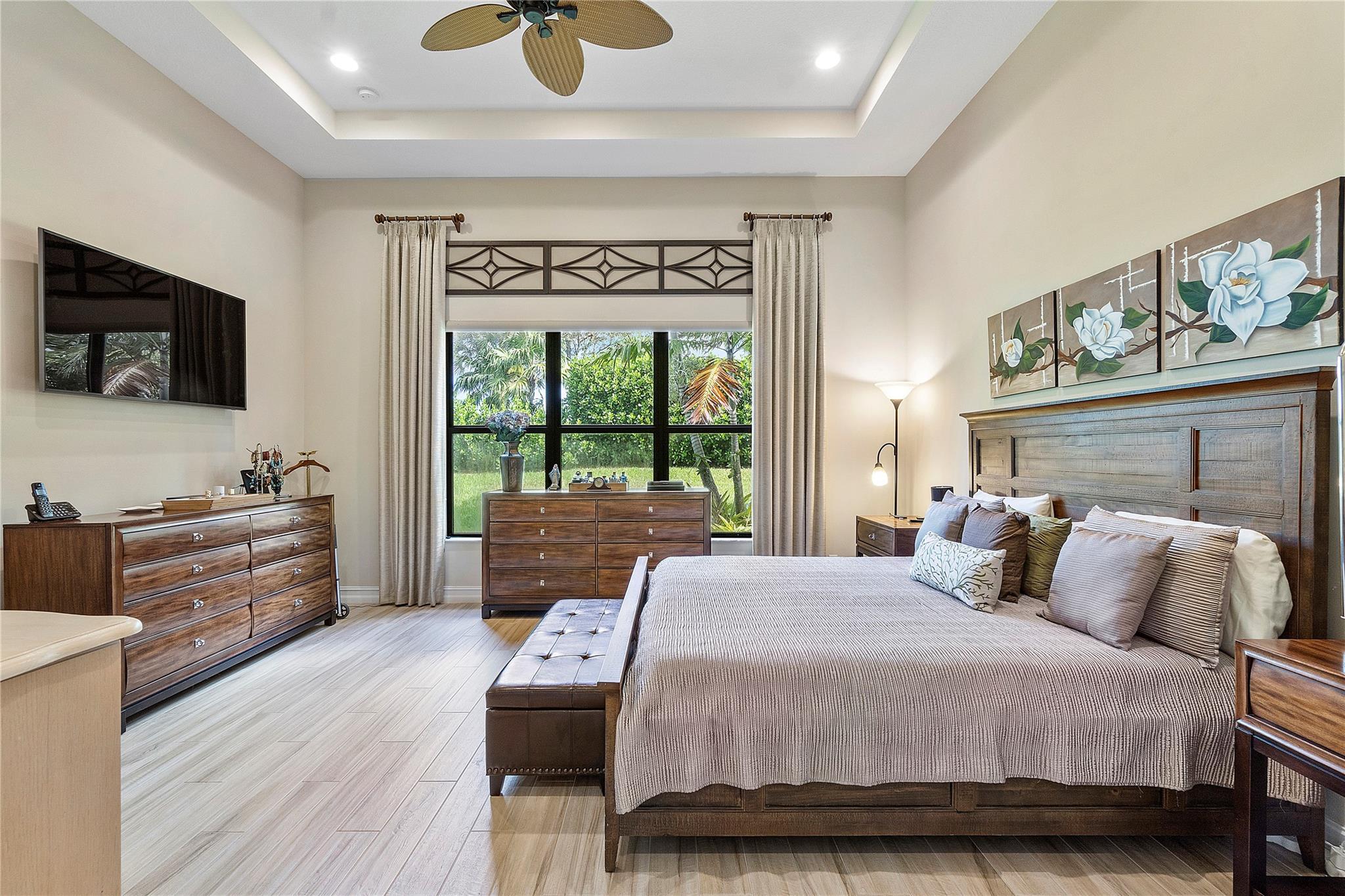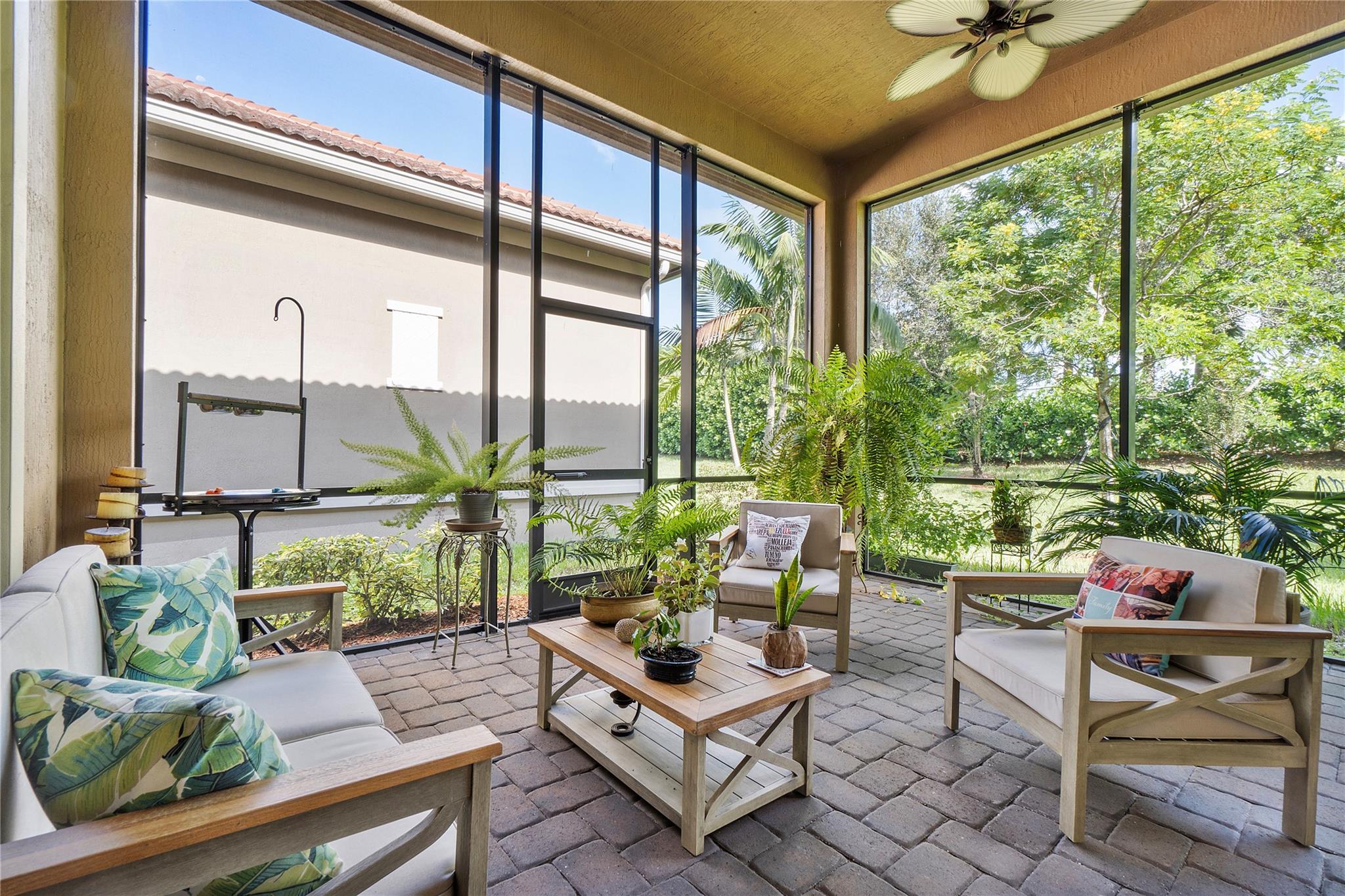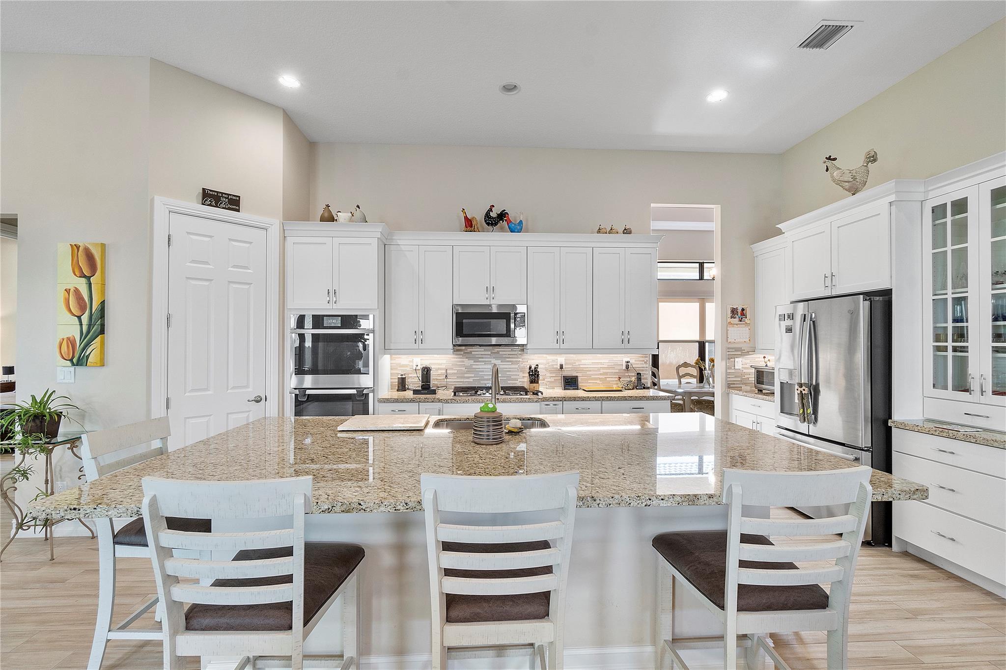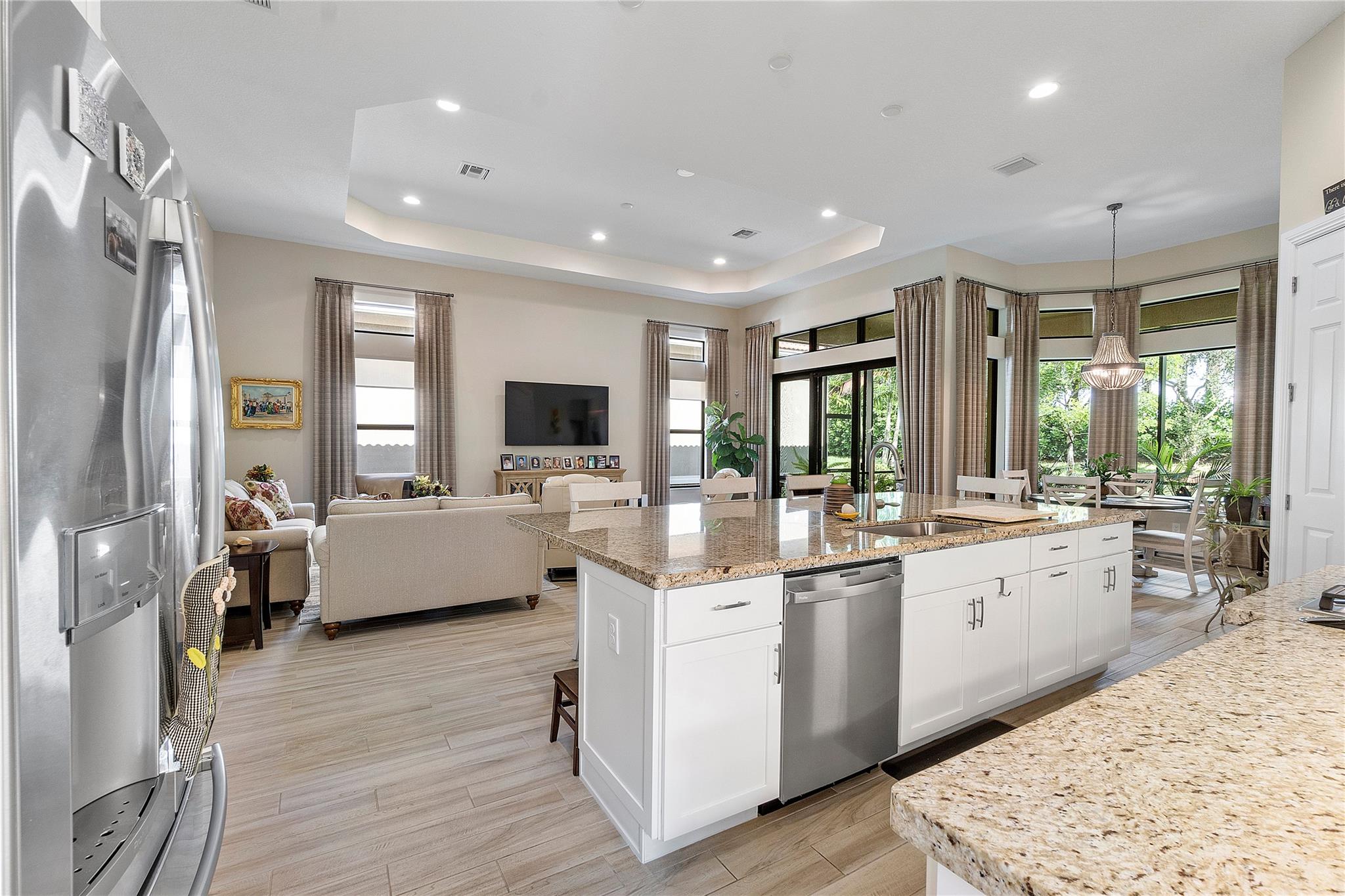 Welcome to the exquisite 2020 guard-gated Four Seasons of Parkland! This dream home offers a multitude of upgrades, with stunning Tuscan exterior. Inside, you’ll find custom12′ tray ceilings throughout. The wood-like tile flooring creates a warm and inviting atmosphere. Gourmet kitchen is equipped high-end appliances, gas stove, white cabinets, and granite countertops. Separate formal dining room, Den with privacy glass French doors, can also be used as third bedroom. The master bedroom has 2 walking closets. Step outside to spacious screen and covered Lanai, perfect for outdoor relaxation. The 2.5 cars garage provides ample space for 2 cars & golf cart. embrace an active lifestyle like Resort, club house, community amenities, tennis courts, Pickleball, bocce ball, pools and more…