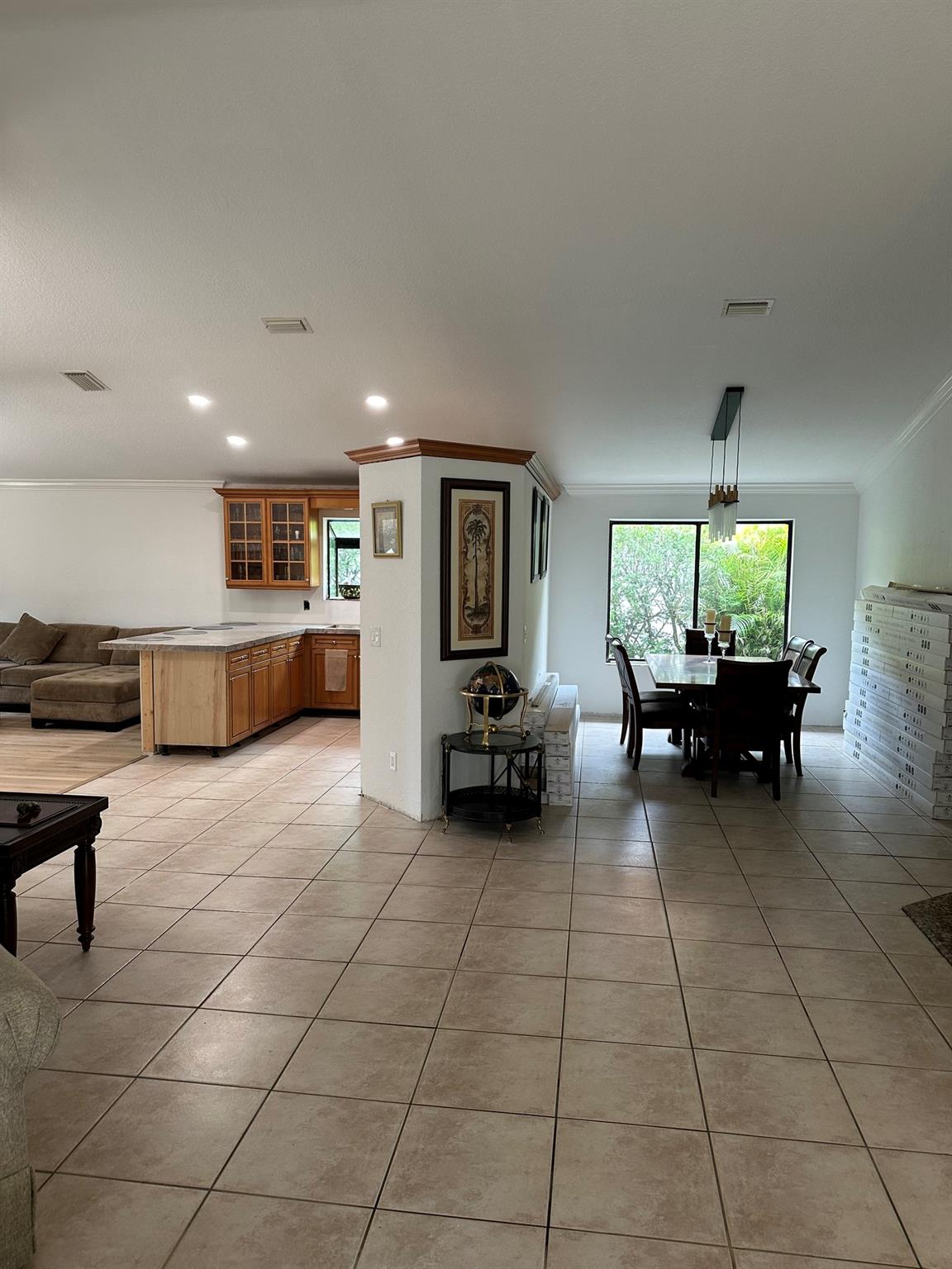 dining room, open kitchen. Split floor plan, 2 car garage, screened patio overlooking lake. Both bathrooms are renovated. New front doors, newer A/C, 5 years old roof as was replaced in 2018.