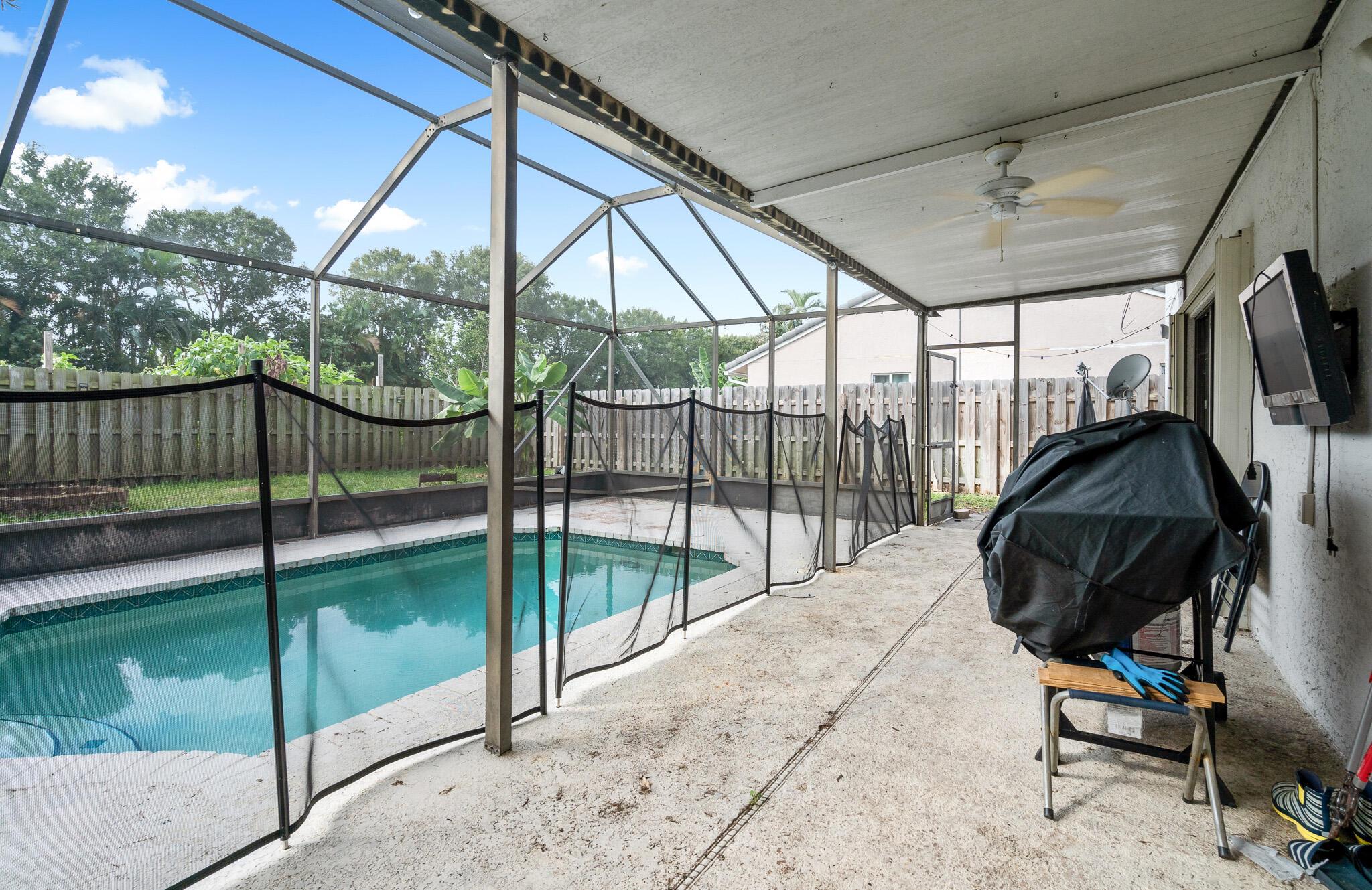 Welcome to your dream 2 story single family home with 3 bedrooms and 2.5 baths with very low HOA. Fully upgraded kitchen with stainless steel appliances, granite countertops, and white cabinets, laminate flooring, 2017 roof, 2022 A/C, solar panels, 2022 sprinkler system, brand new 2022 garage door was installed, and new pool pump was added in 2022. Large master bedroom comes with a walk-in closet. Enjoy privacy on your oversized screened porch with a pool and a fully fence backyard.