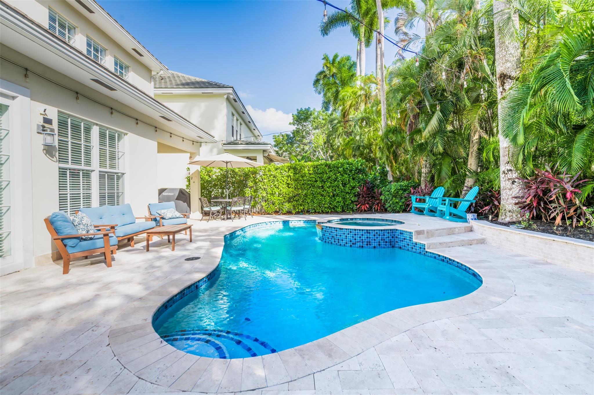 WELCOME HOME! Former Glenn Wright model w/custom finishes in&out. 5bed 4bth situated on desirable, X large lot in La Preserve: Be transported to a Georgian style community: Treelined streets, winding paths, footbridges & gazebos. Highly coveted & gated w/67 homes minutes from it all! HOME: widened driveway for 3 cars, cul-de-sac, fully fenced, nestled w/mature trees, high ceilings, chiseled edge travertine tile, bedm & full bath on 1st floor. Gourmet kitchen, lavish finishes: 36″ glass cooktop, crown molding, trayed ceilings, 2 newer AC units, pool: newly resurfaced, new pavers, heated, salt water, jacuzzi spa & large back yard w/covered entertaining off kitchen. 5th bedrm showing as upstairs loft. Many features to list. Constructed incomparable to recent builds. ASSUMABLE MORTGAGE ASK ME!