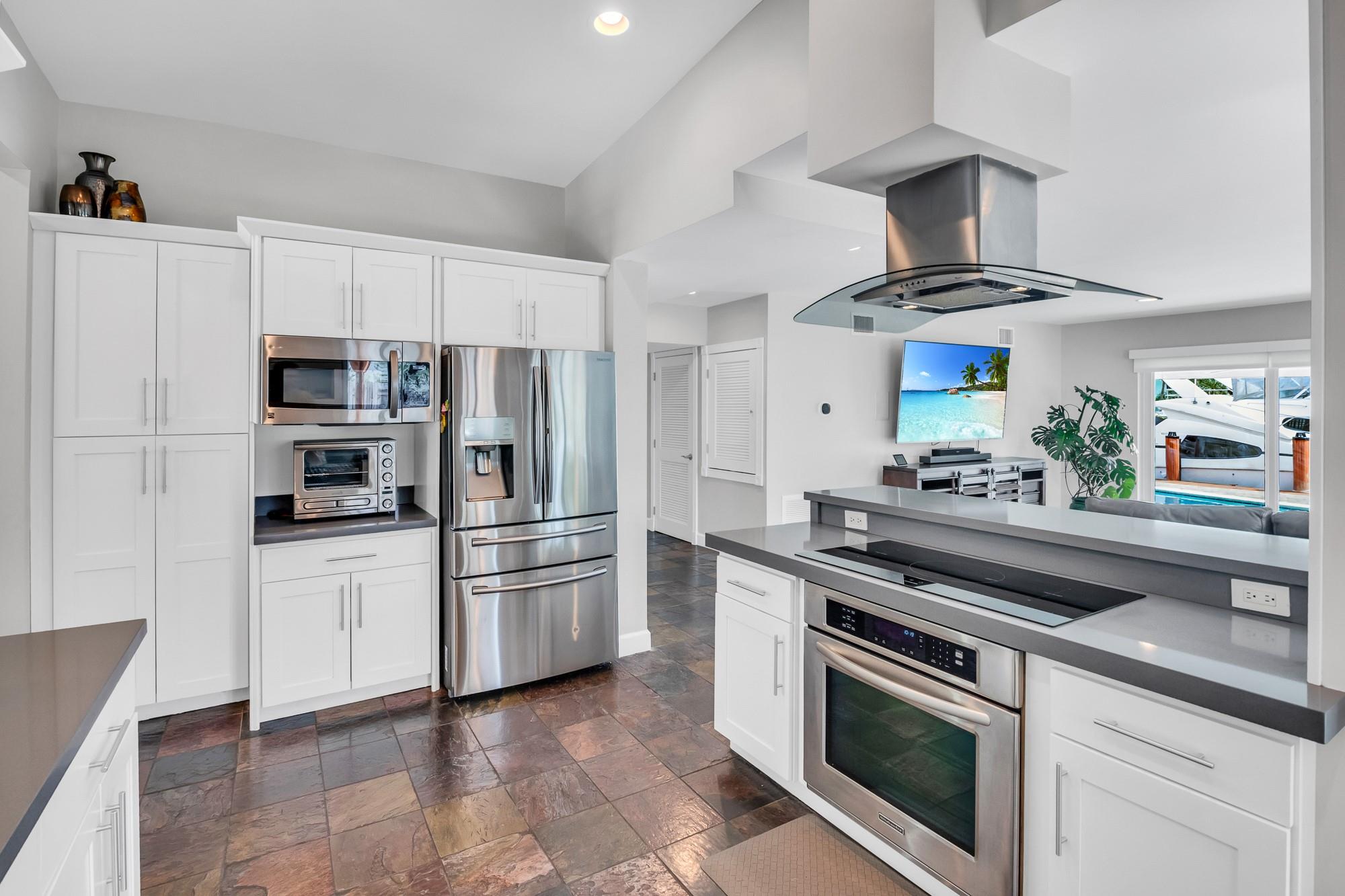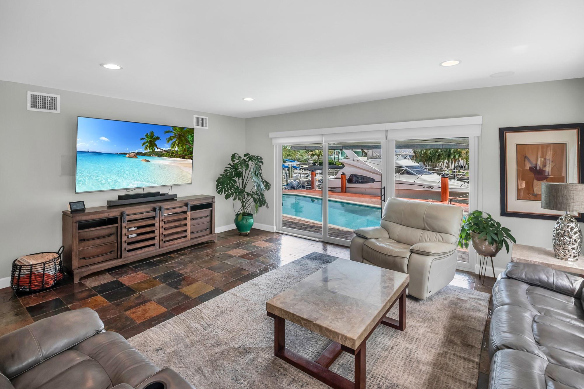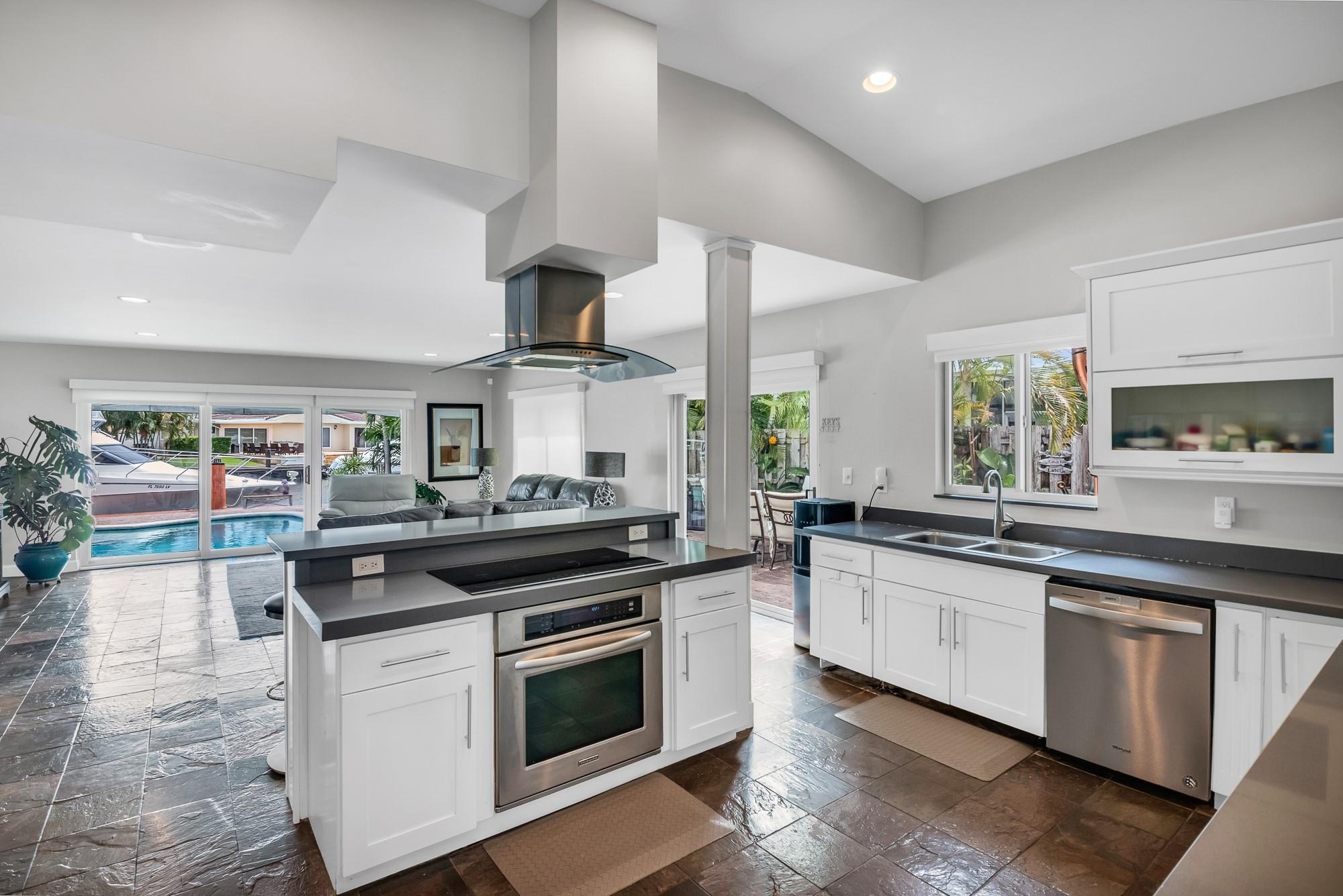 Beautiful, Spacious 4 Bedroom/ 3 bath-2 story home with water views from every room. Large 1 car garage along w/covered parking with an electric car charging station. HOME IS COMPLETELY RUN ON SOLAR…NO ELECTRIC BILL. Relaxing backyard with heated private pool and your very own private new dock containing two 30 amp boxes for your boat…easy access to the ocean… NO FIXED BRIDGES. Featuring open concept Chefs kitchen/family room, formal & casual dining, FULL high impact windows and doors, stainless steel appliances, built in Sonos audio system & surround sound in every room, 2 newer central upper/lower A/C units with blue UV light, large circular driveway with new pavers. Newer roof (2021). Generator hook up. Backyard has electric awning with lights for the pool area. A must see!!