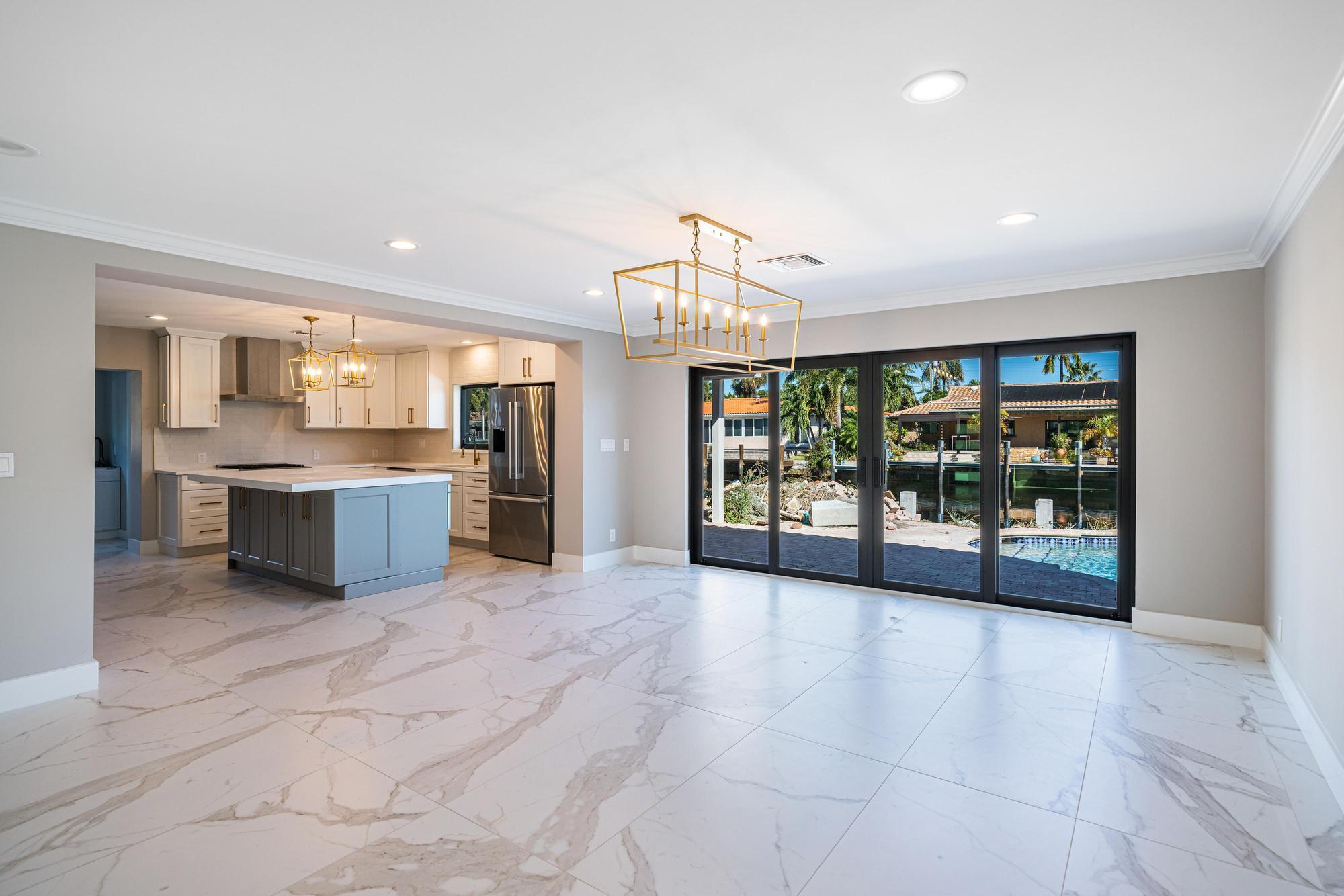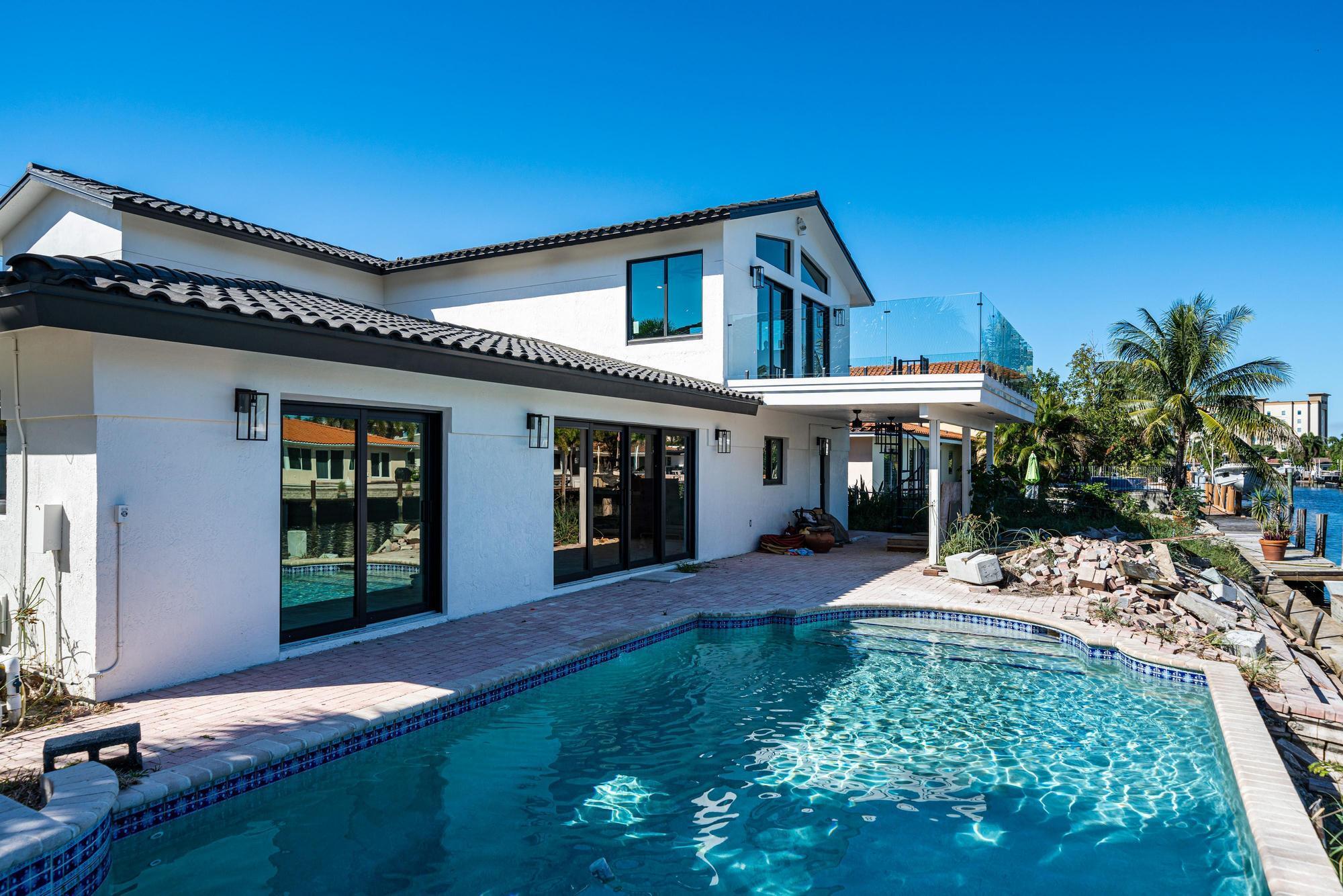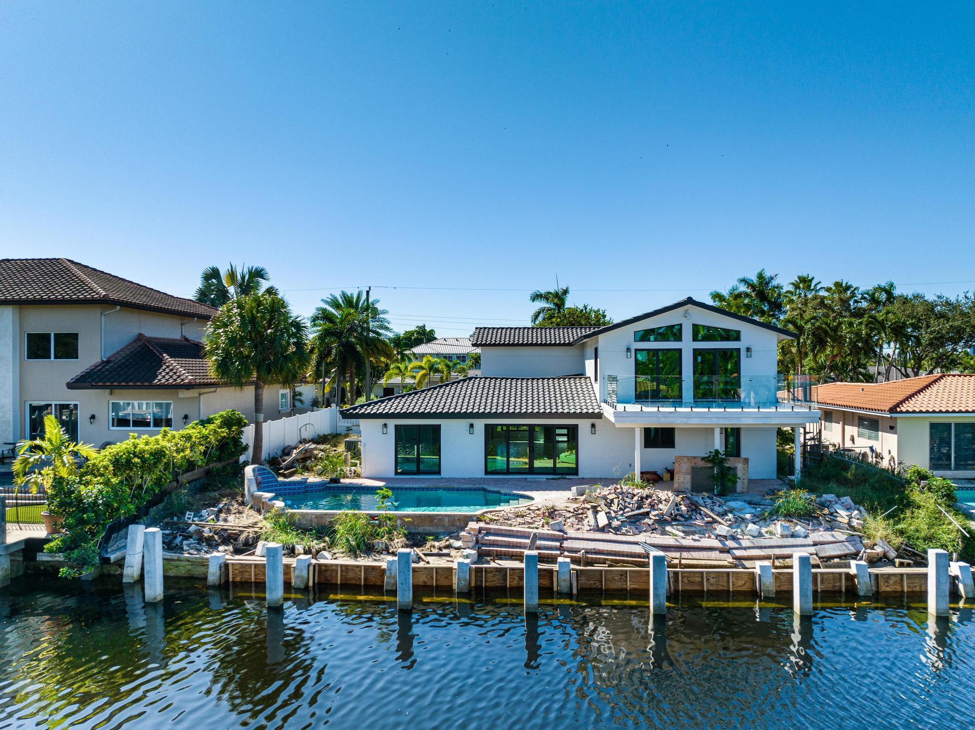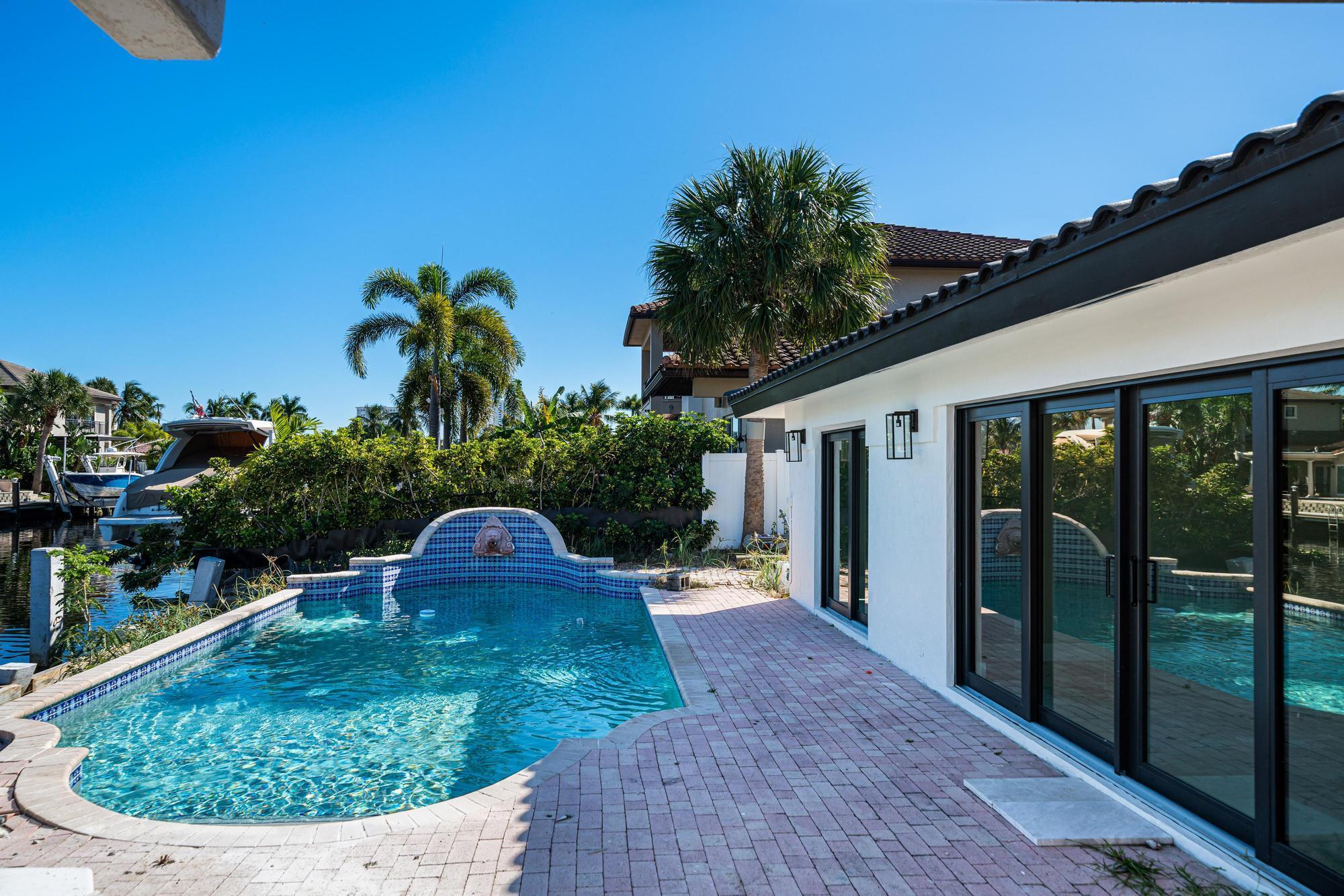 Nestled on a tranquil cul-de-sac in Pompano Isle, this beautifully renovated home offers direct access to the intracoastal waterway. The freshly updated exterior showcases a coastal aesthetic, while the interior boasts an open floor plan with abundant natural light and picturesque water views. The gourmet kitchen and spacious master suite provide modern comfort, while the backyard oasis features a pool and a private dock for enjoying the water. This elegantly transformed retreat offers the ideal blend of coastal living and modern luxury. Outdoor renovations will be completed within the next couple of weeks. See video Rendering!
