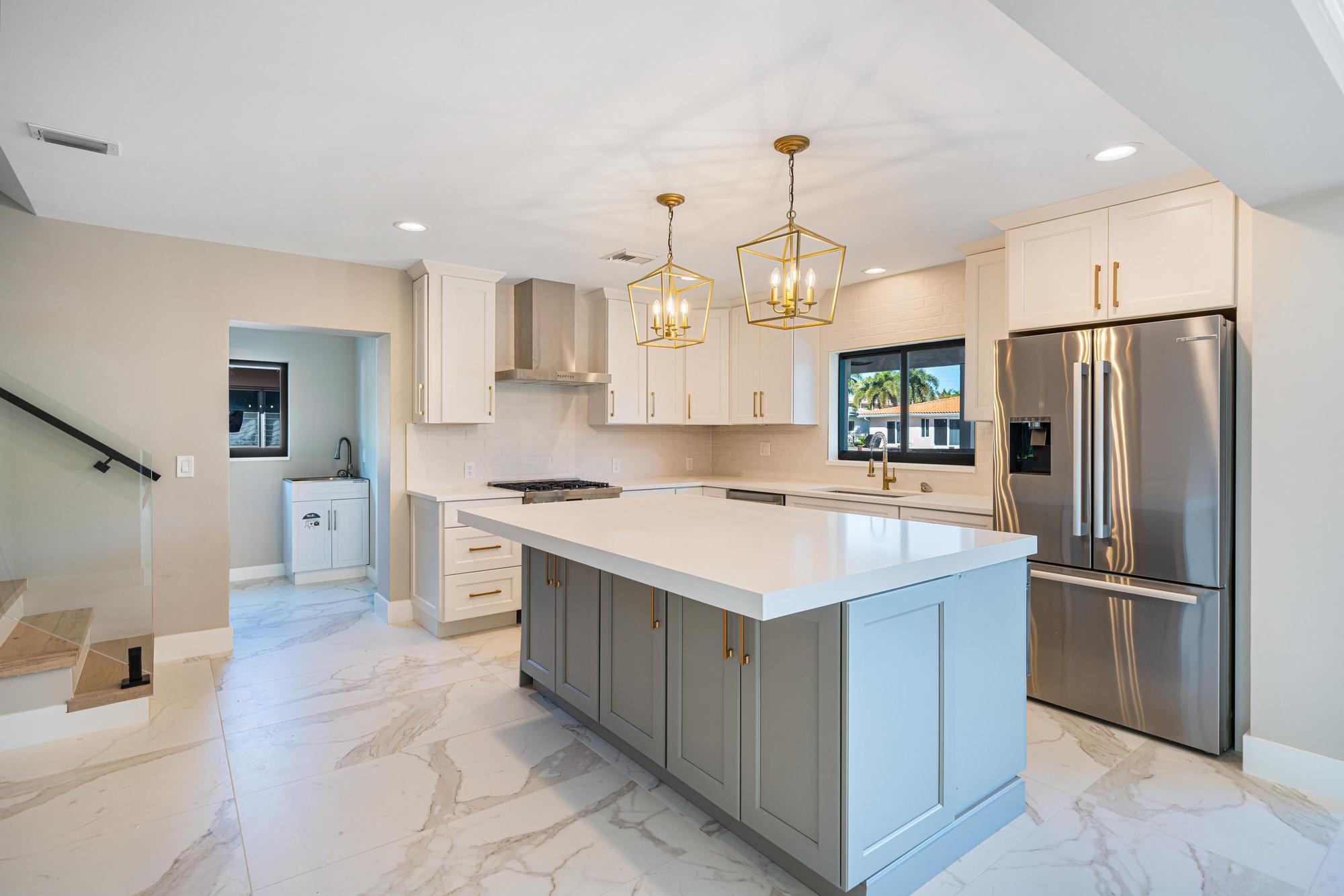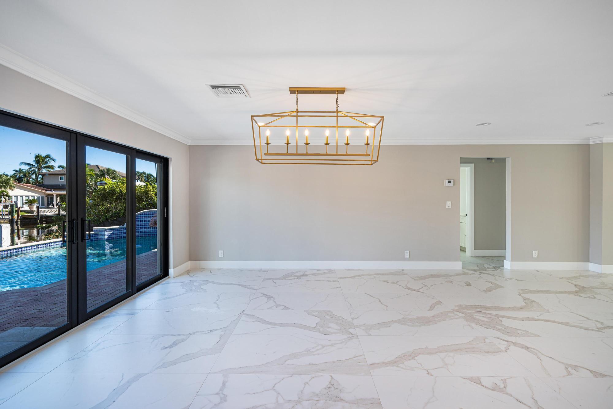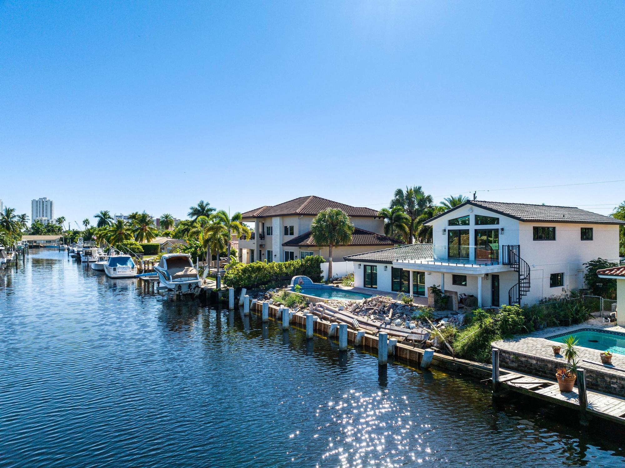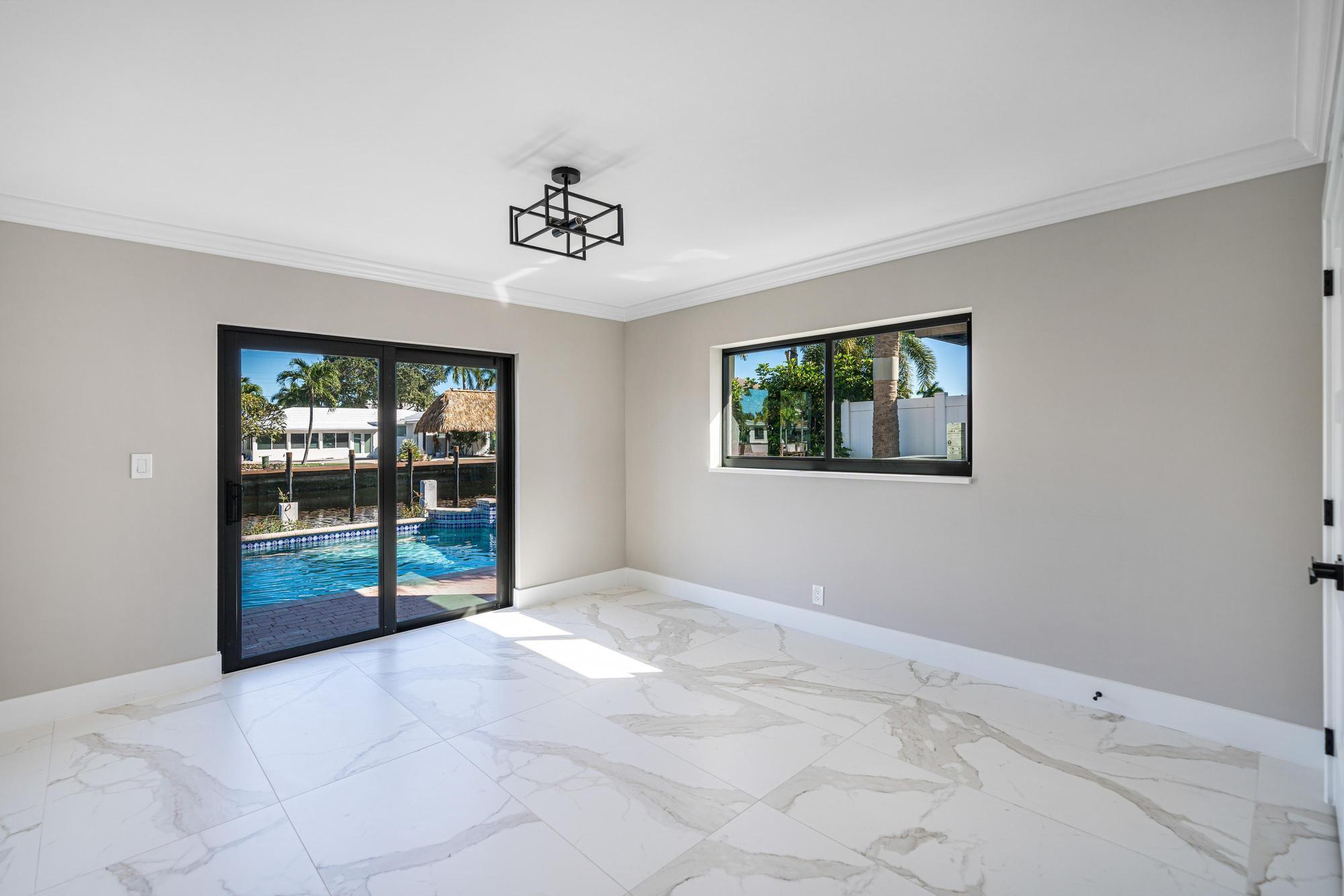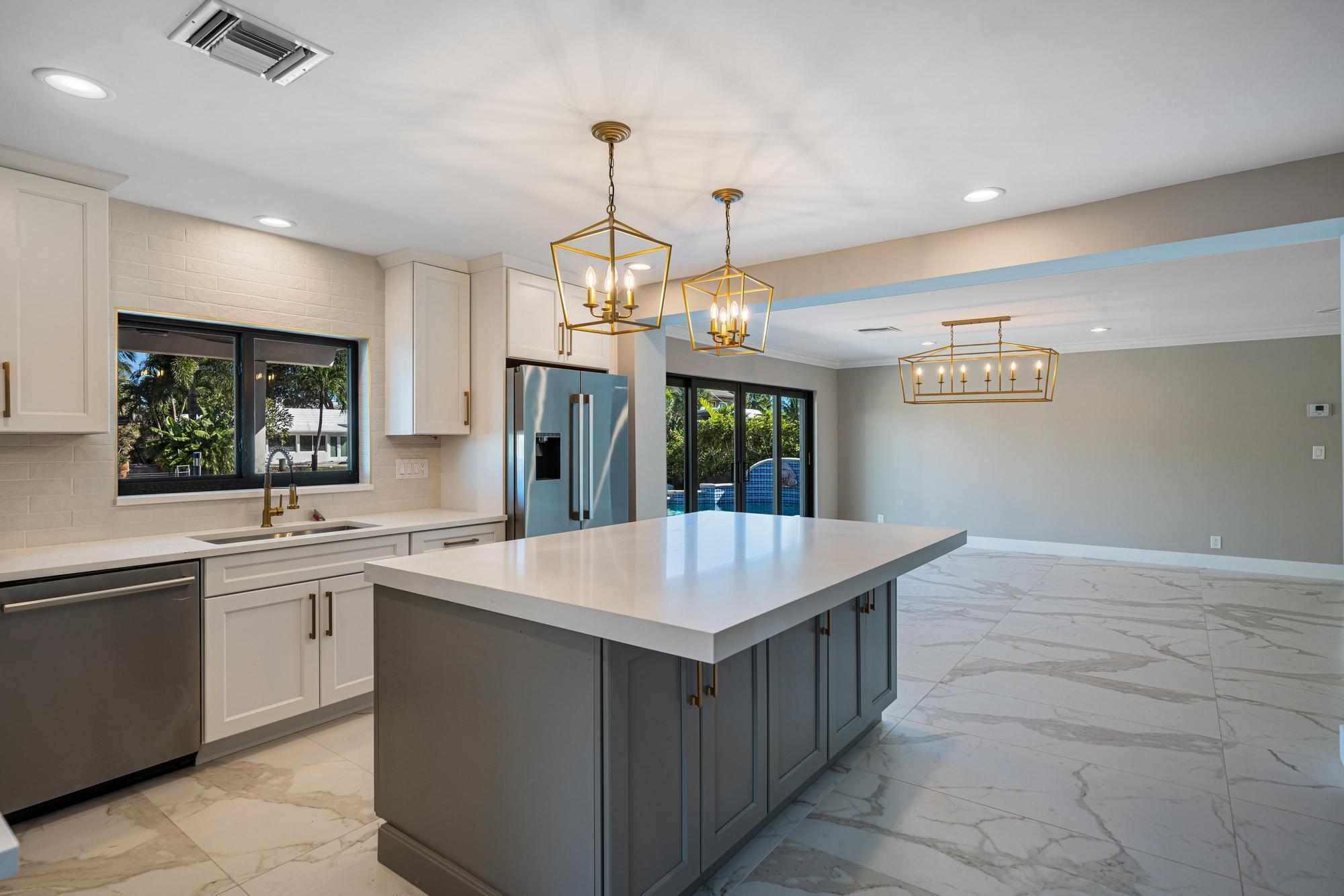 Nestled on a tranquil cul-de-sac in Pompano Isle, this beautifully renovated home offers direct access to the intracoastal waterway. The freshly updated exterior showcases a coastal aesthetic, while the interior boasts an open floor plan with abundant natural light and picturesque water views. The gourmet kitchen and spacious master suite provide modern comfort, while the backyard oasis features a pool and a private dock for enjoying the water. This elegantly transformed retreat offers the ideal blend of coastal living and modern luxury. Outdoor renovations will be completed within the next couple of weeks. See video Rendering!