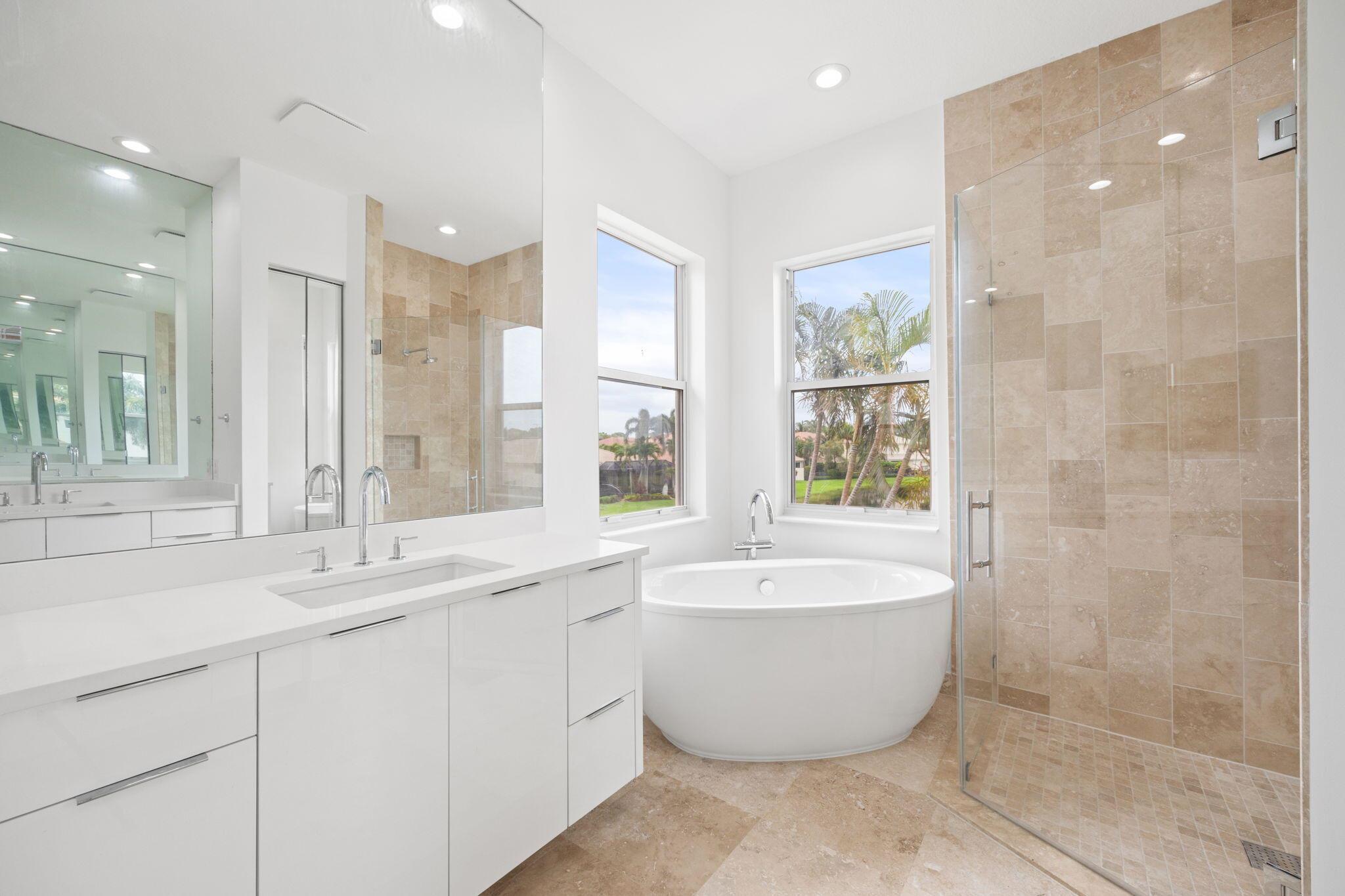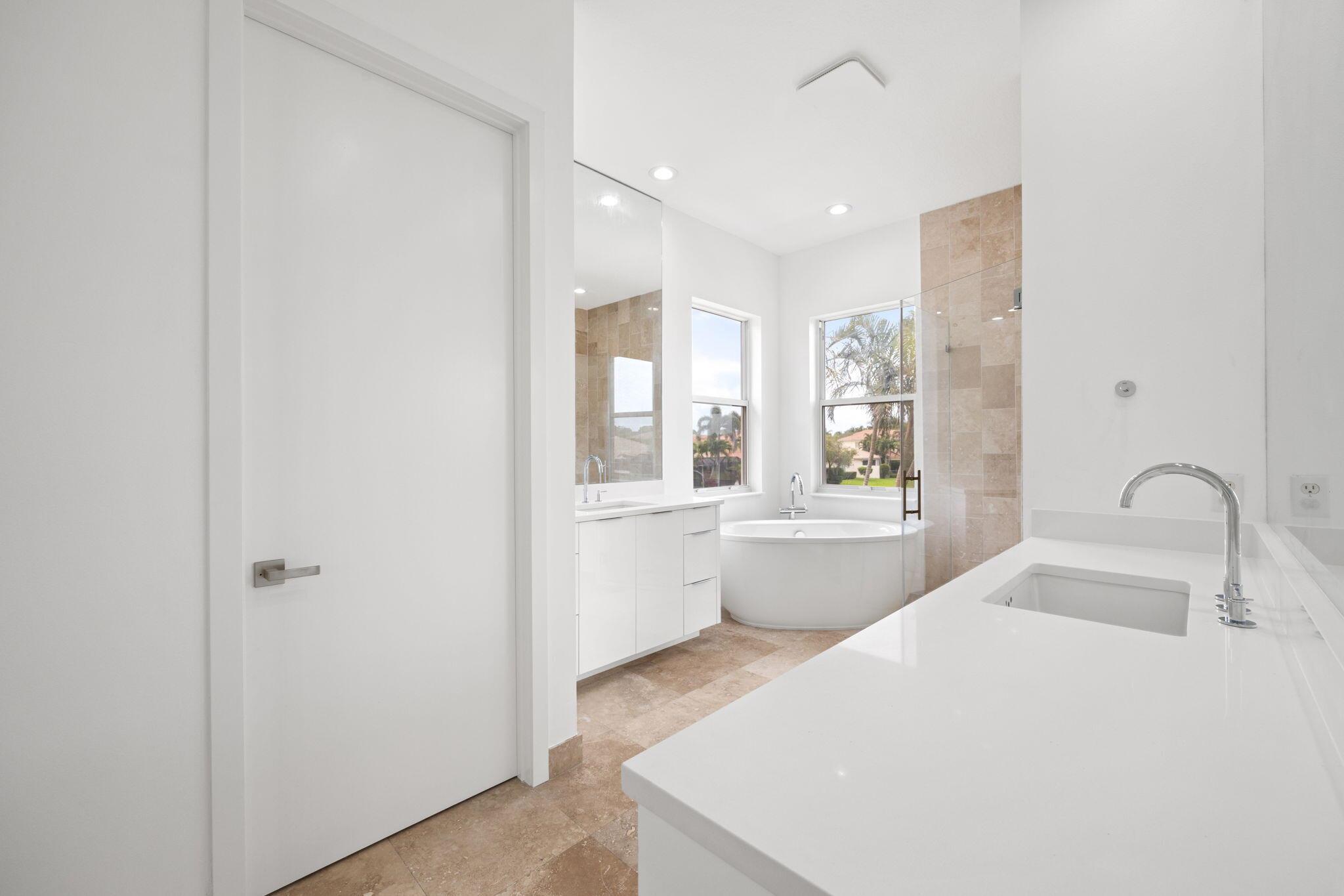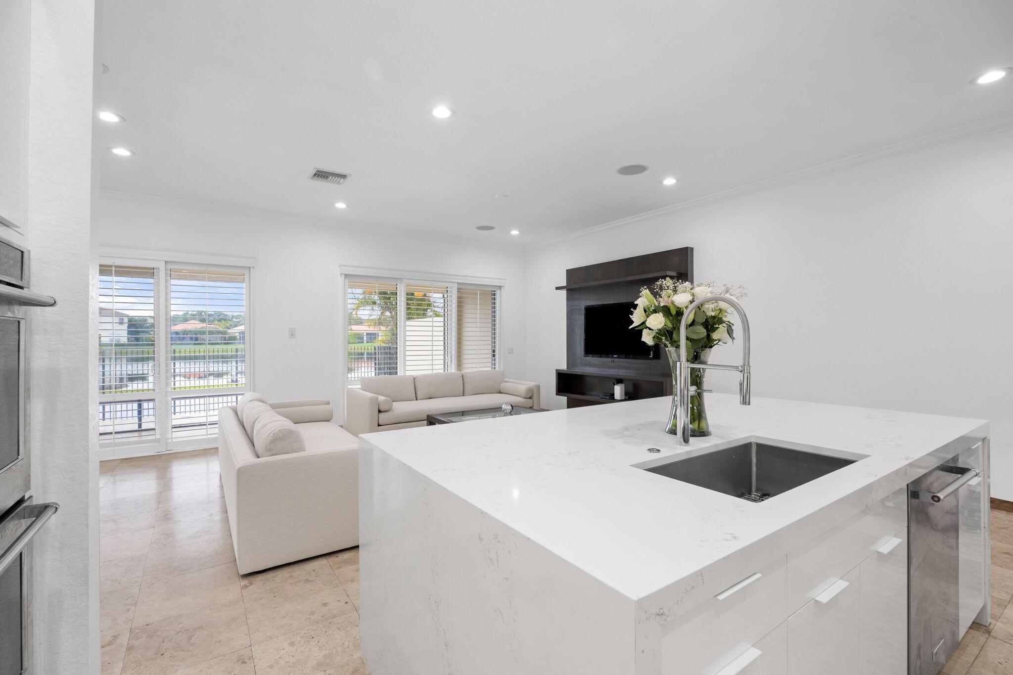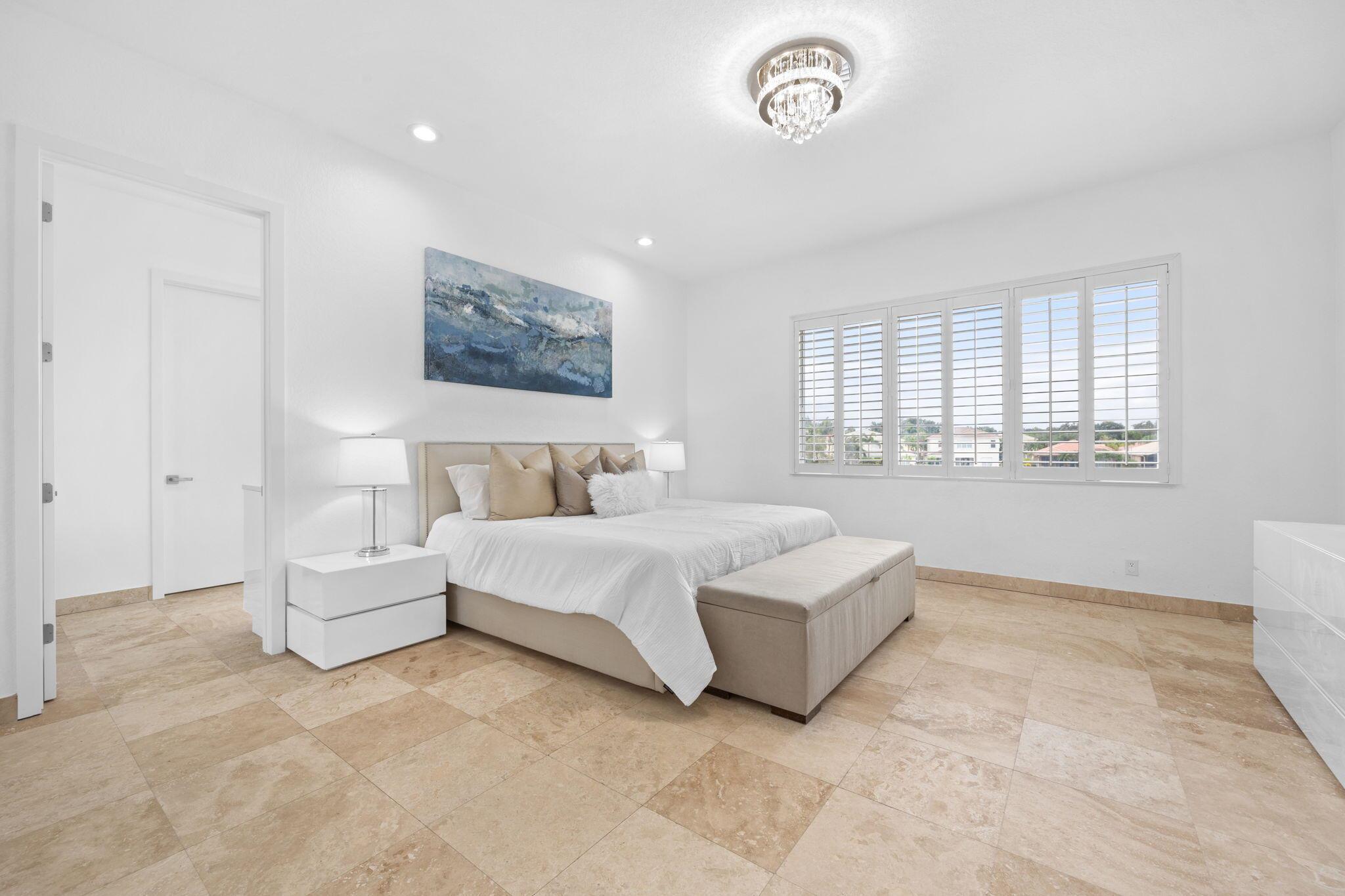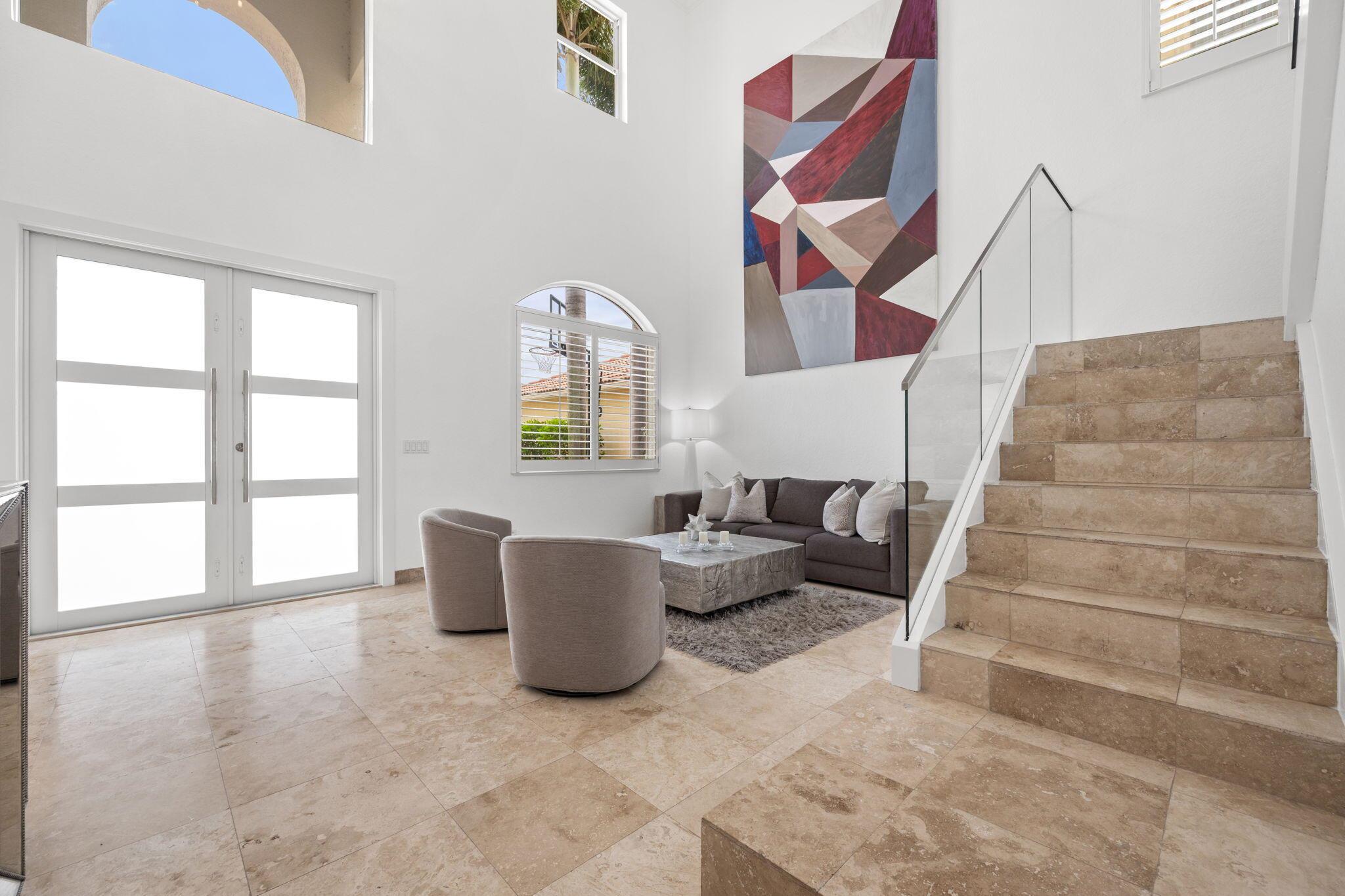 Newly renovated, 5 Bdrm, 3 Ba home with a 3-car garage in desirable Mirabella Community, boasting panoramic water views. This contemporary residence showcases numerous newly renovated upgrades and high-end finishes. Traverse seamlessly from indoor to outdoor spaces on the new travertine marble floors. Enjoy peace of mind and energy efficiency with recently installed impact windows and doors. The stunning modern glass staircase adds an extra touch of sophistication as you enter this home. The chef’s dream kitchen features brand-new stainless steel Kitchen Aid appliances, a wine cooler, and an extra-wide built-in fridge. The oversized quartz waterfall island serves as a captivating focal point, complemented by a newly added pantry for ample storage. Luxuriously updated bathrooms boast