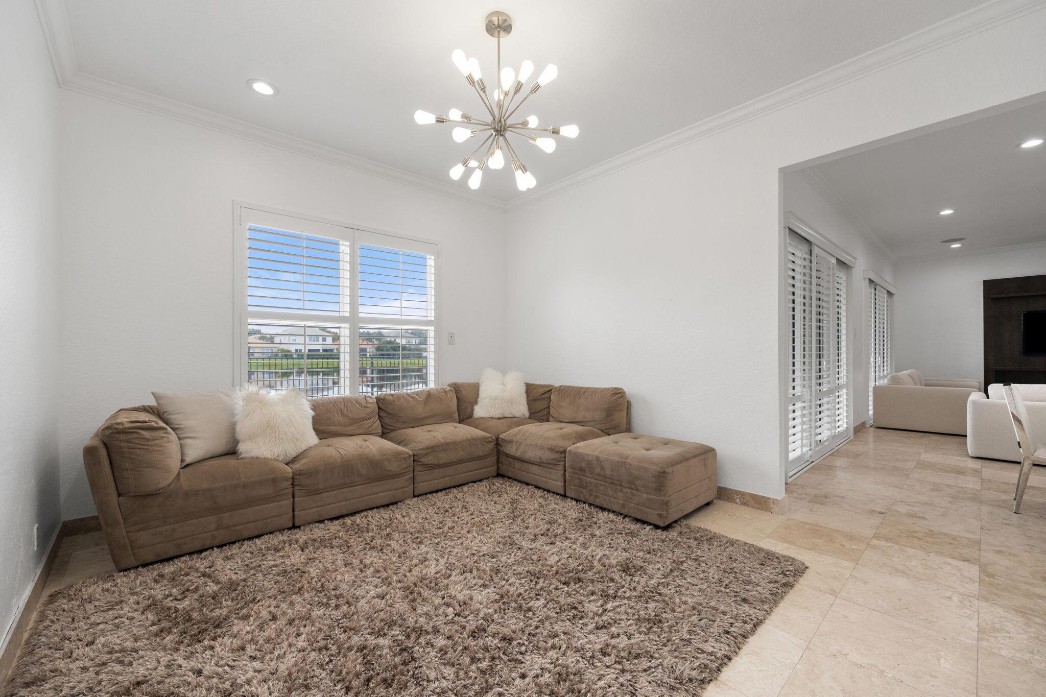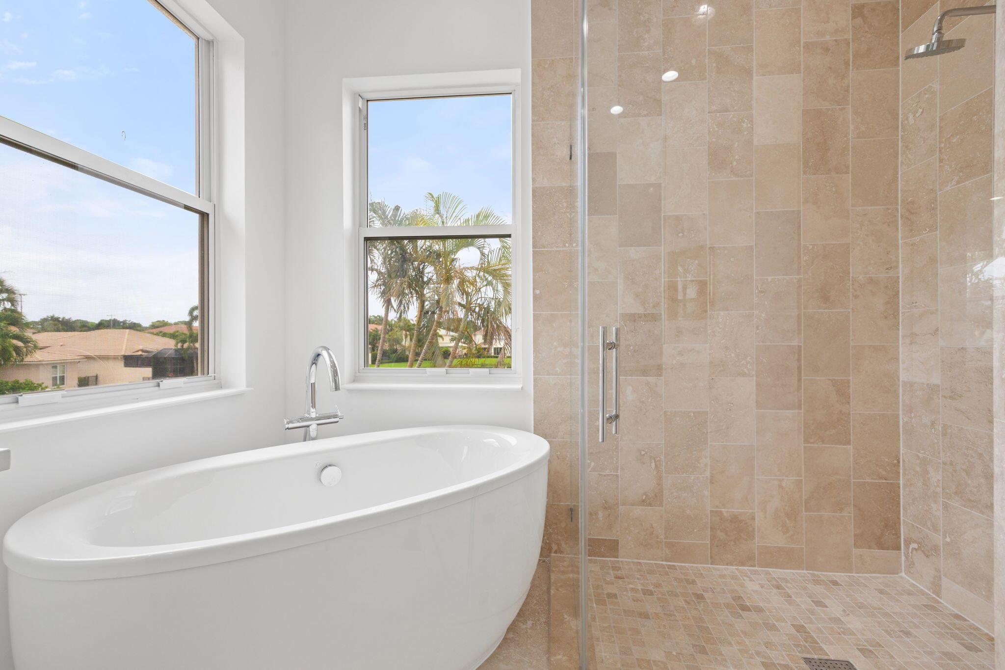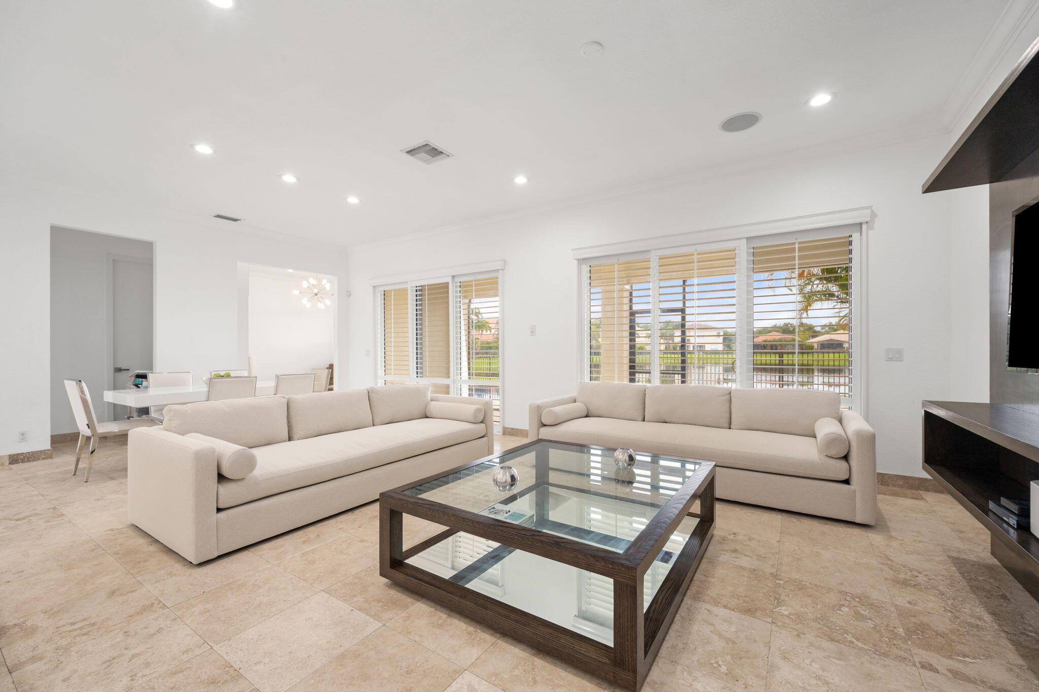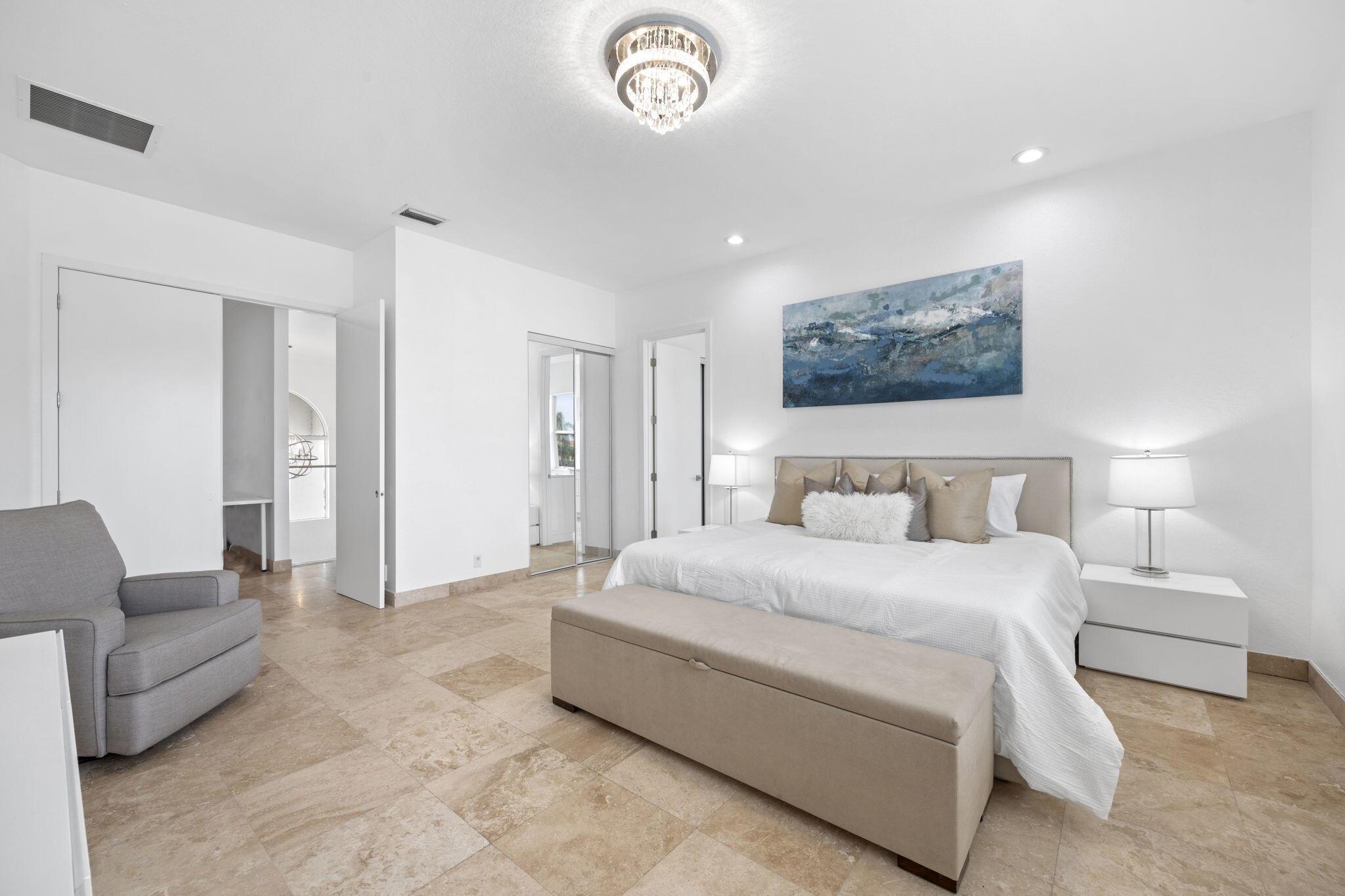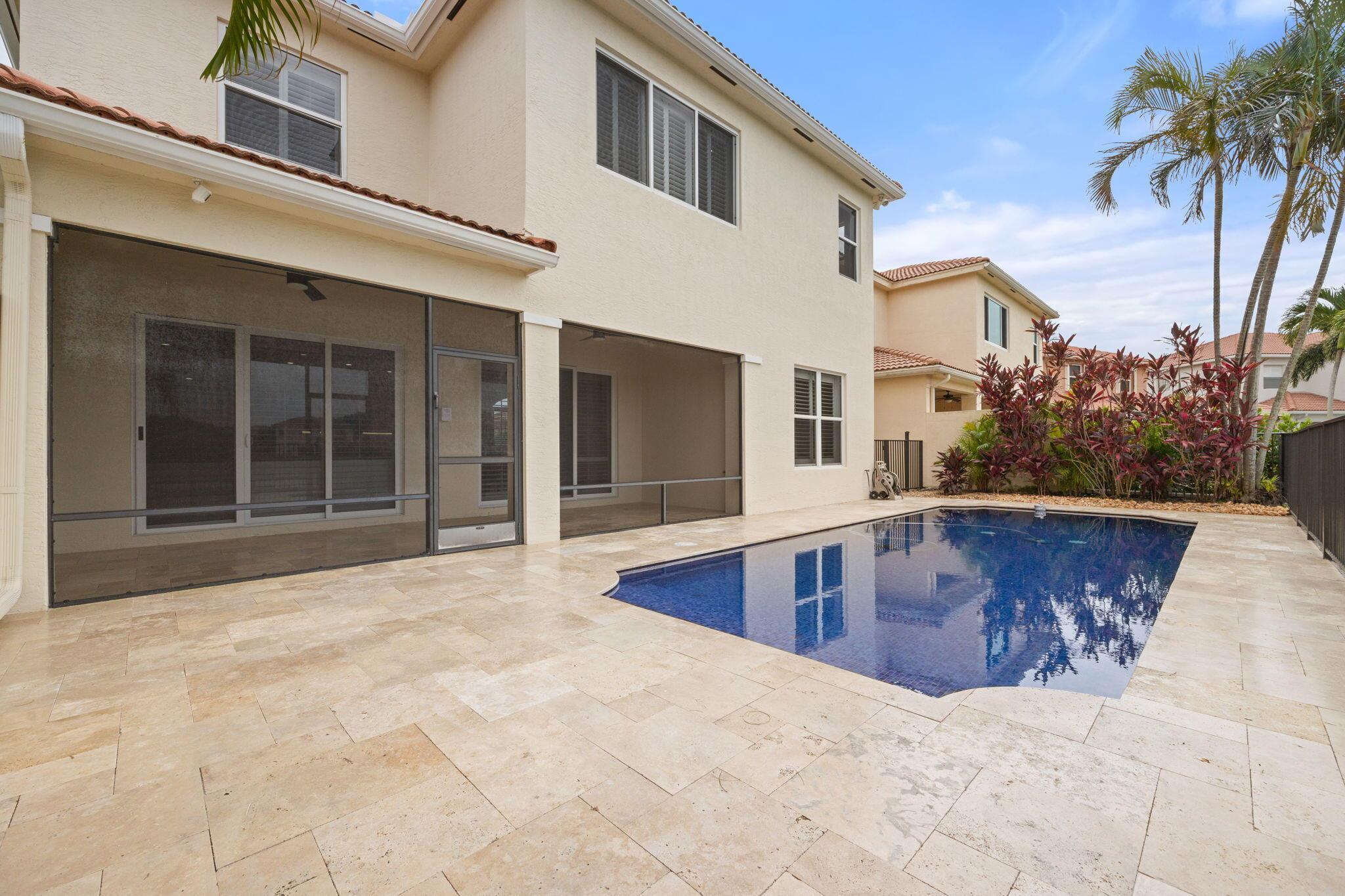 Newly renovated, 5 Bdrm, 3 Ba home with a 3-car garage in desirable Mirabella Community, boasting panoramic water views. This contemporary residence showcases numerous newly renovated upgrades and high-end finishes. Traverse seamlessly from indoor to outdoor spaces on the new travertine marble floors. Enjoy peace of mind and energy efficiency with recently installed impact windows and doors. The stunning modern glass staircase adds an extra touch of sophistication as you enter this home. The chef’s dream kitchen features brand-new stainless steel Kitchen Aid appliances, a wine cooler, and an extra-wide built-in fridge. The oversized quartz waterfall island serves as a captivating focal point, complemented by a newly added pantry for ample storage. Luxuriously updated bathrooms boast